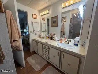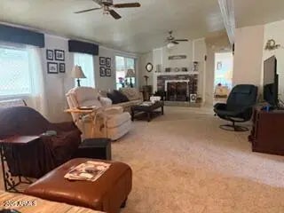 Charming 3-bedroom, 2-bath cabin nestled in the serene pines of Munds Park. This is one of the larger double-wides, with over 1,800SF. Private covered porch with storage room and 9X13 office. Enter the home into the living area and kitchen. Two large bedrooms on one side with the primary on the back side of the property. Primary has walk in closet. New roof, flooring, paint, sewer and plumbing. Property offered furnished, all you need to do is move in!