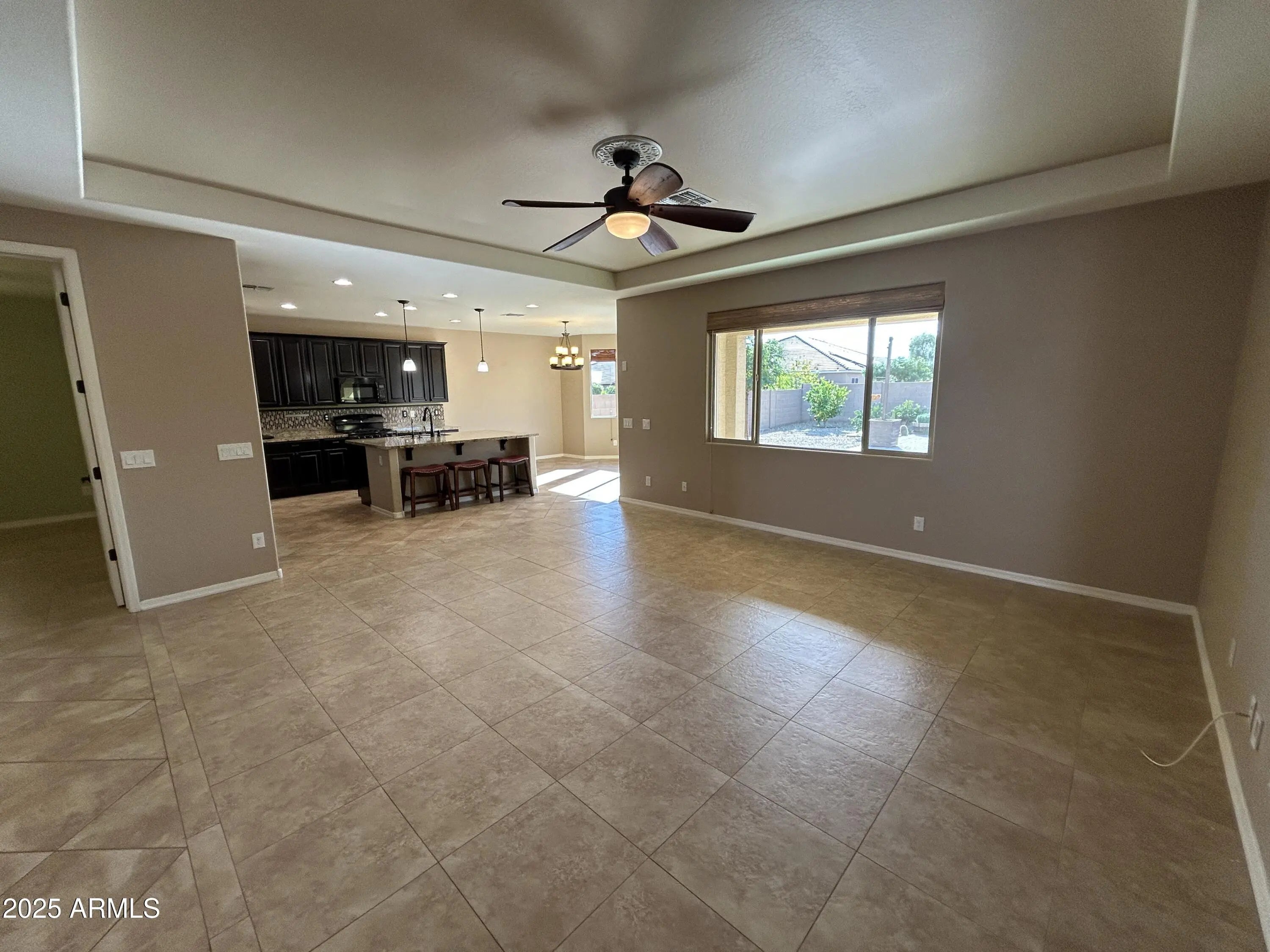 Welcome to this beautifully upgraded three-bedroom home with a den and 2.5 bathrooms, located in the highly desirable Cortessa community and ready for immediate move-in. The home features ceramic tile flooring throughout and an open great room concept that creates a bright, spacious feel ideal for everyday living and entertaining. The kitchen is a standout with granite slab countertops, a tile backsplash, a large center island, and upgraded appliances, all designed to combine style and functionality. Ceiling fans throughout the home add comfort, while the split floorplan offers privacy and flexibility. The primary suite is thoughtfully designed with a large walk-in closet and a spa-like bathroom that includes a walk-in shower, soaking tub, and raised vanities. Secondary bedrooms are generously sized, and the additional den provides the perfect space for a home office, media room, or guest area. A new air conditioner installed in 2024 adds efficiency and peace of mind. Situated on a large lot with north/south exposure, the property boasts a big backyard, an oversized garage, and a covered patio that's perfect for relaxing or entertaining outdoors. This well-maintained home combines modern upgrades, comfort, and location, making it an excellent rental opportunity in one of the area's most sought-after communities.