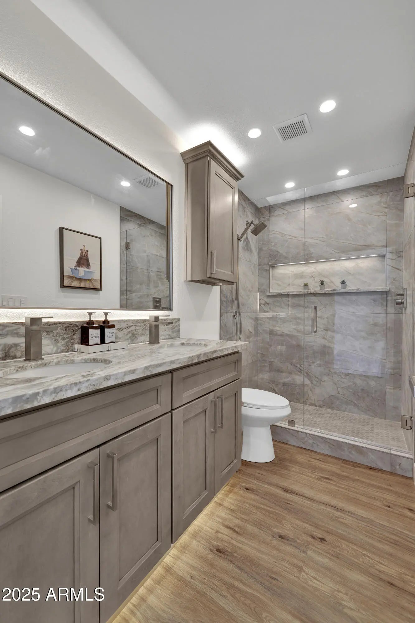 Huge price improvement. Priced to Sell. Stunning 3-bedroom, 2-bathroom home has been fully remodeled with luxurious finishes. A true turn-key property, features two double-vanity bathrooms, custom cabinetry offering massive storage throughout. Every detail was carefully designed for maximum function and style including custom closets, spacious pantry, and functional laundry room, from ambient lighting to high-end granite finishes. New Appliances and New Washer/Dryer. New epoxy garage flooring. The small but mighty layout includes an additional bar and buffet area, perfect for entertaining. Large backyard, mountain view, with grass and a great-sized pool. Located in prime North Phoenix, close to freeways, schools, shopping & dining—this home has it all! New HVAC w/ 10 year warranty.
