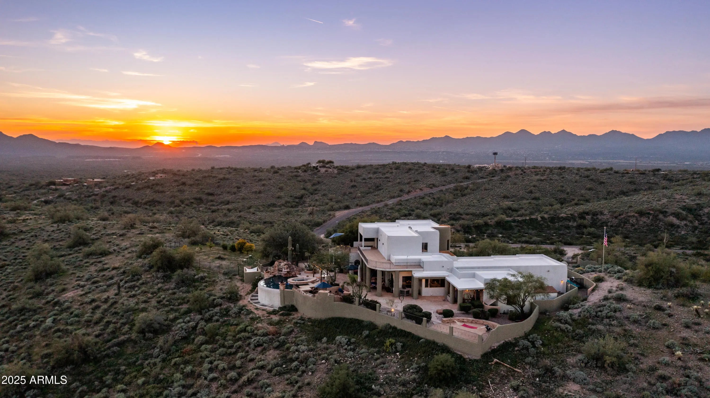 Beautiful Gated Custom Equestrian Property with Panoramic Mountain Views and Guest Casita on 10 acres. Stunning home with heated infinity pool, spa and custom BBQ seating area w/outdoor fireplace. Amazing, remodeled kitchen featuring a 6-burner Wolf gas cooktop, two electric Viking convection ovens, Sub-Zero refrigerator, two center islands separate beer/soda cooler in the island with a sink & a custom pantry with a drawer microwave and full-size wine fridge. Master Bedroom and Bathroom on main floors with Game Room and Guest Bedrooms up. The spacious 2,200 sq. ft. patio is professionally enclosed w/ rattlesnake-proof fencing, creating a safe outdoor living space an additional fenced in area w/ Meyer lemon, white grapefruit, mandarin orange, and lime trees. Main family room offers 22-foot ceilings, three electric fireplaces two in the living room and one in the dining room. The guest Casita has a kitchenette, bathroom and a large walk-in closet. This home has a private well, along with a Kinetico water softener and whole-house filtration system, along with reverse osmosis (RO) in the kitchen. The lower 5 acres has a 350 x 100 ft. partially equestrian fenced arena with water access. 220V outlet on side yard of garage for electric vehicle charging. Plenty of areas for off roading with ATV's. The property entrance has a private gate. 10 minutes from Saguaro Lake, minutes to Fountain Hills, and 30 minutes from old town Scottsdale, Westworld (for the equestrians), TPC Scottsdale and Sky Harbor.
