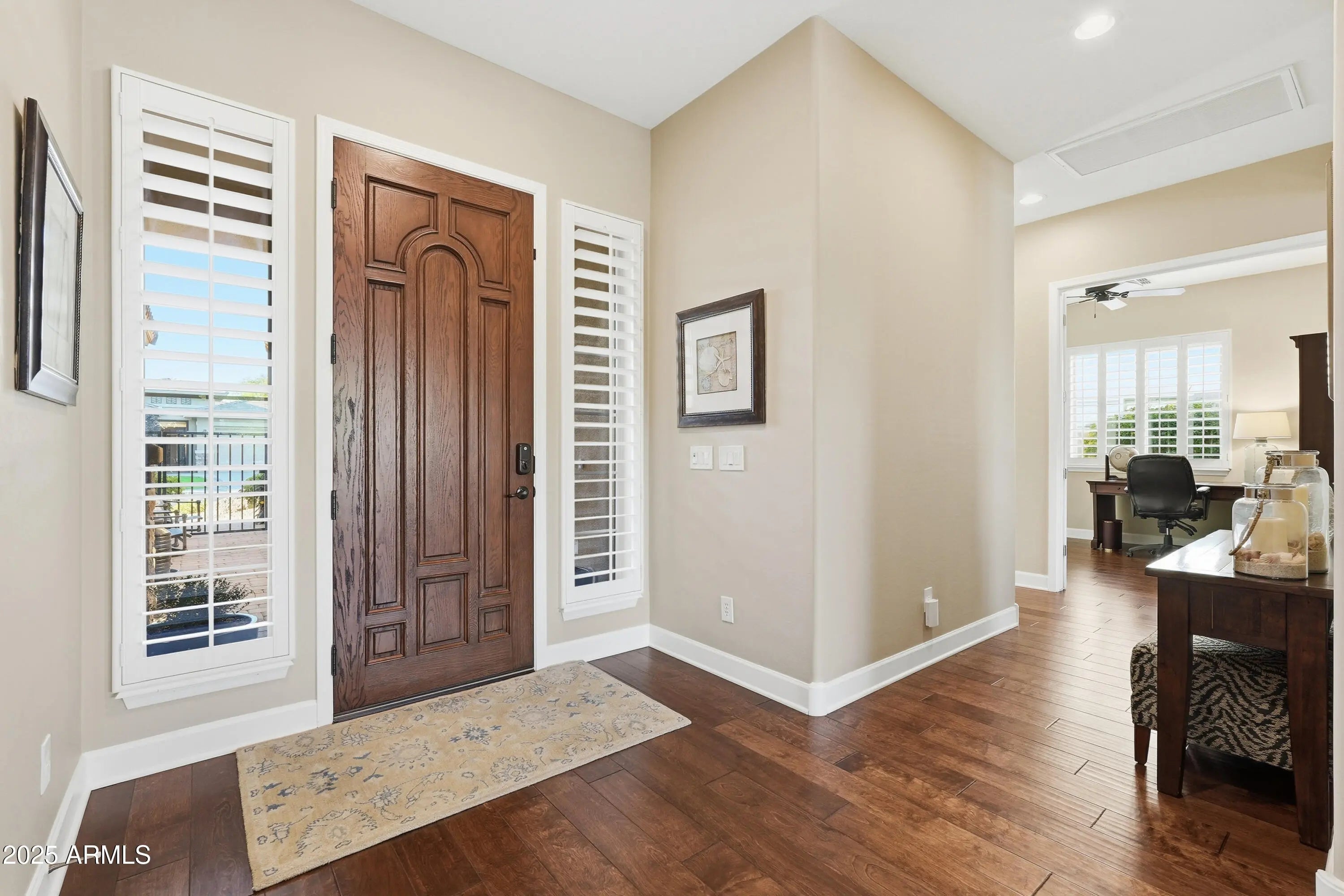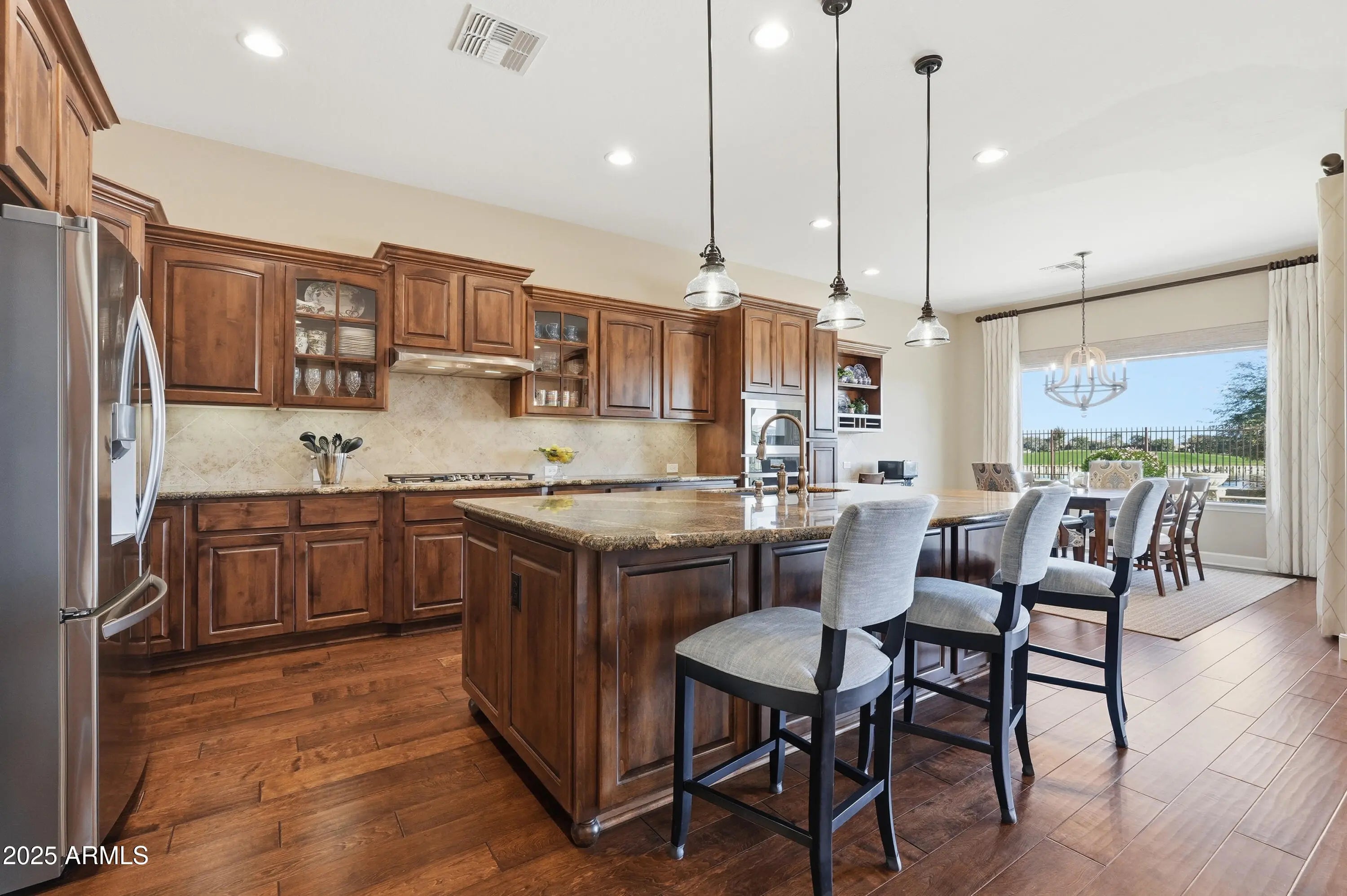 Set on a $75K premium lot backing the Signature 17th hole at Seville Golf & Country Club, this 4-bed, 4-bath home offers a rare blend of quality construction, flexibility, and resort-style outdoor living. Built with 2x6 construction and spray-foam insulation, the home includes a fully insulated, climate-controlled 3-car garage and RV gate for versatile storage and parking. Inside, raised-panel alder cabinetry, new kitchen appliances (2024), dual walk-in primary closets, smart-home security, plantation shutters, and a 20-SEER zoned A/C enhance daily living. Outdoors, travertine decking frames a private oasis with a heated pool, Baja step, cascading water features, built-in BBQ, covered patio, pergola with misting system, and views of one of Seville's most iconic golf holes. Positioned on a $75,000 premium lot backing the Signature 17th hole at Seville Golf & Country Club, this refined 4-bedroom, 4-bath residence offers a rare combination of craftsmanship, thoughtful design, and resort-caliber outdoor living. The lot itself was intentionally selected for its dramatic golf course setting and enduring value, creating a backdrop that elevates everyday living. Constructed with 2x6 framing and spray-foam insulation, the home delivers enhanced energy efficiency, sound control, and year-round comfort. A fully insulated, climate-controlled 3-car garage is extended by four feet and features an 8-foot garage door, a service door leading directly to the side yard, and its own reverse-cycle A/C system (2019), ideal for storage, hobbies, or specialty vehicles. An RV gate further expands parking flexibility, allowing space either in front of or behind the gate. Inside, timeless materials and modern conveniences are seamlessly integrated. The kitchen features raised-panel alder wood cabinetry with pull-outs, granite countertops, and new appliances installed in 2024, creating a space that is both functional and beautifully finished. Throughout the home, Hunter Douglas plantation shutters and remote-operated dual-insulated Roman shades add a tailored, elevated feel. Additional highlights include surround sound with a dedicated subwoofer cabinet and cooling fan, an A3 smart-home security system with smart locks and exterior lighting, and a gas fireplace that adds warmth and architectural character. The primary suite is thoughtfully designed as a private retreat, offering dual walk-in closets and a spa-inspired bath appointed with granite countertops and custom mosaic tile detailing. The laundry room is equally well-finished, featuring built-in cabinetry and a utility sink, reflecting the home's attention to everyday livability. Comfort is further enhanced by a two-speed, 20-SEER zoned A/C system (2022) with HEPA filtration, along with a hot-water circulating system and a water softener added in 2024. Outdoors, the backyard unfolds as a true private oasis. Travertine decking anchors the space, leading to a heated pool installed in 2018, featuring a Baja step, cascading water features, and a sophisticated lighting system that offers a virtually limitless color palette to create the perfect evening ambiance. A built-in gas BBQ, covered patio, and custom pergola with a misting system, integrated with the water softener, complete a setting designed for both entertaining and quiet relaxation. The Signature 17th hole at Seville Golf & Country Club is definitely "the" signature hole of the course, an iconic island-green par-3 celebrated by the club and golf publications alike for its dramatic setting and challenge. Known for testing distance control with a strategically placed right-side bunker, it is a centerpiece of club branding, tournament play, and unforgettable hole-in-one moments, making this backdrop as rare as it is remarkable.