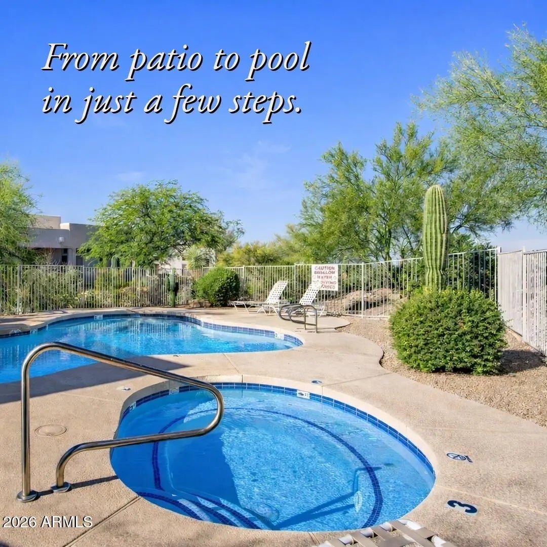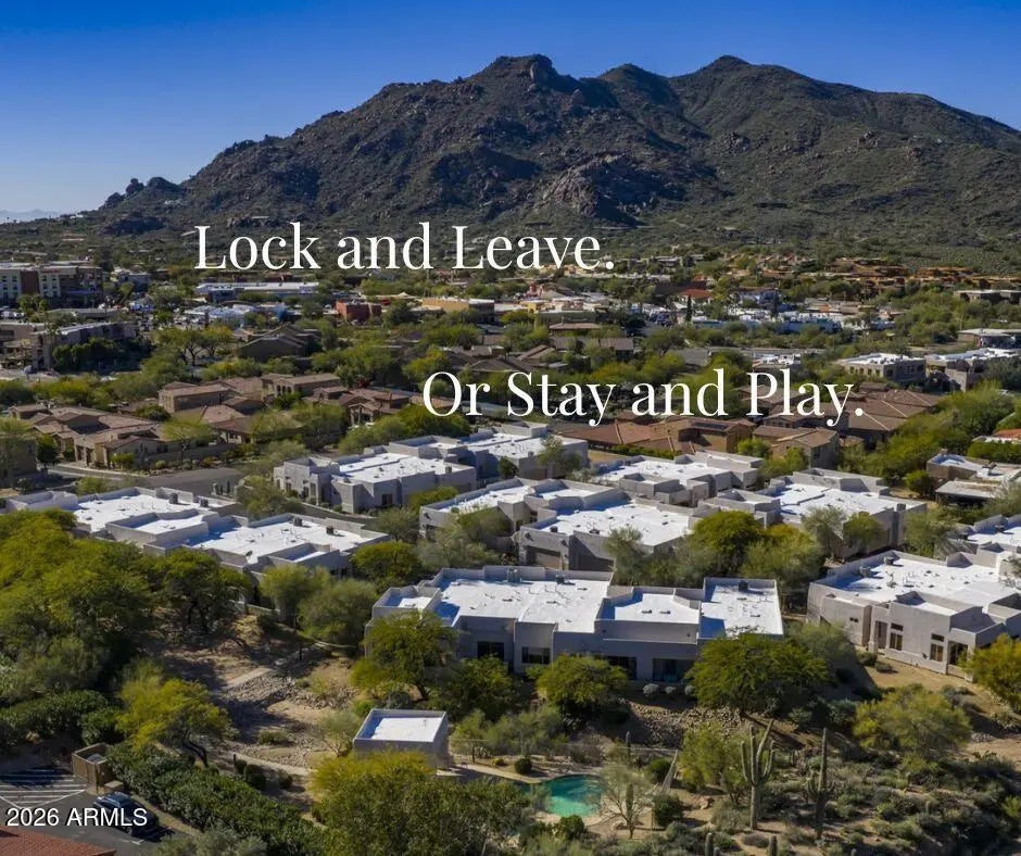 From the spacious home office, you can go from ''work to wine'' in seconds. Just steps away is the heated community pool and spa that is practically your own. From the farmers market at Carefree's Sundial Circle Plaza, it's only a few hundred yards down a quiet side street to Unit 11 in Arroyo Montana, an exclusive 22-unit complex of classic, timeless condos in the only gated complex here on Hum Road. Enjoy bright spaces, high ceilings, durable tile flooring, cozy covered patio, and some finer touches including a gourmet steam oven, custom pullout cabinet drawers, auxiliary fan on the gas fireplace, remote controlled window coverings and custom sun shades. The roof was recoated and the exterior painted in the summer 2025. Next to Carefree is Cave Creek with even more entertainment options.