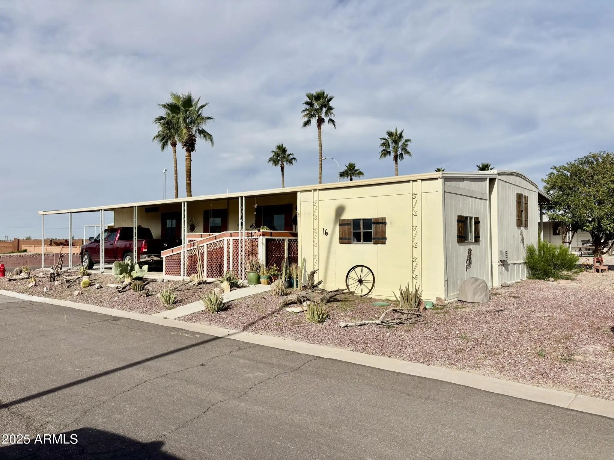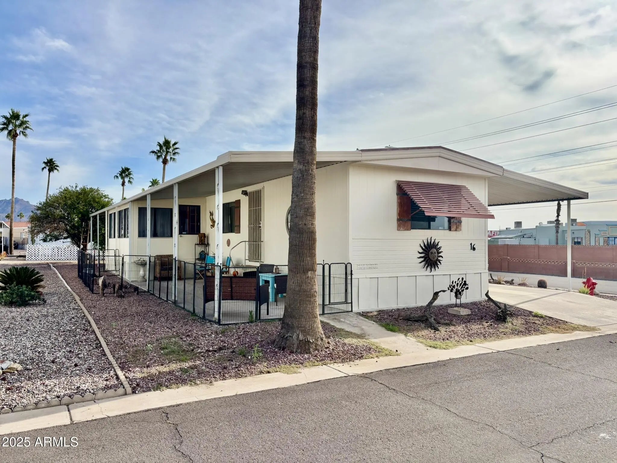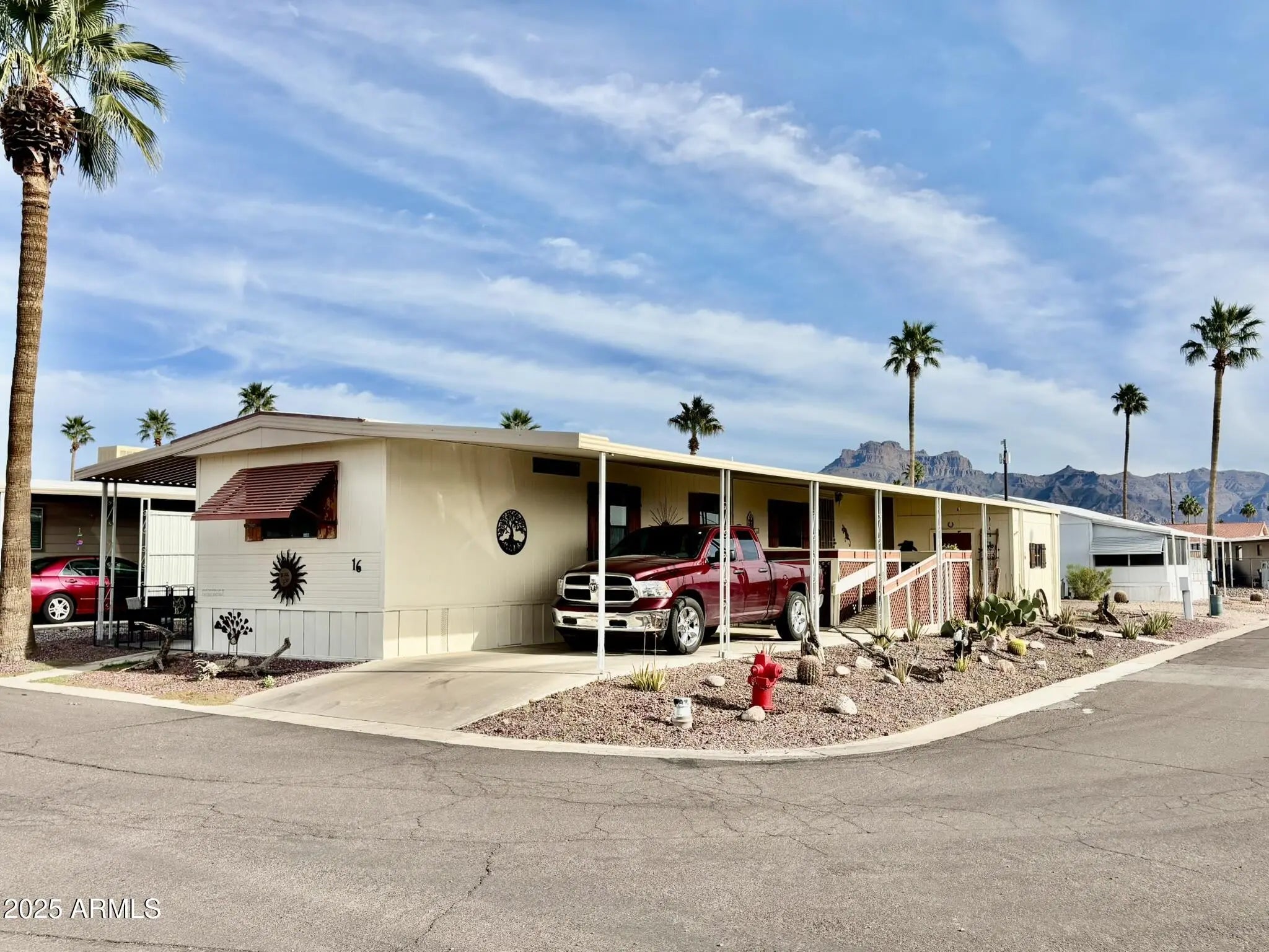 CORNER LOT!! Awesome Location! Amazing views of the Superstition Mountains! Well maintained, great updates and super clean! Huge walk-in shower in the Master! Nice covered front deck, comfortable back patio, great Arizona Room, and a large shed/work shop with tons of storage! White Sands Estates is a 55+ gated community with great amenities and low lot rent!