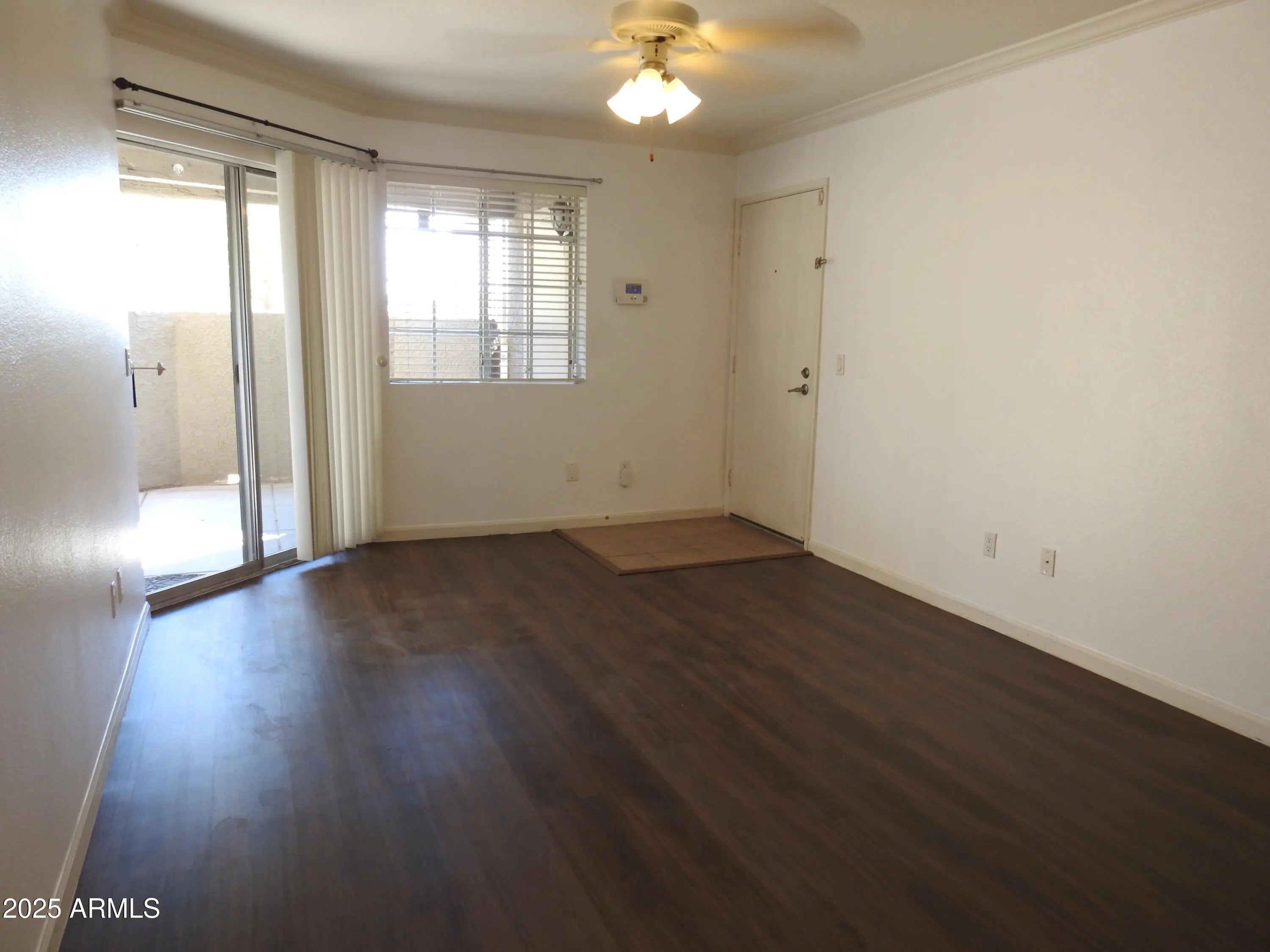 Spacious ground-level condo in a gated North Phoenix community. This 2-bedroom,2 bath unit features an open floor plan with a light-filled living area and private patio. The kitchen offers generous Corian countertops and a breakfast bar overlooking the living room. The bedroom is well-sized with two large closets and an adjacent walk in shower. A stacked washer and dryer are located in the unit, and covered parking is included. The private patio features a high wall, and exterior storage room. Community amenities include two pools, spa, fitness center, on-site overnight guard, and well-maintained grounds. Conveniently located near shopping, dining, golf, freeway access, and the North Mountain Preserve for hiking and outdoor activities.
