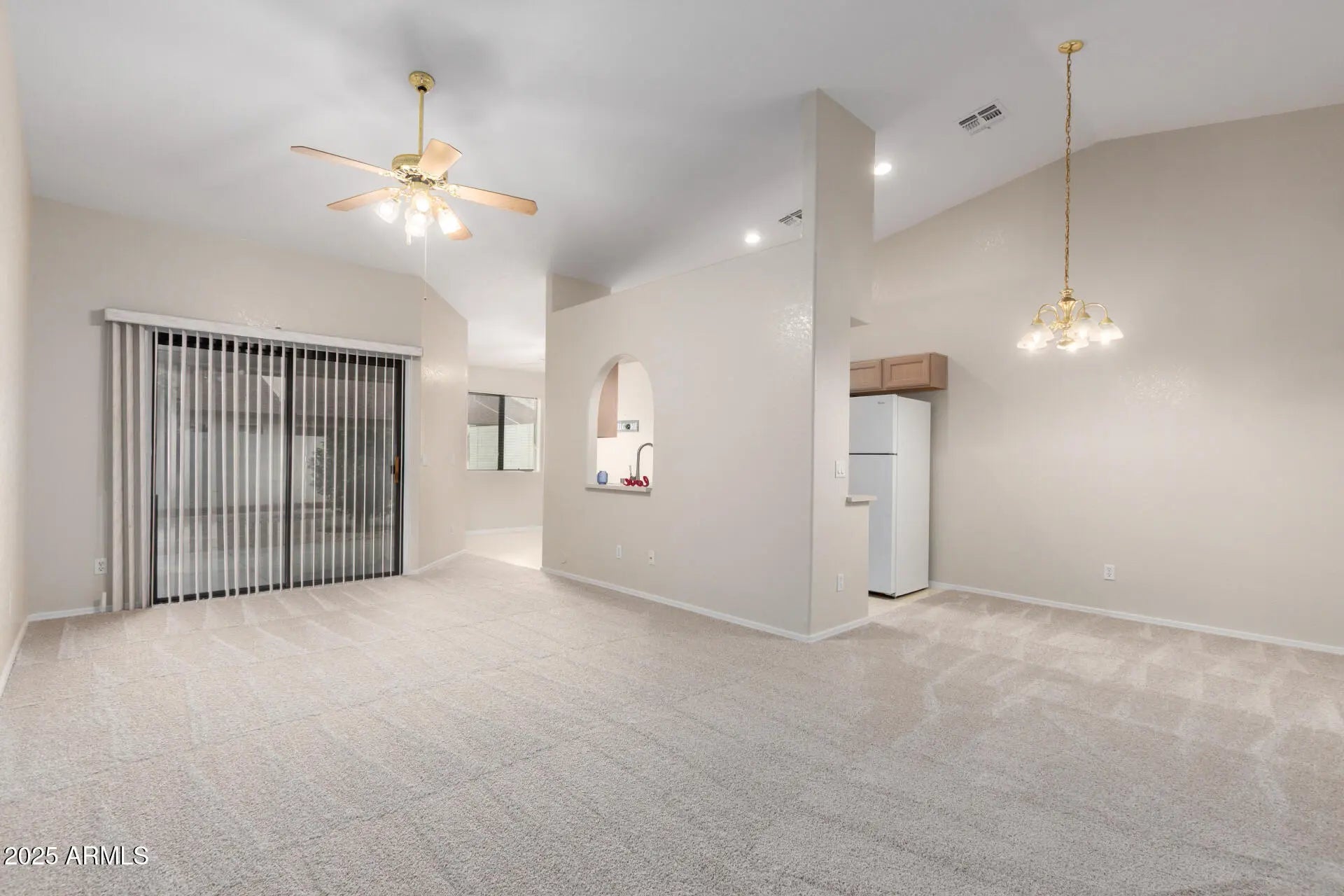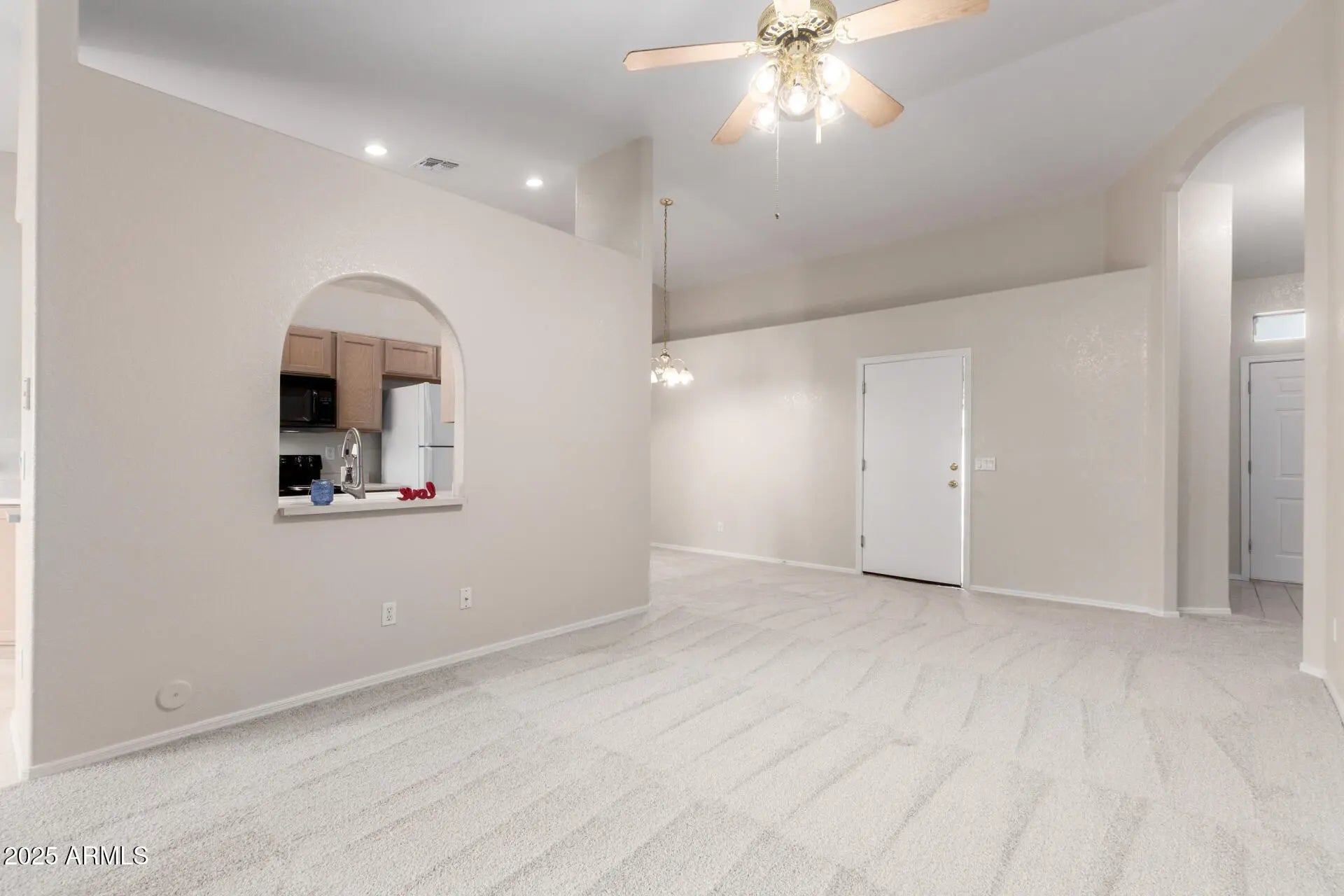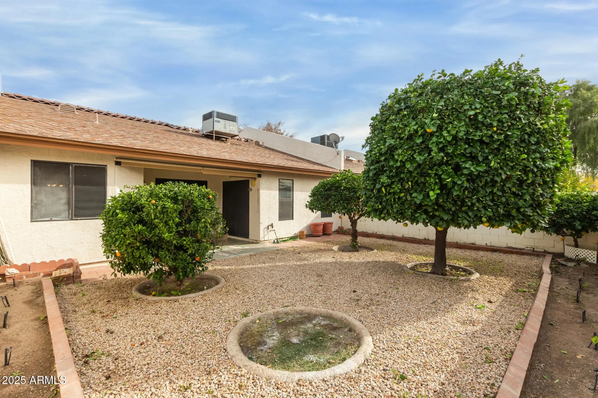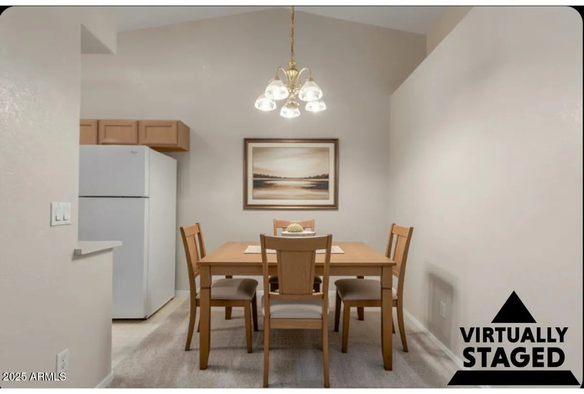 Discover this charming 2-bedroom townhome nestled in the Haciendas Del Sol community. Step inside to enjoy generous living spaces featuring brand-new carpeting, soaring vaulted ceilings that enhance the sense of openness, and fresh neutral paint throughout. The well‑appointed galley kitchen offers abundant cabinetry, ample counter space, and built‑in essentials to make everyday cooking effortless. Retreat to the spacious main suite, complete with a walk‑in closet, a private ensuite bathroom, and direct access to the backyard. Relax outdoors on the cozy covered patio—perfect for morning coffee—while enjoying a serene landscape accented by mature citrus trees. Just steps away, the community pool and spa provide the ideal spot to unwind and soak up the Arizona sunshine. We