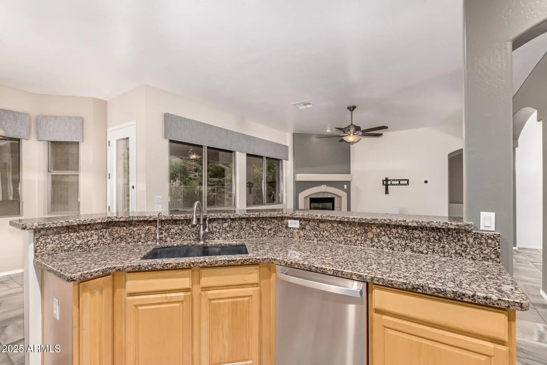 YOUR TRANQUIL DESERT SANCTUARY w/MOUNTAIN VIEWS AWAITS! Backing to a natural preserve with no rear neighbors, this move-in ready rambler in Gold Canyon's sought-after Superstition Foothills neighborhood delivers exceptional privacy, Superstition Mountain views and peaceful desert surroundings alive with native wildlife. The 2,177 sq ft split floor plan includes 3 bedrooms plus an office and bonus room, 2 bathrooms, and a light-filled great room enhanced by expansive windows and a cozy gas fireplace. The kitchen shines with granite countertops, pantry, pull-out cabinets, breakfast nook, and newer appliances. RECENT UPDATES INCLUDE: fresh interior paint, tile flooring (2022), AC (2020), gas water heater (2024) and roof (2017). Relax on the serene covered patio with stunning mountain hillside views. The low-maintenance backyard showcases desert landscaping, productive lemon tree, and storage shed. Enjoy access to a community pool, park, and scenic walking trails ideal for sunrise strolls or evening walks. Situated near the iconic Superstition Mountains and within easy reach of US-60, outdoor adventures abound with world class golf, hiking, and convenient access to shopping, services, and regional airports. Don't miss the opportunity to experience Arizona Living at its finest!