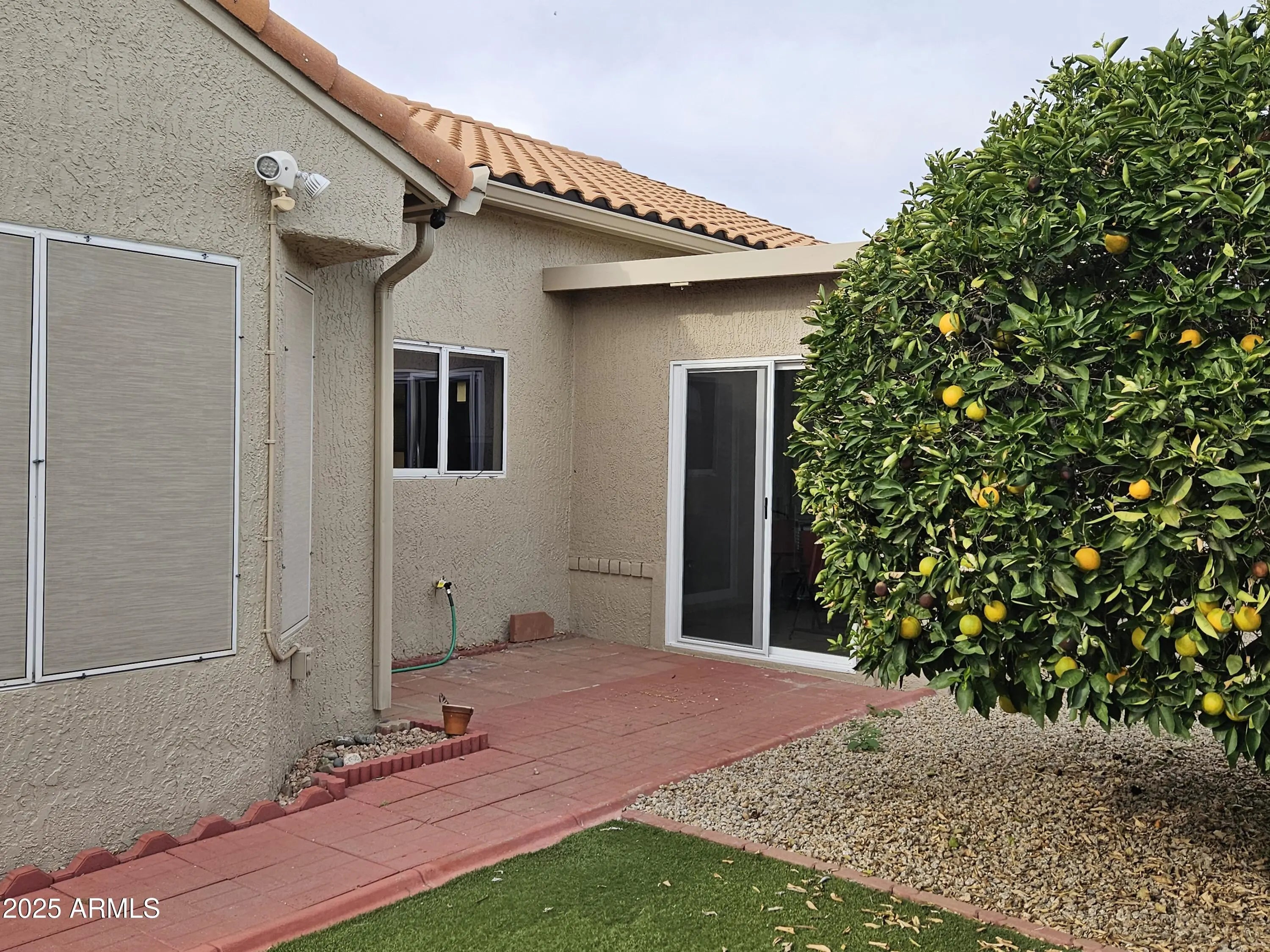 REMODELED! Beautifully updated Sun City West home ideally located near top amenities, shopping, dining, and recreation. This meticulously maintained property features owned solar, a coated driveway, and an air-conditioned garage with built-in cabinets—perfect for comfort and storage. Offered partially furnished with strong offer or by separate bill of sale. The HVAC system was replaced in 2014 and includes a dual filtration system, while the brand-new roof (2024) provides peace of mind. Inside, enjoy beautiful rigid vinyl flooring, new ceiling fans, and thoughtful upgrades throughout. Golf Car available - PLEASE ask! The spacious primary bedroom offers a charming bay window and a beautifully remodeled en-suite bath, with additional remodel work completed by Interiors by Thomas. The second bedroom features mirrored closet doors, and the second bath boasts granite countertops and a stylish shower enclosure. The kitchen has been tastefully remodeled, featuring a gas range, under-cabinet lighting, and opens to an added bonus room off the great room, creating flexible living or entertaining space. Outdoors, enjoy low-maintenance synthetic turf, brick pavers, and sunscreens throughout. The property also includes orange, tangerine, lemon, and Minneola fruit trees, available by separate bill of sale. This exceptional home combines comfort, efficiency, and locationtruly a must-see in Sun City West.