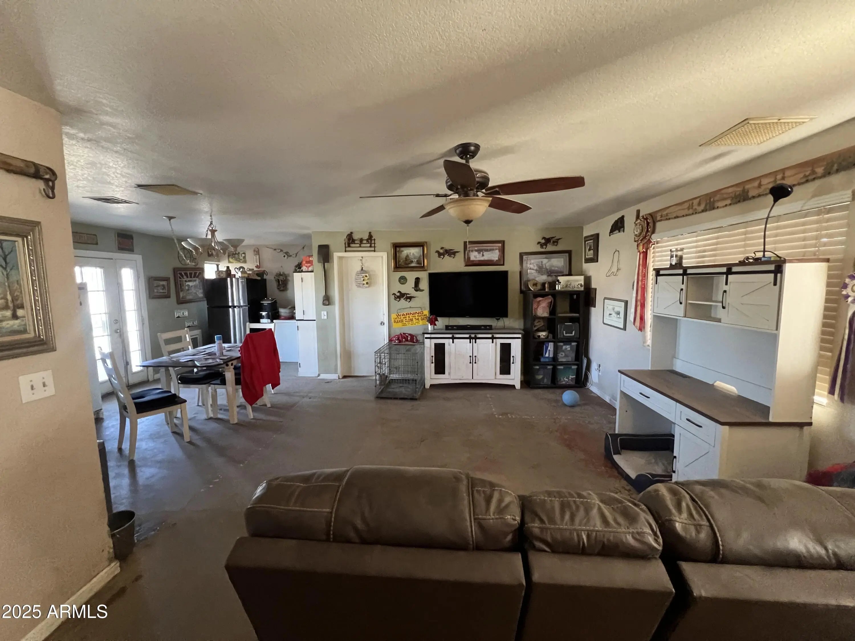 This 3-bdrm, 2-bath property has 2.5-acres of land with Commercial Potential. Has a one bed room studio guest house. A large 3000 sq ft building with electric and water. There is plenty of room for animals, storage and parking. NO HOA!!!!! Property being Sold AS IS!