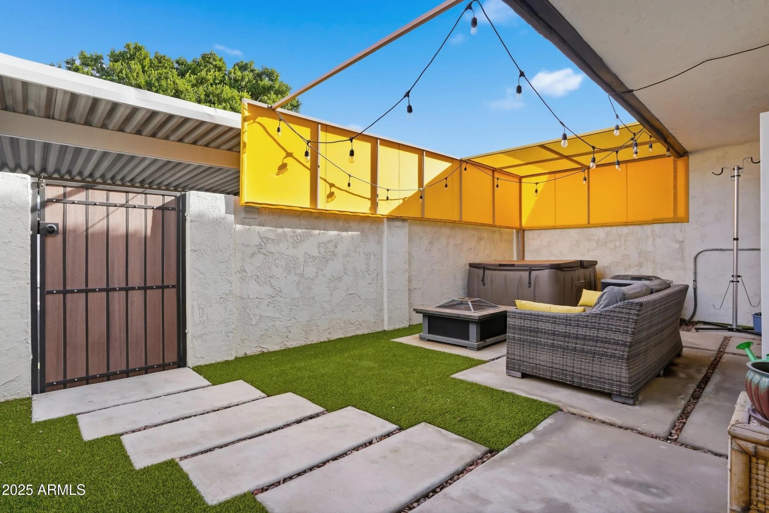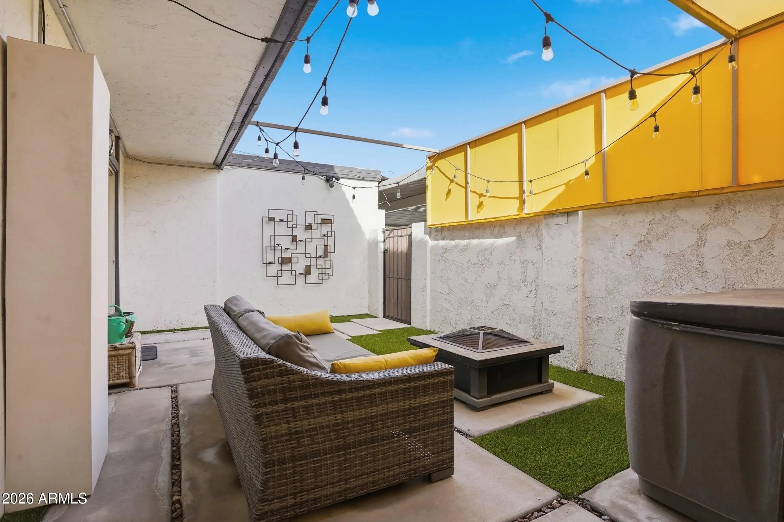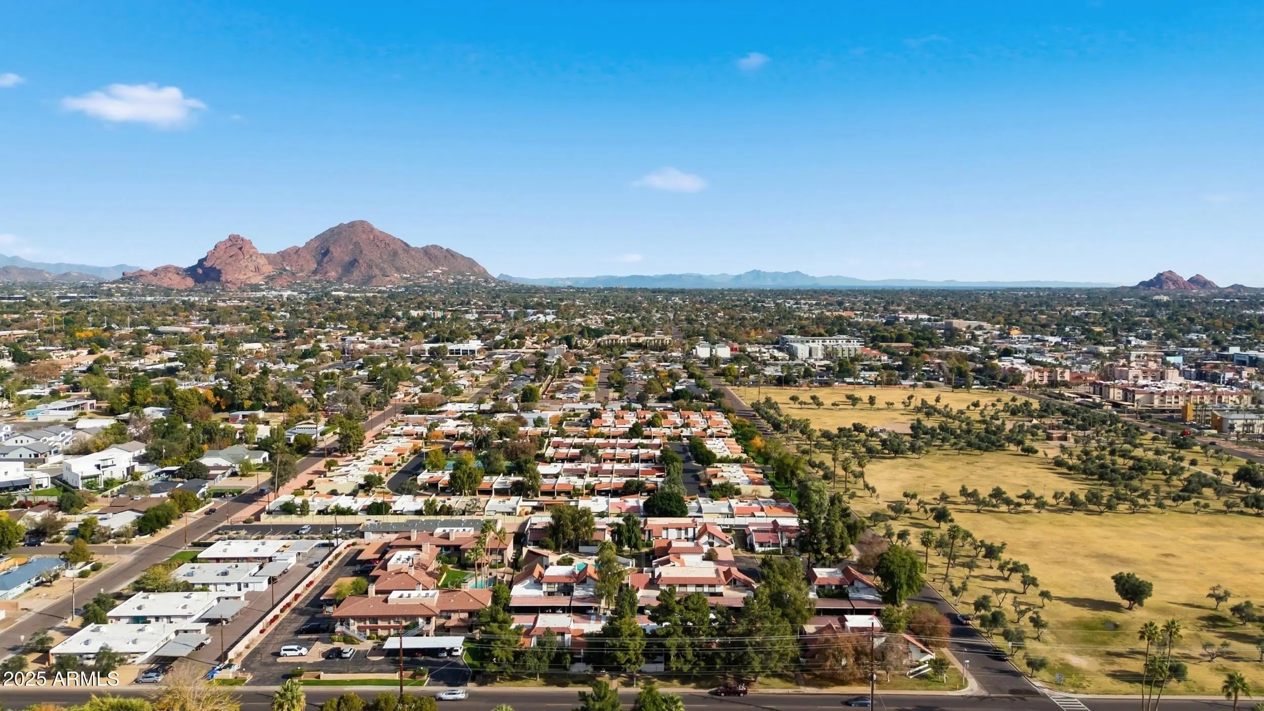 Located in Keresan Park and just steps from Los Olivos Park, this two-story townhome blends classic contemporary style with character and charm. Enjoy Camelback Mountain views, a location that is just steps from the community pool and a thoughtfully updated interior throughout. This home features two bedrooms, one and a half baths and a rare oversized walk-in closet in the primary bedroom. Major upgrades include HVAC, water heater, double-pane windows, updated lighting, modern stair railings, stained concrete flooring and a stacked washer and dryer. Both baths and the kitchen have been updated. The private patio offers artificial turf, added privacy, and an above-ground jacuzzi (as-is). A prime Arcadia Lite location with views, updates, and walkability. Be close to highly rated restaurants like Hillstone, The Henry, Chelsea's Kitchen, The Vig and Buck & Rider. .3 miles from Sprouts. 1 mile to Biltmore Fashion Park. 2.7 miles from The Global Ambassador. ~6 miles to PHX airport.