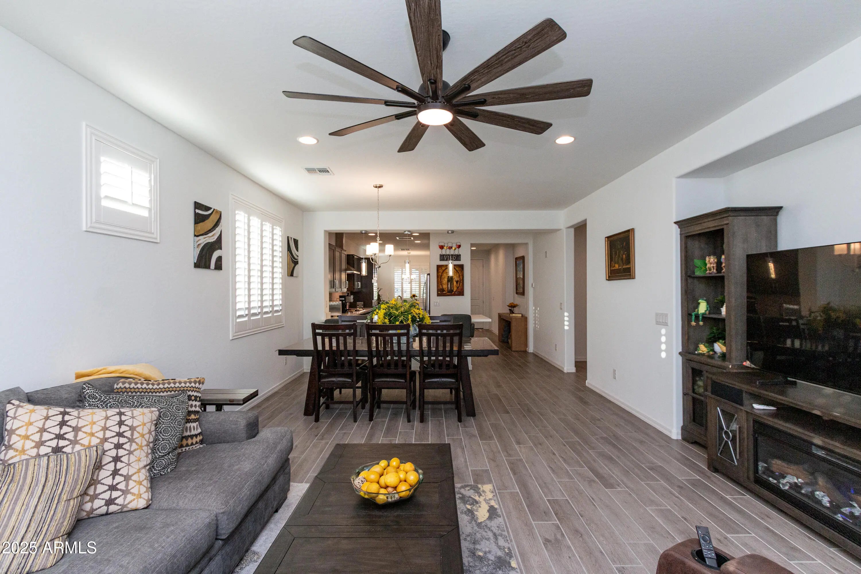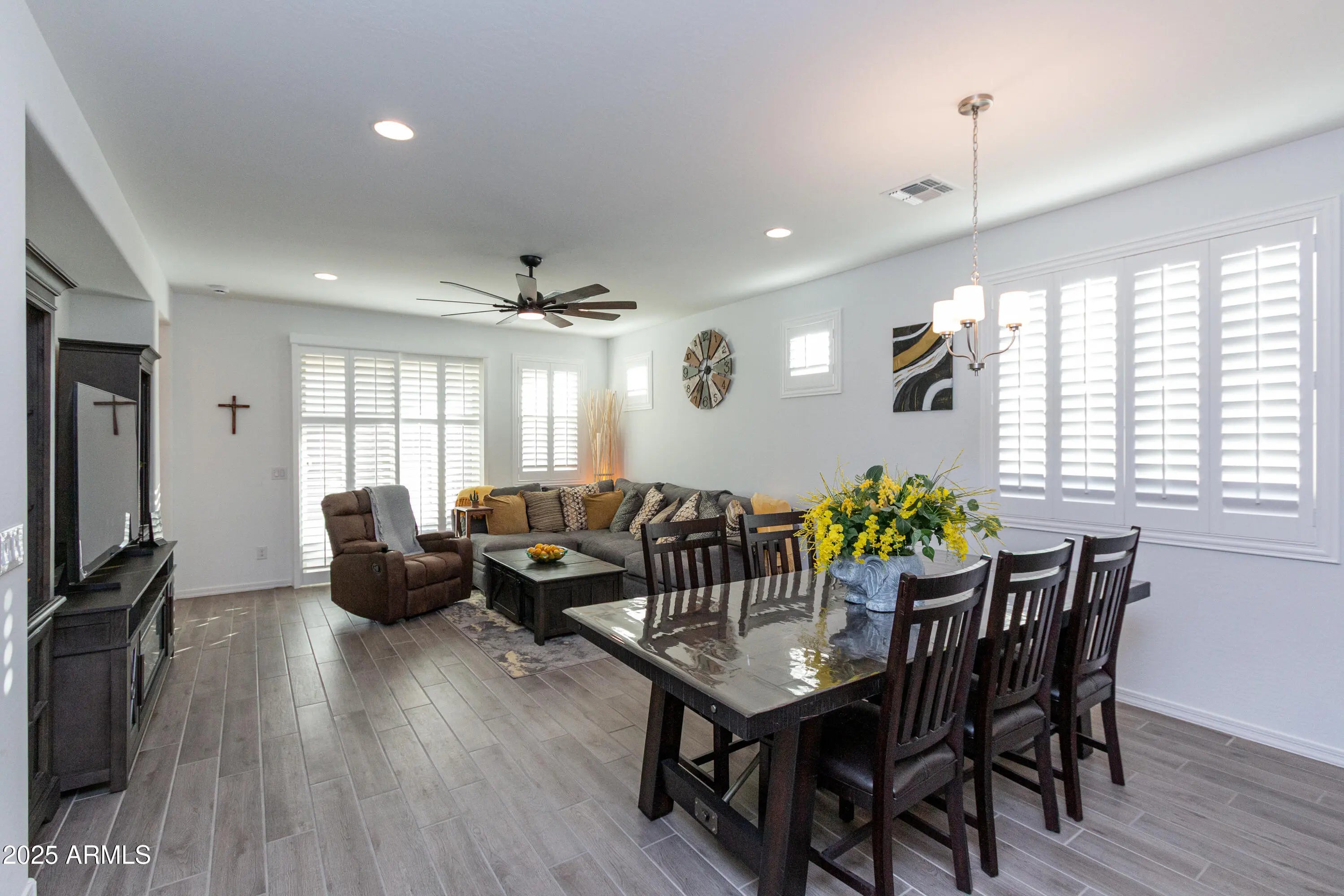Discover this charming home located at Paradisi Discovery. Situated on a desirable corner lot with no rear neighbors, it offers privacy and tranquility. The property is close to a park and nearby amenities, making it perfect for active lifestyles. This thoughtfully designed single-story residence features a comfortable living space, and a dedicated study room ideal for working from home or quiet retreats. The open-concept kitchen seamlessly connects to the casual dining area and great room, creating an inviting space for family gatherings and entertaining. Sliding doors lead to an outdoor living area, perfect for enjoying Arizona's sunny days. The primary suite offers a luxurious retreat with a dual-sink bathroom and a large walk-in closet for storage. *Upgrades list in Document Tap.