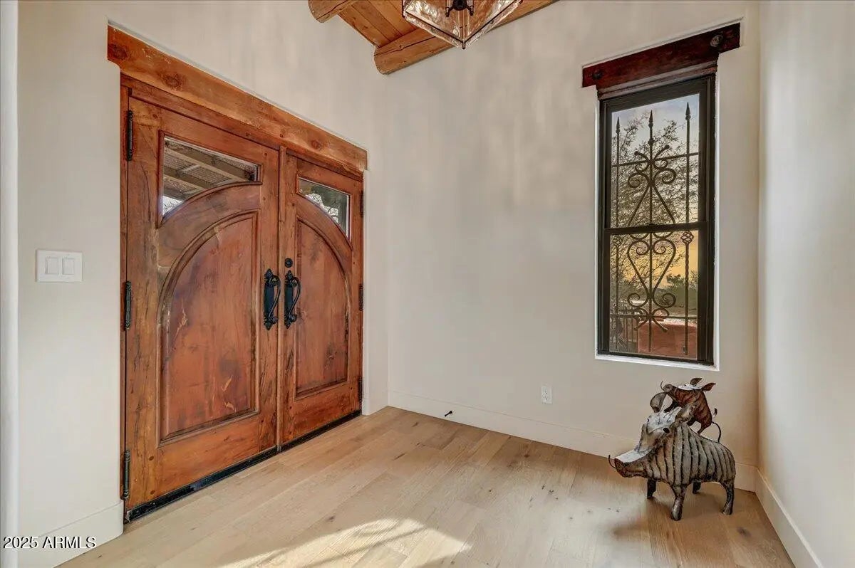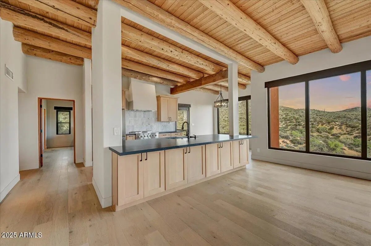 Nestled atop a scenic knoll, this home boasts panoramic views of Tonto National Forest and Four Peaks. On 1.7 acres with access to thousands more tax-free acres, it's a rare opportunity to own this private paradise. Plenty of room to build a guest house. The sellers have transformed this home into an upscale luxury residence, featuring engineered wood floors, tongue-and-groove ceilings with vigas, custom cabinetry, sleek counters, and designer tile. The bathrooms are beautiful and even the shower has a views! Expansive sights of the forest, Desert Mountain/Gold Mountain. and Four Peaks. Unparalleled views you'll never tire of! Near Bartlett Lake, hiking trails, and room for horses. A haven for nature and luxury lovers.