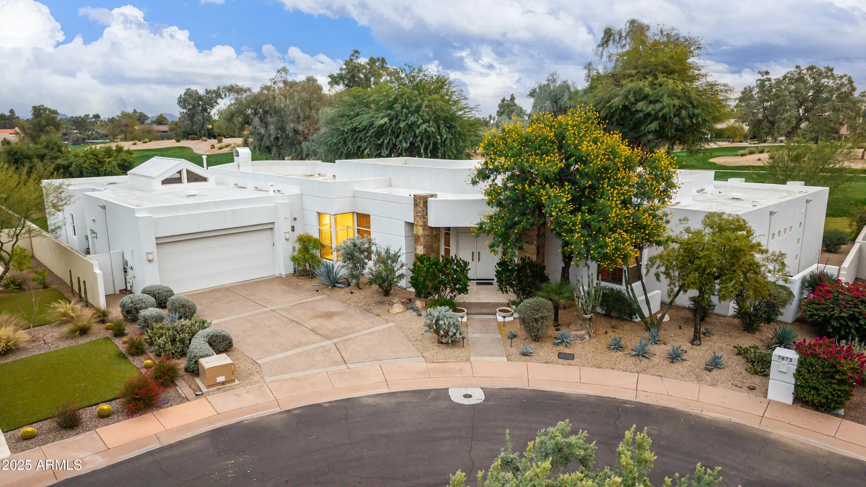 Located at 7873 E Gold Dust Ave, Scottsdale, AZ, this 5 bedroom, 5.5 bathroom single level home offers 5,230 sq ft in the guard gated Gainey Ranch community, within North Meadows at Gainey. Positioned on the 6th hole of The Dunes golf course, this custom Broan-Handley residence sits on a 15,930 sq ft cul-de-sac lot behind its own private gate. A rare Scottsdale basement home, it features all en suite bedrooms plus a powder room, with flexible space ideal for a theater, game room, guest quarters, or separate living area with bedroom and bath. Expansive windows capture golf course views, and the side yard offers room for a future pool. Located near Scottsdale dining, shopping, and golf, with access to Gainey Ranch amenities and community pool.