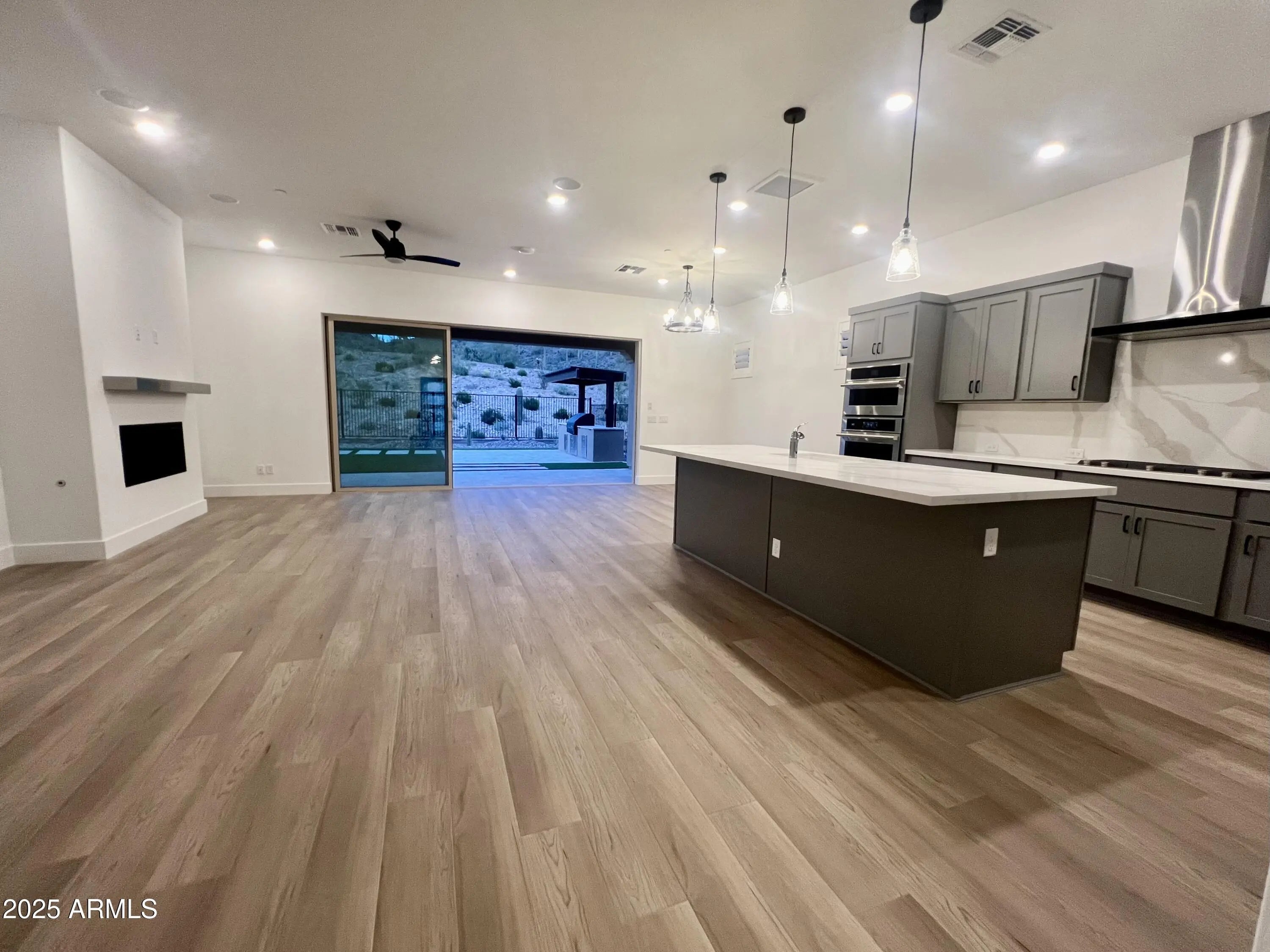 Executive rental home in the newly built Active Adult 55+ Community of Trilogy at Ridgecrest. This brand new 3 Bed, 3 Bath has never been lived in and has absolutely breathtaking mountain and desert views right out your back door! Spacious open floor plan with gas fireplace and large multi-slider, bringing the outside in. Extended travertine patio with built-in BBQ, synthetic grass, and fire pit area. Designer cabinetry and quartz countertops throughout. Beautiful quartz backsplash in Kitchen with stainless hood. All engineered wood flooring (no carpet). Guest En Suite at front of the home has private bath with upgraded walk-in shower. The garage has extra space on one side, perfect for a golf cart or bikes.