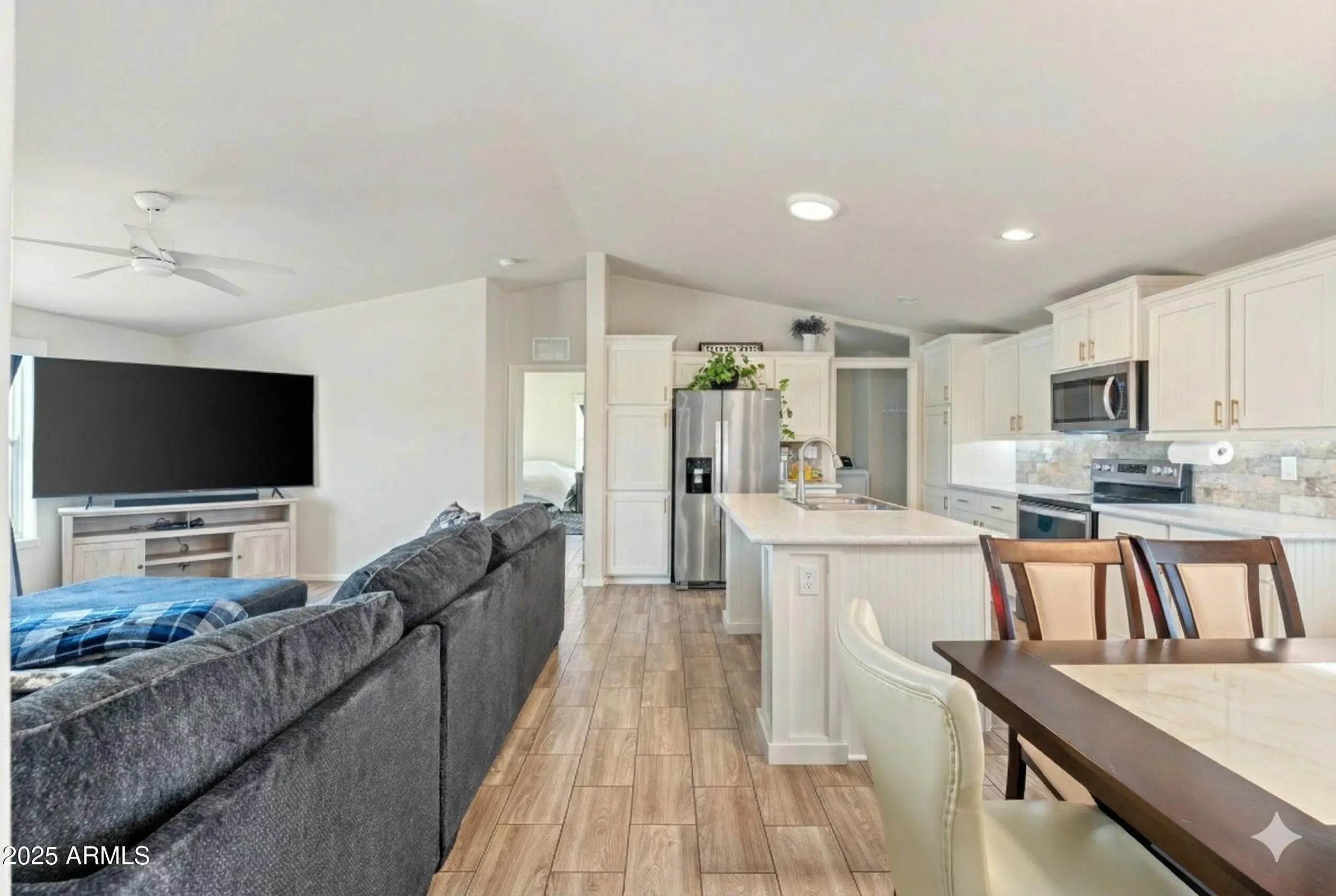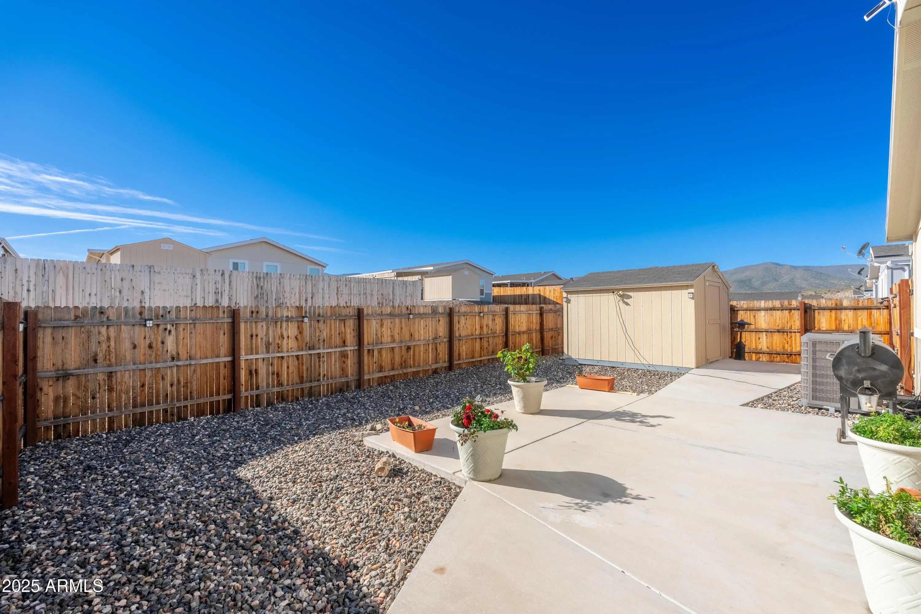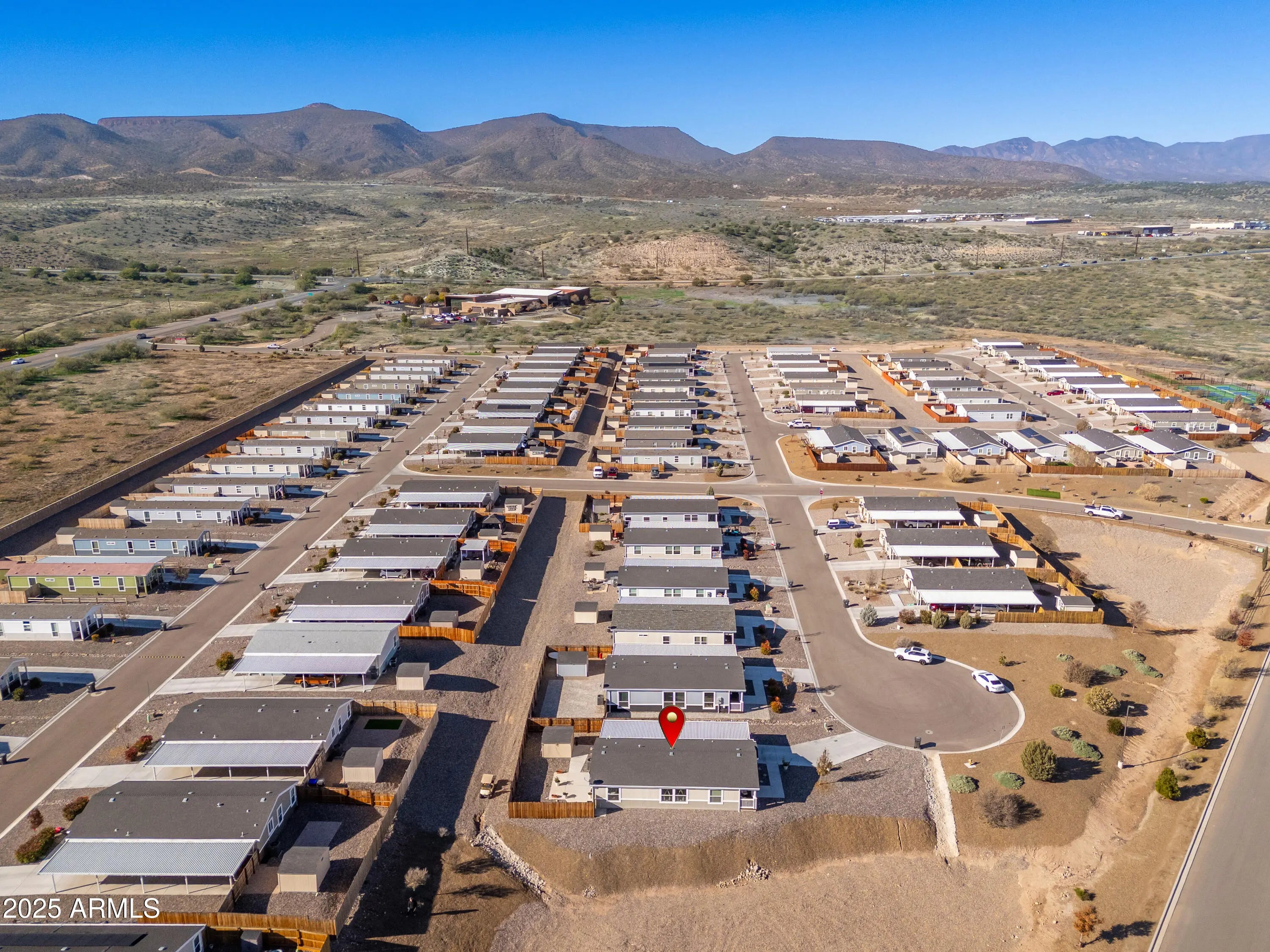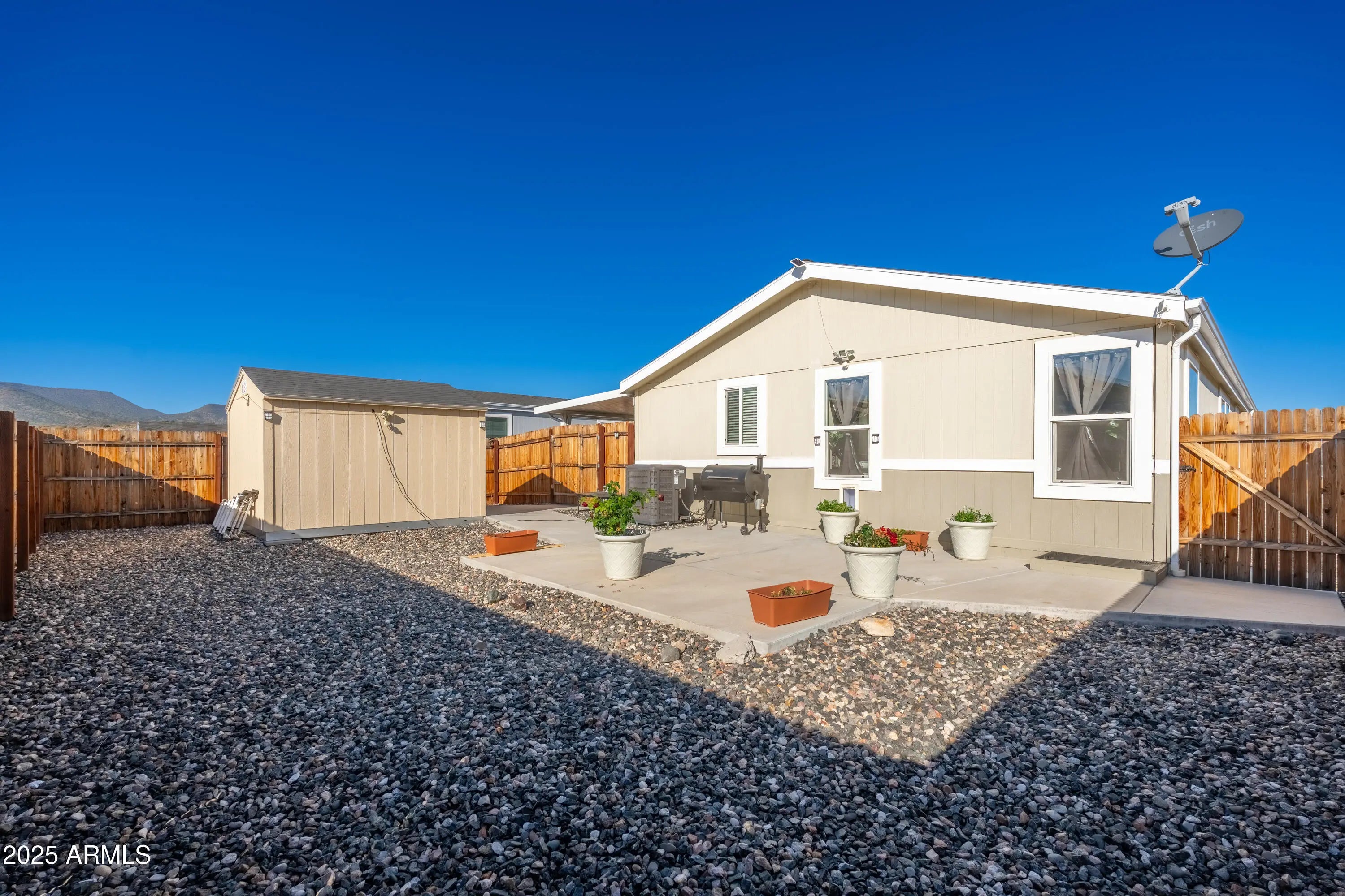 Welcome to this charming 3-bedroom, 2-bathroom 2021 manufactured home located at the end of a quiet cul-de-sac in the desirable Verde Ranch Estates community in Camp Verde. This home features a bright and spacious open-concept layout with luxury vinyl plank (LVT) flooring throughout, creating a clean and modern aesthetic. The split floor plan offers privacy and functionality, while large windows invite natural light and showcase scenic views of the adjacent common area. Outside, the property includes a double carport for covered parking, a fenced yard ideal for pets or gardening, and a storage shed for added convenience. Situated on leased land, this home provides affordable, low-maintenance living in an all-ages community that offers an impressive range of amenities including a clubhouse swimming pool, spa, fitness center, and gated access. Enjoy a peaceful neighborhood atmosphere with easy access to the Verde River, outdoor recreation, and nearby attractions in Cottonwood, Sedona, and beyond. This is a wonderful opportunity to own a newer home in a well-maintained, amenity-rich setting.