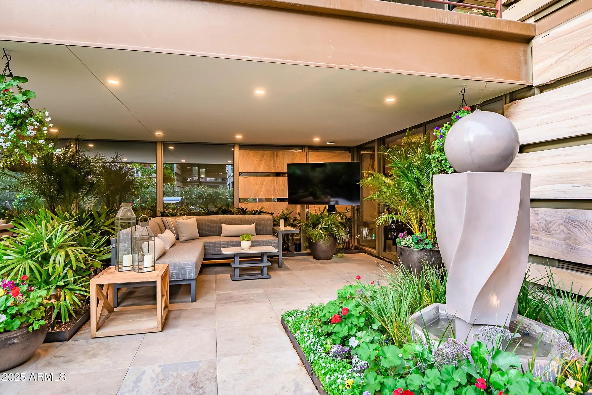 Experience the epitome of luxury living in this majestic professionally designed and meticulously landscaped ultra high-end condo, where elegance meets effortless sophistication. This unit is being offered TURN KEY and FULLY FURNISHED. This property boasts the most incredible condo patio in all of Arizona - featuring over 2000 SQFT of absolute perfection. The expansive outdoor space doubles your lounging and entertaining areas, creating a seamless blend of indoor-outdoor living. The interior was completely renovated and comprises of a stylish 2-bedroom, 2-bathroom split floor plan with every luxury finish and feature you can imagine. Sub Zero / Wolf appliances and fully integrated iPad controlled smart home (automated blinds, nest thermostats, Lutron caseta lighting & more) -All found within the luxurious Optima Camelview Village, with it's unbeatable location & state of the art architecture/amenities. Amenities include: Two Outdoor Zen Pools, Spas & Bbqs One on each side of the community (heated year round). 24,000 sq. ft. Fitness Center (Recently Remodeled). Mens & Women's Locker Rooms w/ Saunas, Showers and Private Lockers. Indoor Lap Pool & Spa (Heated year round), Cold Plunge, On-site concierge, Putting green, Hybrid Basketball / Pickle-ball Court, Racquet ball court, On-site restaurant (metropolis), conference room, 24/7 Security, Reservable party room and multi-purpose fitness/yoga room.