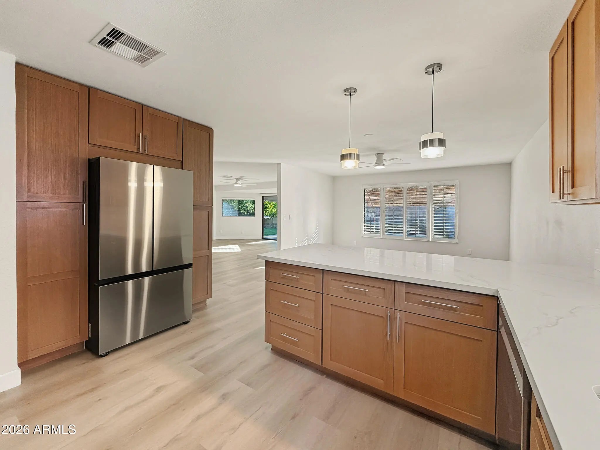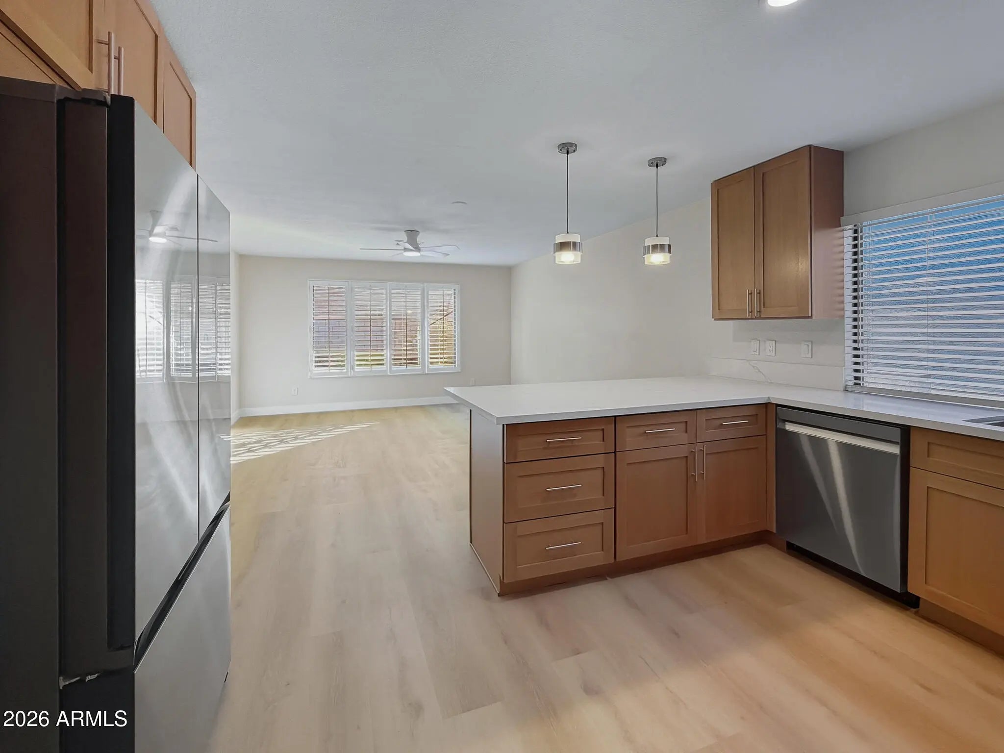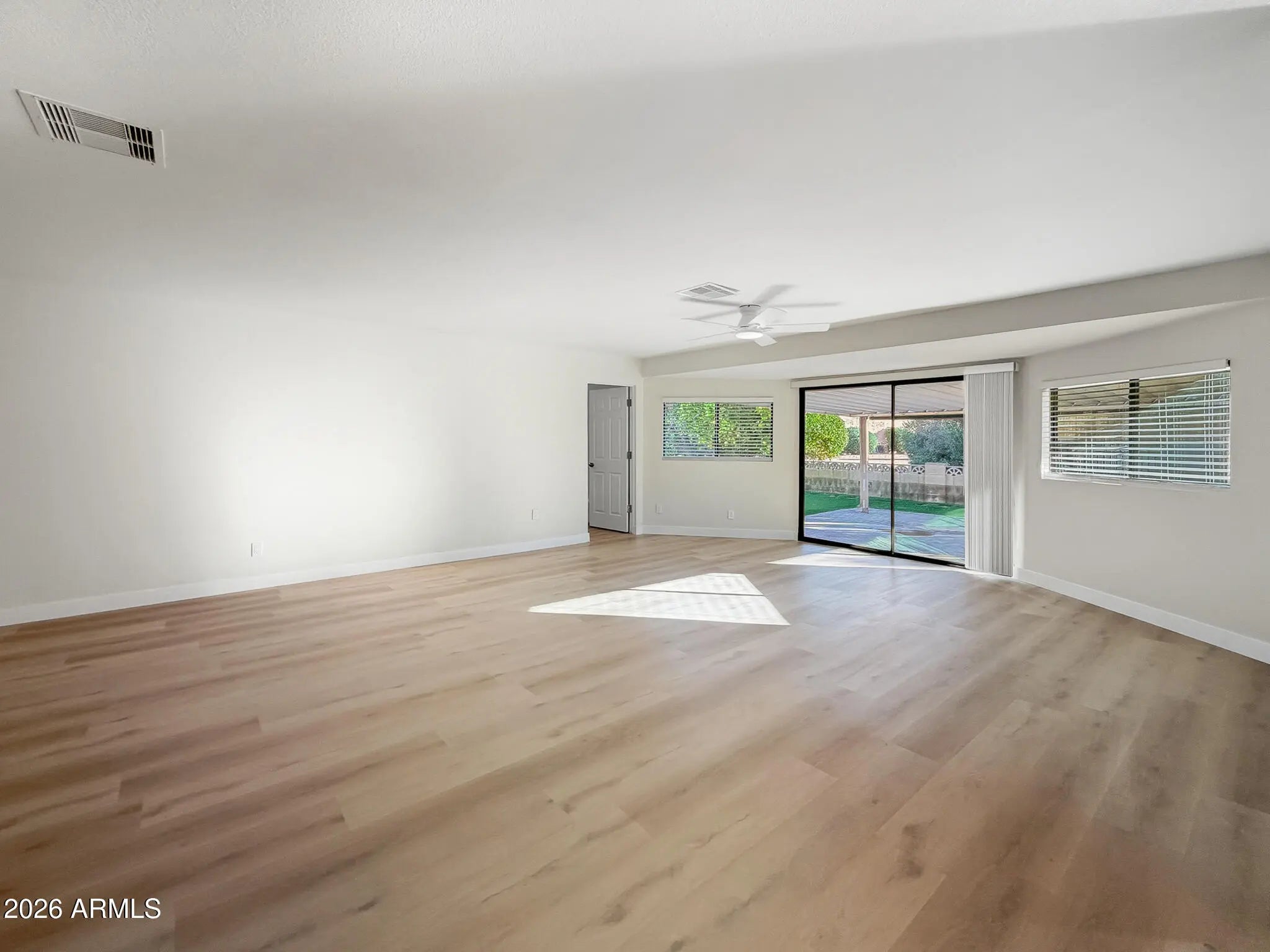 Completely remodeled in 2025 with a brand-new interior, this single-level home features an open layout, new flooring throughout, fresh interior paint, all-new cabinets, and a redesigned kitchen with new Samsung appliances. The fully remodeled bathrooms include modern finishes, new vanities, and updated fixtures. Additional upgrades include new doors and hardware, new baseboards, recessed kitchen lighting, and new windows throughout. No interior steps and direct access to a private backyard with a covered patio. Located in the guard-gated Fountain of the Sun 55+ community offering a pool, clubhouse, golf course, and an active social calendar. Conveniently close to shopping, dining, and major roadways.