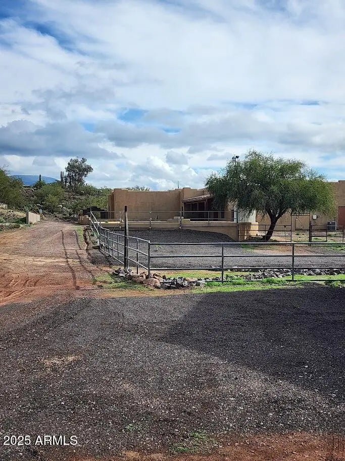Modern Luxury Meets Desert Serenity! This stunning New River estate offers the perfect blend of high-tech efficiency and horse-property charm. Peace of mind comes standard with a brand-new roof and a newly installed solar system (fully owned), ensuring massive energy savings. Inside, enjoy pristine water from the new whole-house filtration system. This 5-bedroom custom home features 10-foot ceilings, travertine floors, New wood shutters, and a chef's kitchen with granite countertops and a massive island. Car and outdoor enthusiasts will love the newly enclosed carport, perfect for securing an RV or boat. Step outside to breathtaking 360-degree mountain views and a property that is fully ready for your horses with existing stalls and plenty of room to roam. No HOA, just pure Arizona living Street not paved