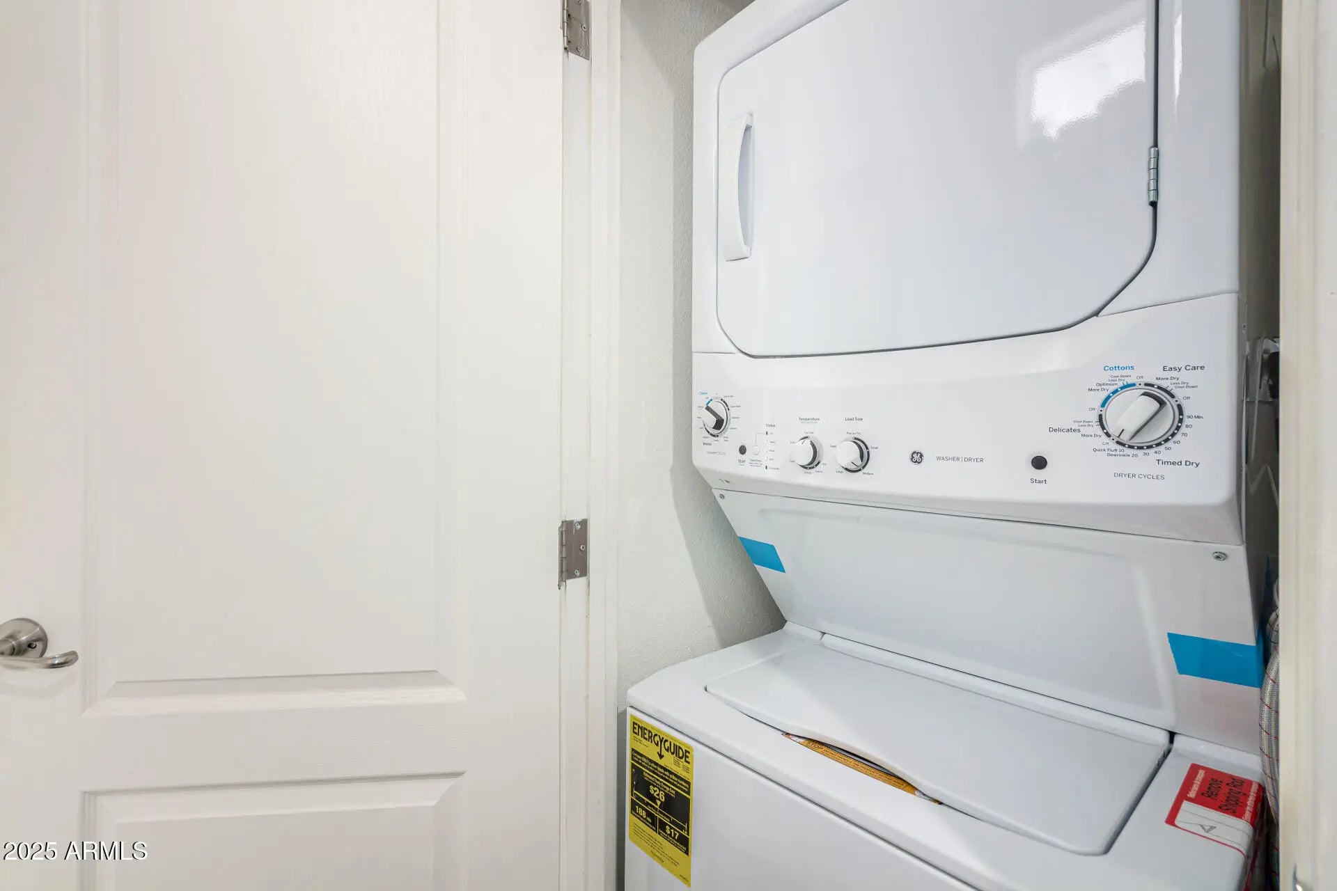 Stacked Washer/Dryer, Dryer, Washer, Refrigerator, Electric Range