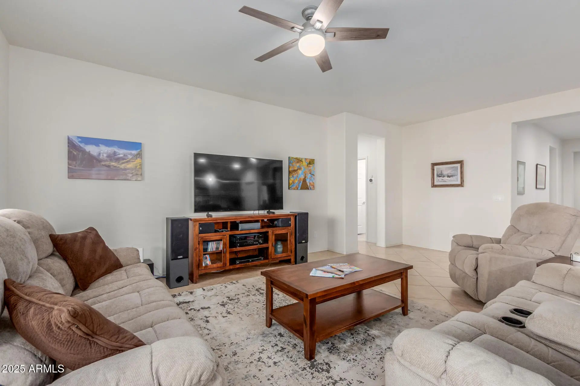 Step into resort-style living in the prestigious Sun City Festival community, where this immaculate Refuge model redefines modern desert luxury. This 2020 Del Webb custom-built residence offers over $53K in upgrades, a spacious 2,187 sq.ft. floor plan, 3 large bedrooms, a flexible private den, & 2.5 baths--perfectly balancing comfort, privacy, and effortless entertaining. At the heart of the home, the gourmet kitchen shines with granite surfaces, stylish tile backsplash, stainless steel appliances, a gas cooktop, walk-in pantry, and an oversized island ideal for casual dining. Honey oak cabinetry, soft-close drawers, pull-out shelving, under-cabinet lighting, and elegant pendant lighting elevate both beauty and function. Premium upgrades flow throughout, including diagonal-set 18'' tile, plush bedroom carpeting, plantation shutters, sunscreens, an upgraded security screen door, and custom barn doors leading into the luxurious owner's suite. Additional enhancements include rain gutters, added laundry room storage, water softener, and an EV-ready insulated tandem garage with a dedicated golf cart alcove and finished epoxy floor/driveway. Step outside to the professionally landscaped, walled backyard with beautiful mountain views, designed for year-round enjoyment. An extended covered patio with epoxy floor, sunshade, dual pergolas, and a relaxing Jacuzzi spa set the stage for unforgettable evenings under the desert sky. Perfectly positioned on the coveted south side of Sun Valley Parkway, you'll enjoy quick access to the Saguaro Recreation Center, Copper Canyon 27-hole resort style golf course with a premier on-site dining destination, 2 resort style zero entry pools and lap pools, over 30 clubs to join, more than 30 Pickleball courts, and additional world-class amenities that make Sun City Festival one of Arizona's premier 55+ destinations. This is more than a home--it's your invitation to live the Arizona lifestyle you've been dreaming of. Prepare to fall in love!