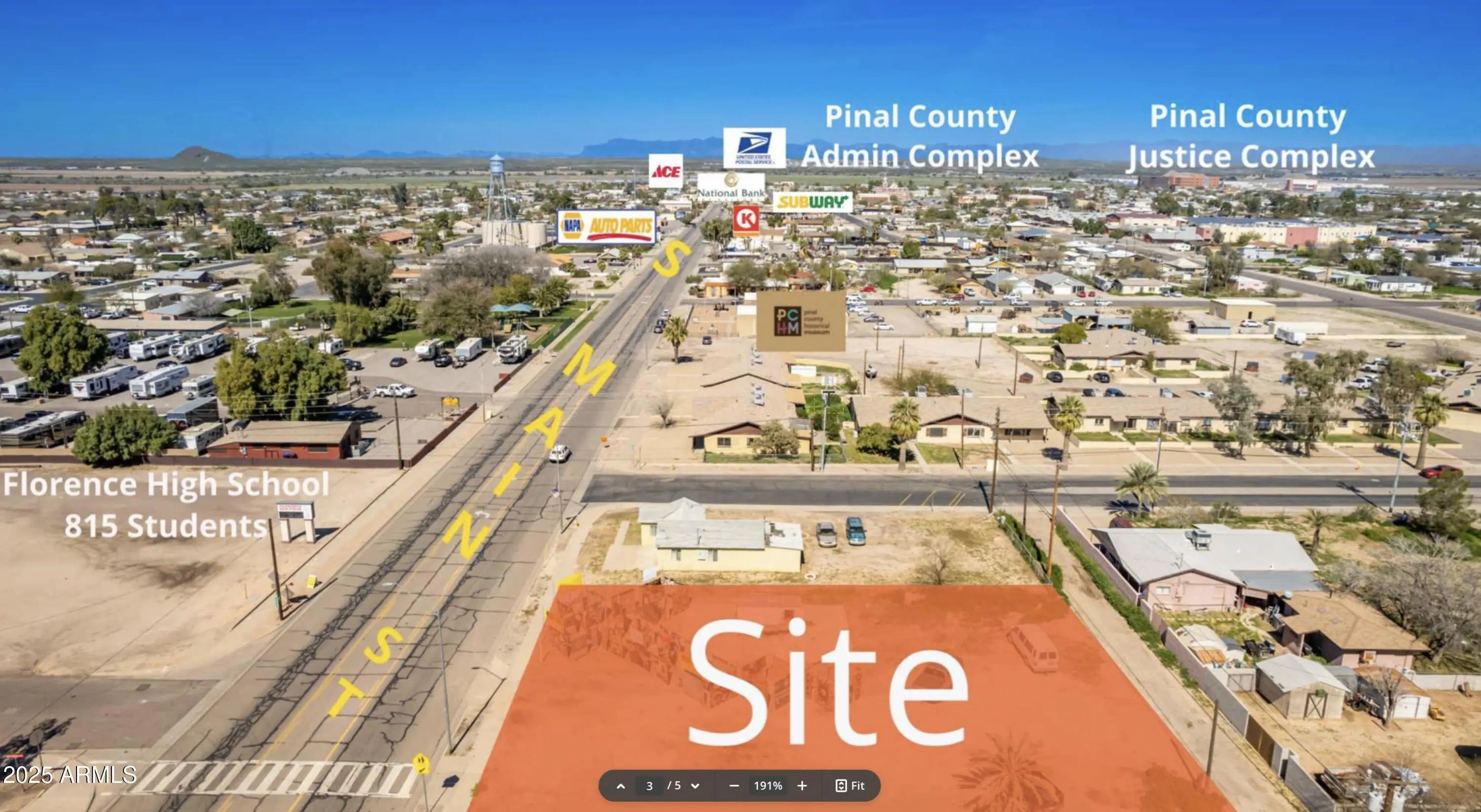 This 0.34-acre parcel along S Main St in Florence located across from Florence HS is now available for sale. Seller is offering seller financing with $10000 down and $115000 financed at 8% for 30 years. Estimated P&I payment is $843.83 per month plus a $20 third party servicing fee for a total payment of $863.83. No prepayment penalty. Buyer to verify all details. Build to suit or ground lease options available and site is zoned retail commercial. Seller financing available! Potential for drive thru. Previous plans Wirth a drive thru were approved by Town of Florence P&Z in 2024.