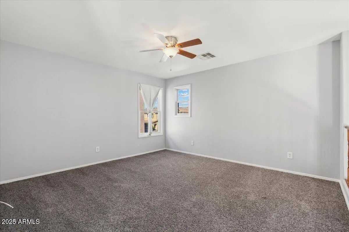 You are going to love this rental! This 3 bedroom, 2.5 bathroom house is located in a peaceful neighborhood. Walk into a wide-open floor plan with tons of natural light, upgraded flooring and tons of designer upgrades! The fully equipped kitchen has granite counters, plenty of cabinet space and custom tile backsplash. Walk upstairs to a loft that is perfect for the kids or an office space. The secondary bedrooms all with ample closet space and ceiling fans. Master retreat with en-suite bath inluding dual sinks and large walk-in closet. Backyard is beautifully landscaped with deco pavers and covered patio. Washer & Dryer included! Home is centrally located and close to ALL Phx has to offer! The perfect place to call home!