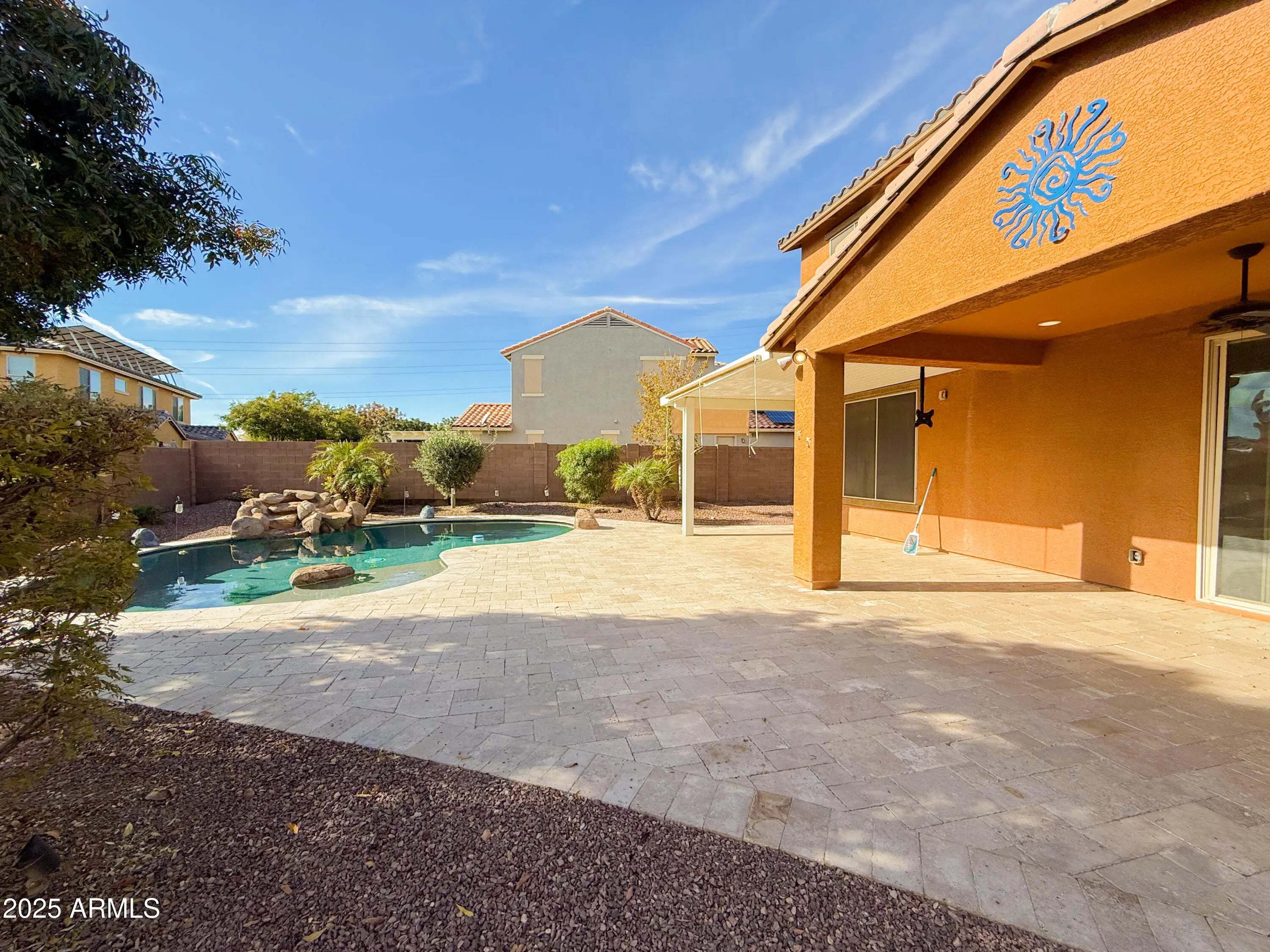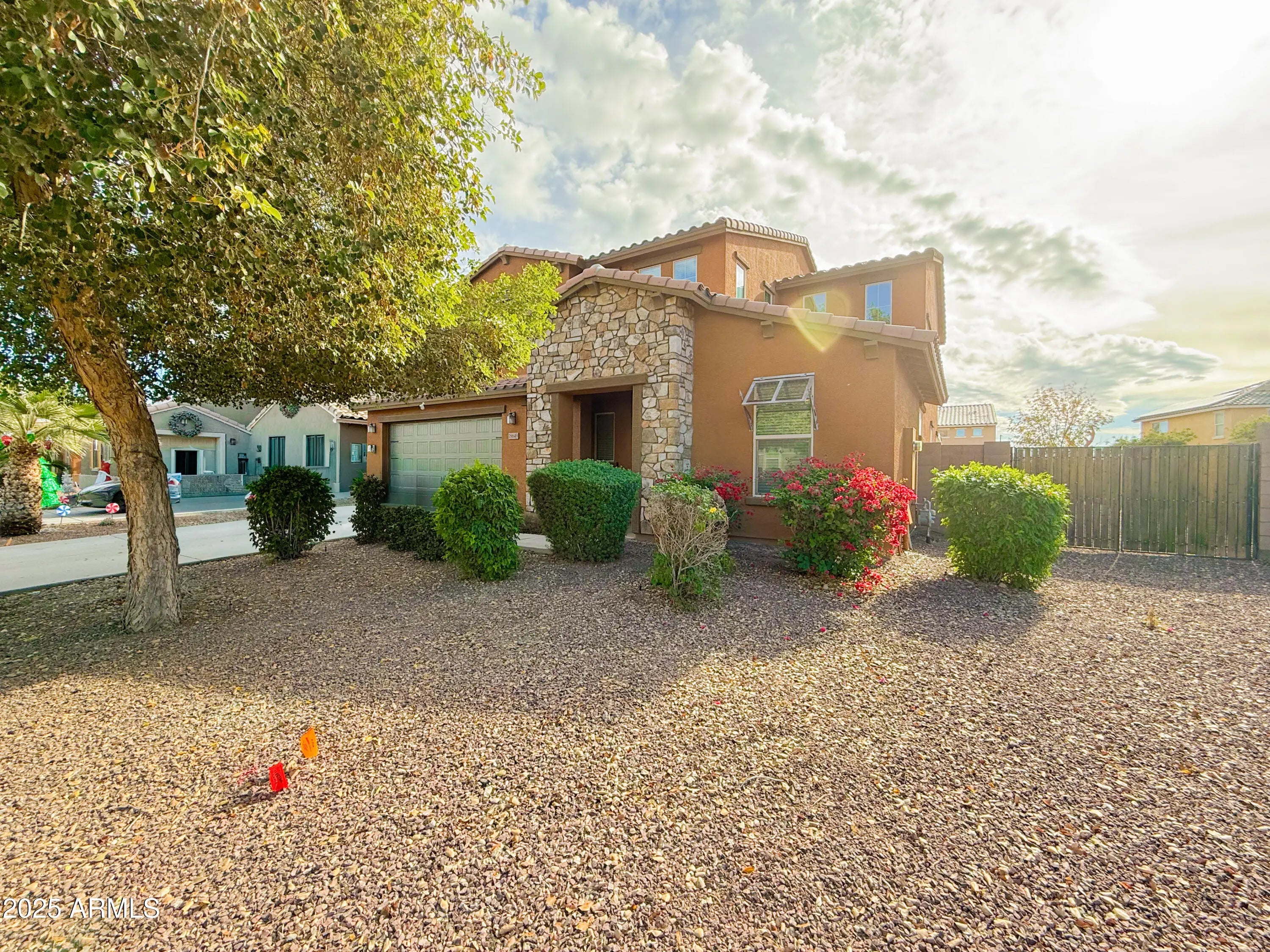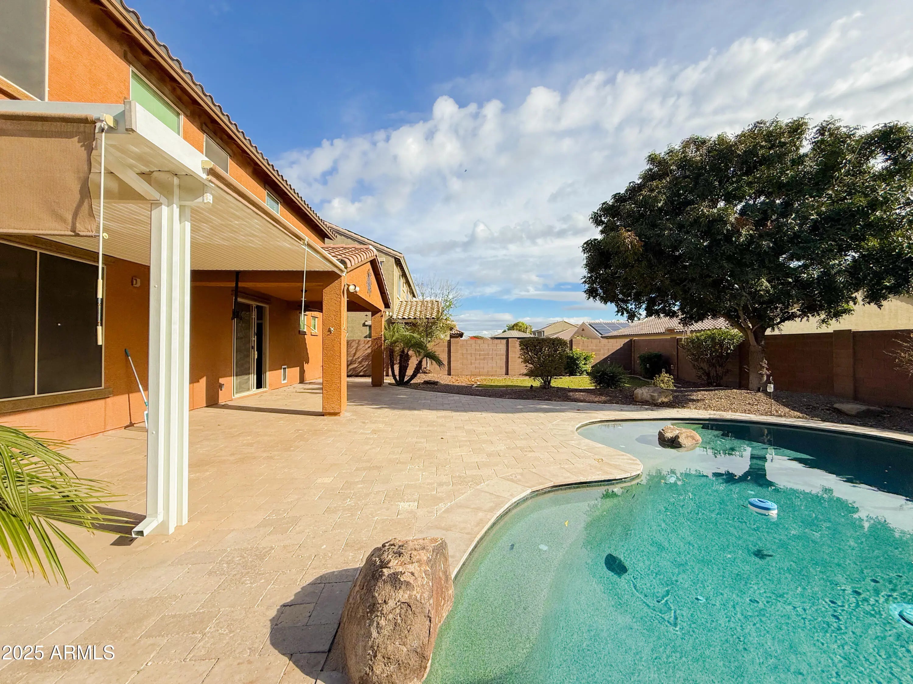 Beautiful 4/2.5 Goodyear House! This stunning 4-bedroom, 2.5 bath residence offers stylish living in the desirable Las Brisas HOA community. The home features tile flooring, quartz countertops, a modern backsplash, and a spacious great room. The master bedroom has an enclosed bath and an oversized walk-in closet. The split layout includes an upstairs laundry near three bedrooms a downstairs den/bedroom, and a spacious loft perfect for work or play. Outdoor living shines with a private pool (heater/cooler), synthetic turf, RV gate, and extended covered patio with sunshades - perfect for year-round enjoyment. With eye-catching stone accents, a 2-car garage, and proximity to shopping, dining, and top schools, this property blends comfort, convenience, and curb appeal!