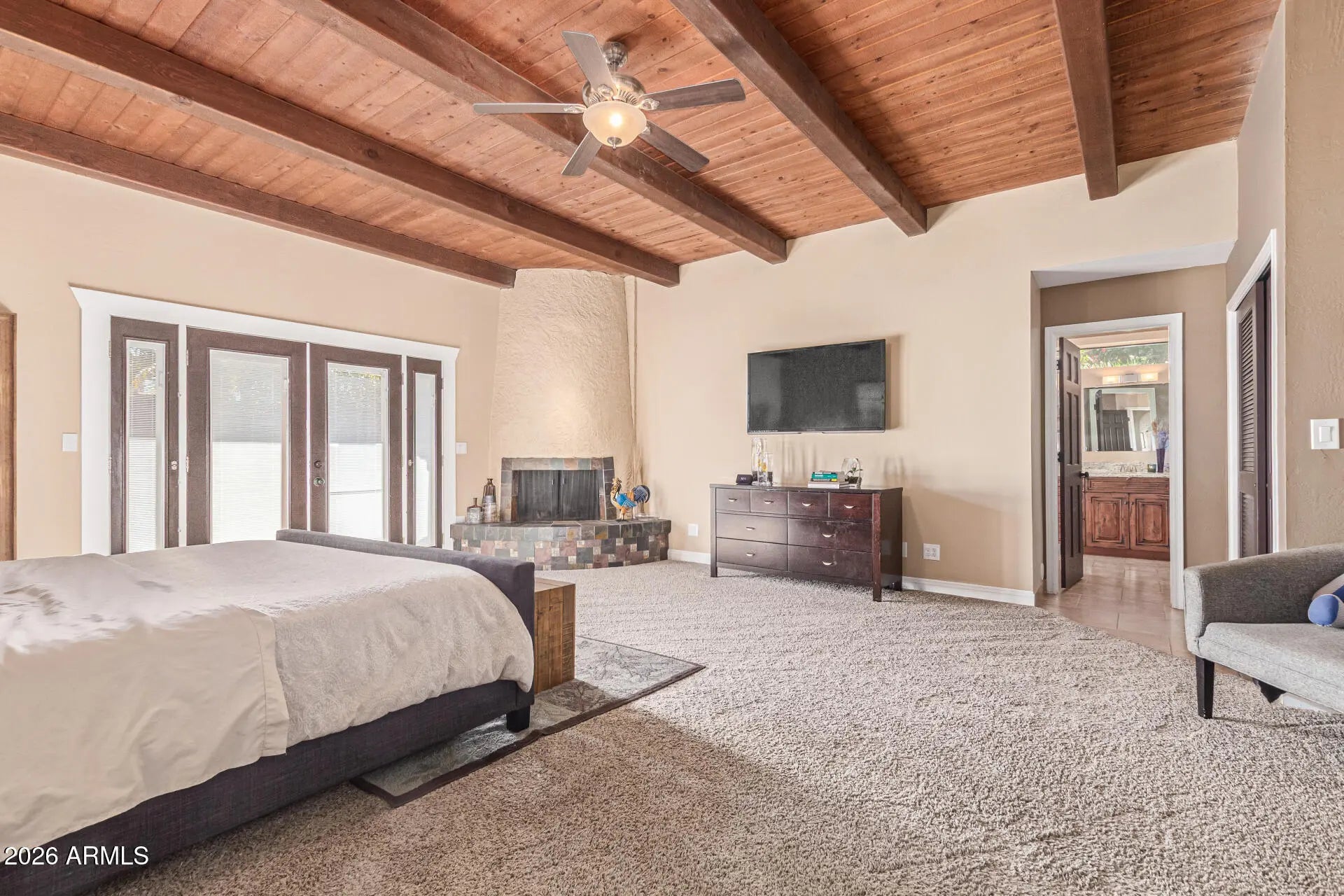 Exterior Fireplace, Living Room, Master Bedroom