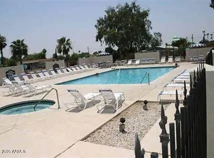 Located in the Sierra Estates community in Mesa, this home features new interior paint and new carpet in the living room and primary suite. The open, split floor plan offers flexible living and entertaining space. All bedrooms include walk-in closets, with a large primary walk-in closet. The fenced backyard backs to a school, meaning one less neighbor directly behind. Washer and dryer with double load capacity included. Flooring credit offered for updates or replacement. Enjoy community amenities including a clubhouse, pool, jacuzzi, playground, basketball court, and billiards room in this family-friendly neighborhood.