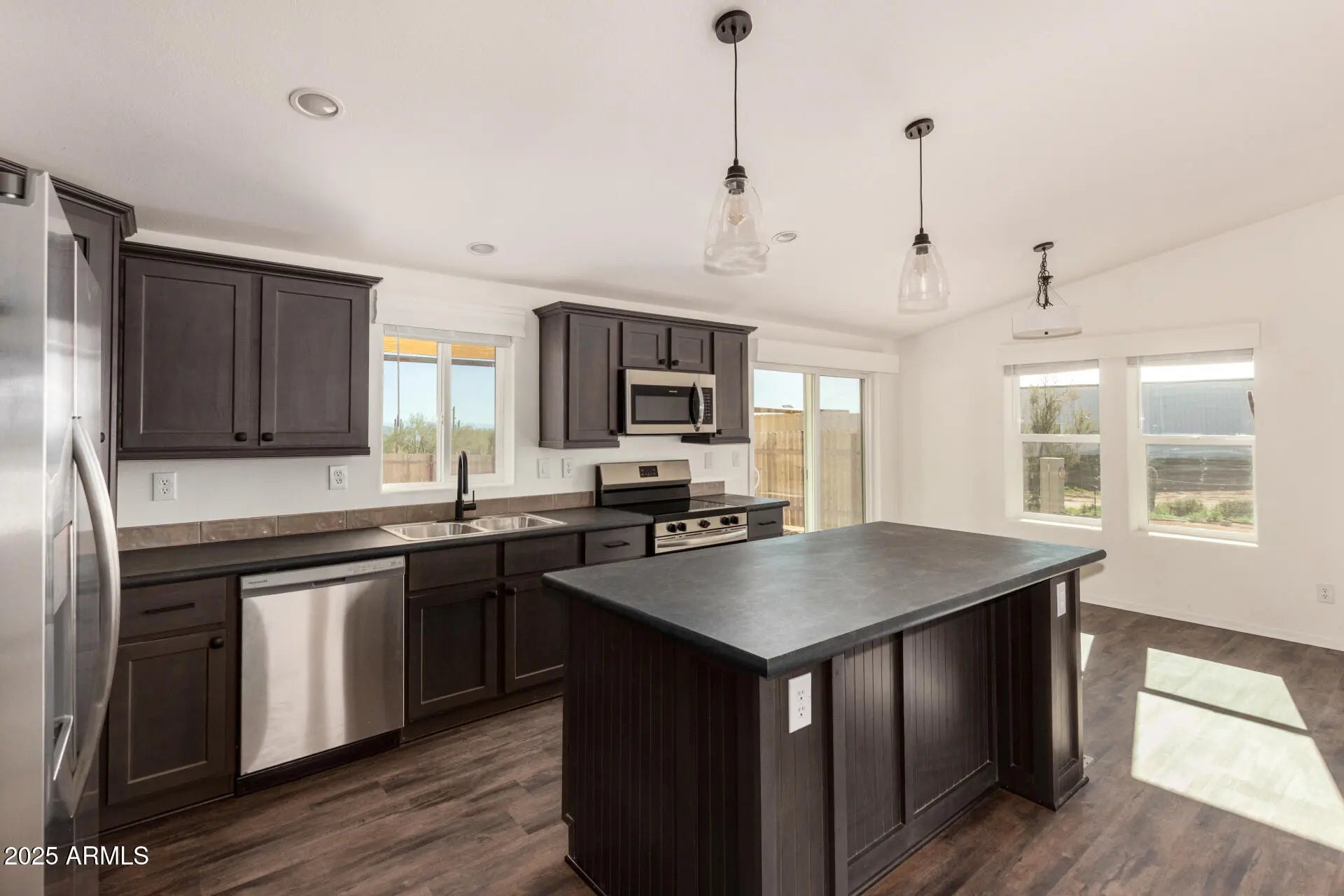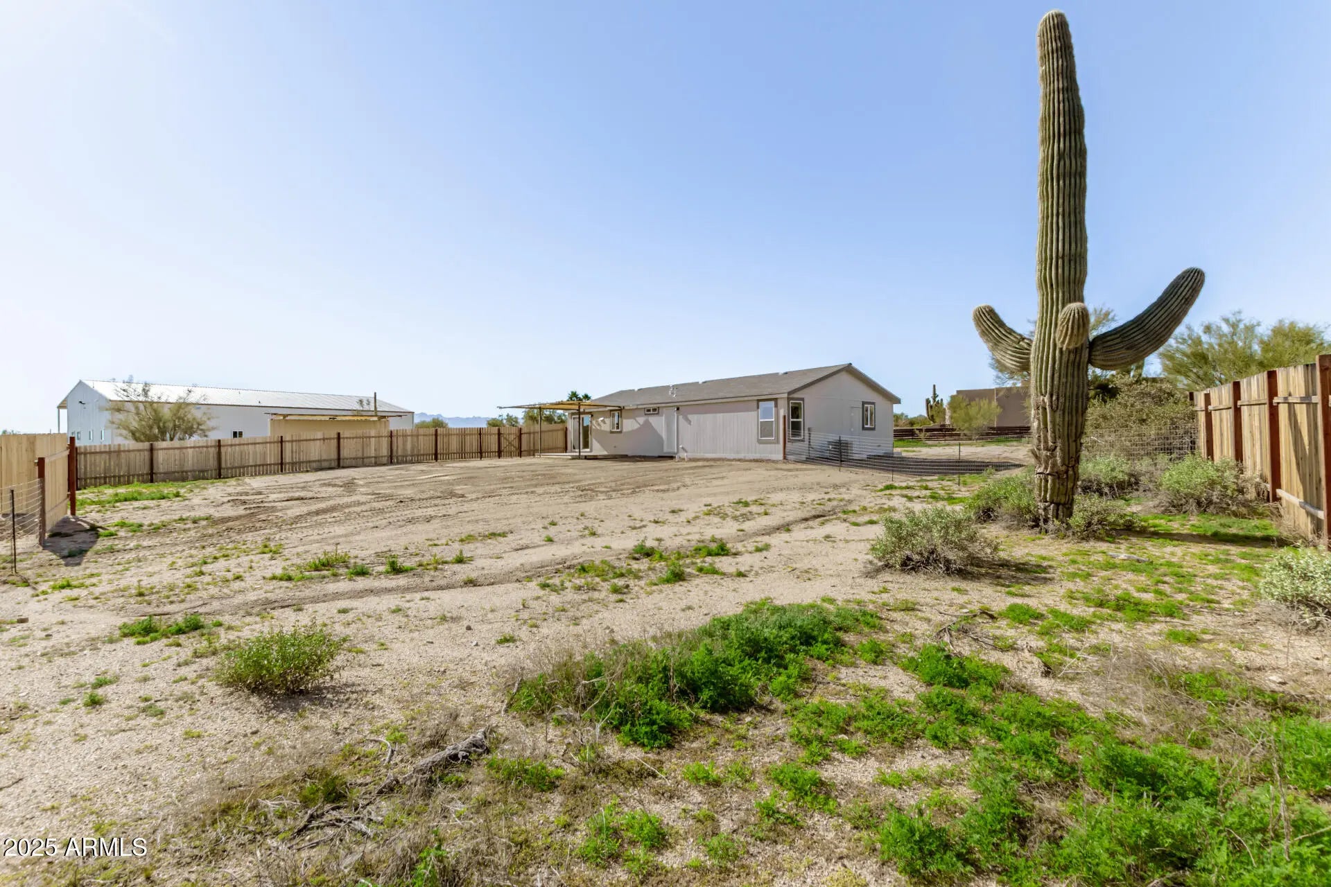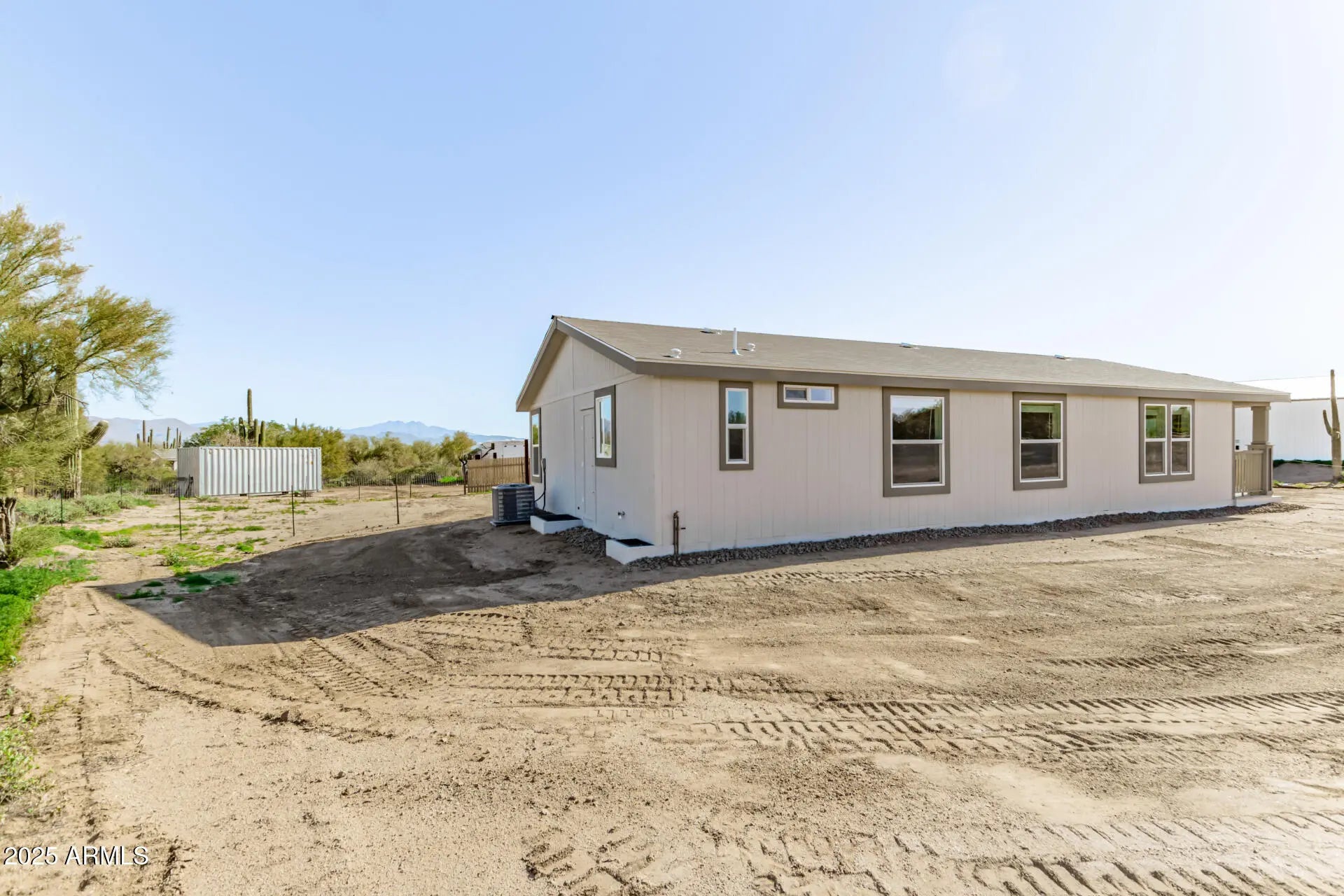 Brand-new manufactured home in desirable rural Scottsdale/Rio Verde area with breathtaking desert views! This light and bright 3-bedroom, 2-bath residence offers an open floorplan with luxury vinyl plank flooring throughout. The modern kitchen has upgraded shaker-style cabinets, stainless steel appliances, kitchen island & ample storage. Washer & dryer are included. Situated on a large lot, the property offers a fully fenced yard and a covered back patio—perfect for taking in views of Four Peaks. Covered carport parking & storage container provide excellent space for gear, tools, or recreational ''toys'' such as dirt bikes and ATVs. The home is on hauled water. This location is ideal for outdoor enthusiasts seeking space.