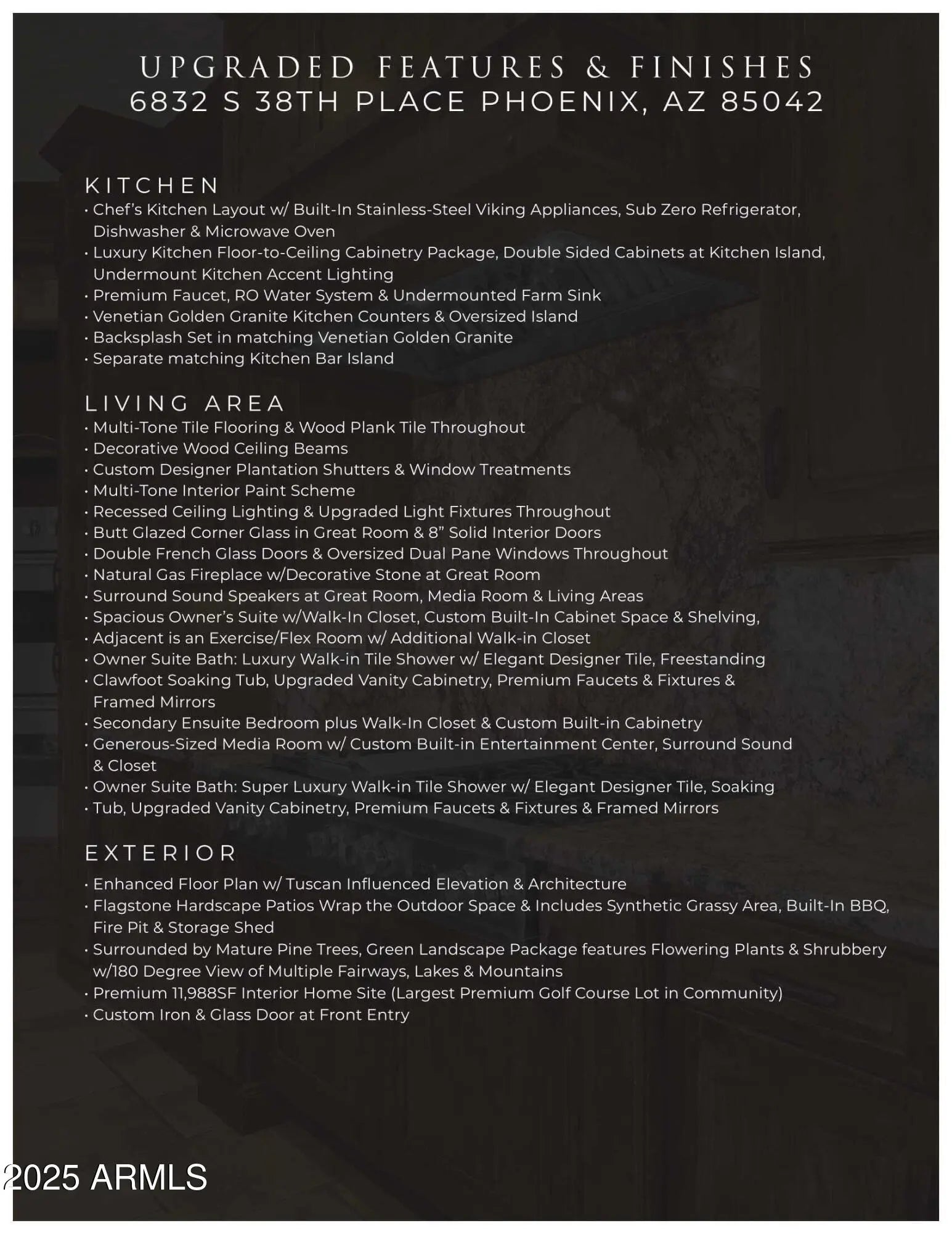 Rare Opportunity Awaits in Exclusive Pines at The Raven! This 3 Bedroom, 3 Bath Custom Home is spacious w/ Open Great Room Floor Plan, Stunning Chef's Kitchen Layout w/ Huge Island, Viking Stainless Steel Gas Cooktop & Double Ovens, Sub Zero Fridge/Freezer, Floor-to-Ceiling Custom Cabinetry covered in Venetian Golden Granite Counter Tops & Backsplash. This 3,458SF single level home resides on a Premium 11,988SF Interior Home Site Surrounded by Mature Pine Trees w/ 180 Degree View of Multiple Fairways, Lakes & Mountains. The Raven Golf Club is a ''Top Rated'' 72 Par Championship Course situated within the Gated Community, Pines at The Raven.Great Lock & Leave Home with no minimum rental period. Come Look Around. See Yourself Living Here. Fall in Love & Make an Offer! This is the ONE! Pines at The Raven has been the majestic destination community known for its picturesque scenery and neighborhood charm. It's warm and inviting, full of friendly neighbors, engaging lifestyle and exceptional amenities nearby. Beyond your front door features a community Heated Swimming Pool & Spa and South Mountain Park & Preserve. Located within the City of Phoenix, residents take advantage of the countless nearby amenities including easy freeway access, shopping, dining, entertainment, Sky Harbor Airport, hospitals & booming business corridors. Just minutes away from Downtown Phoenix and Major Sports Venues (AZ Diamondbacks & Phoenix Suns).