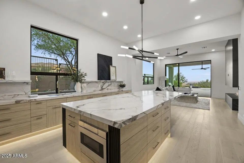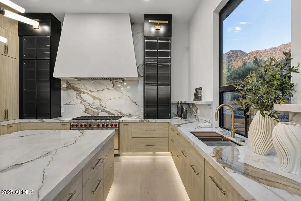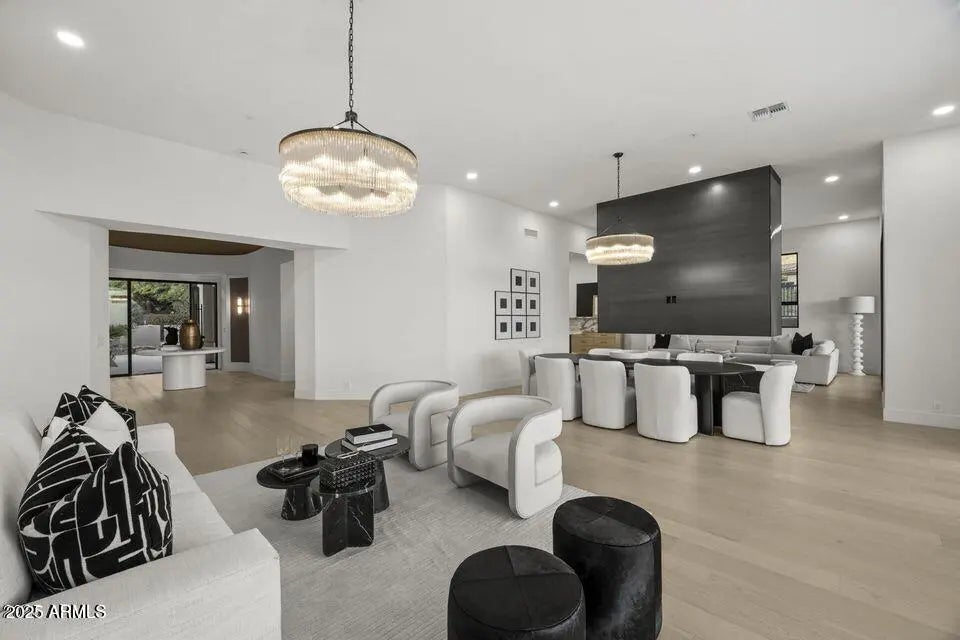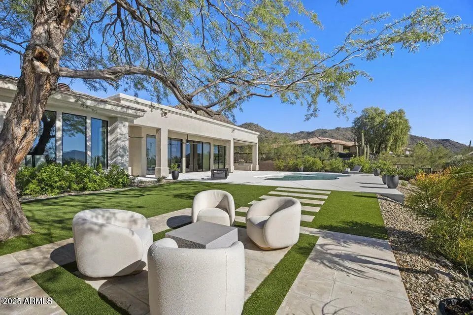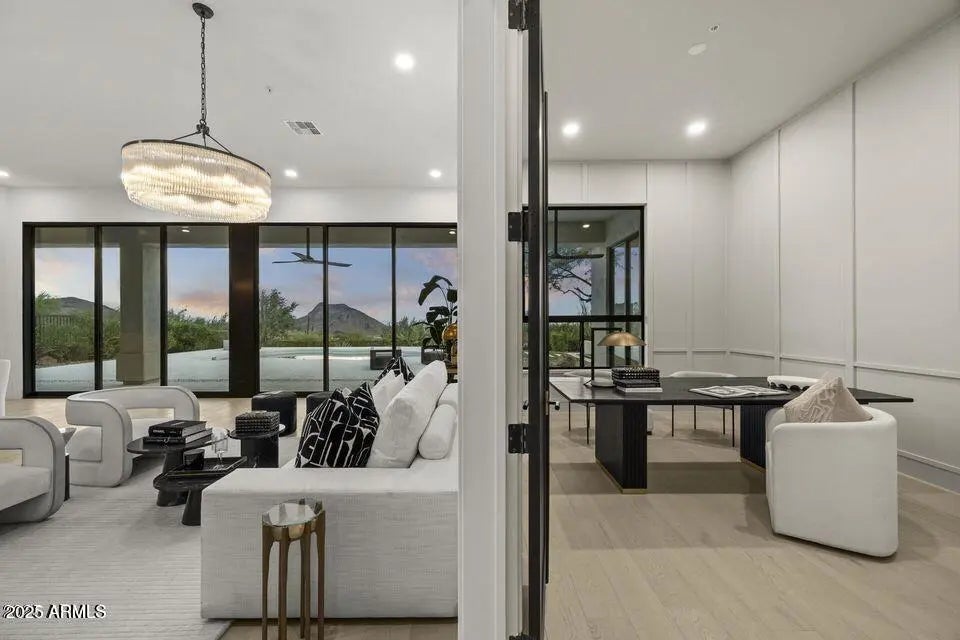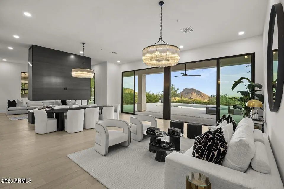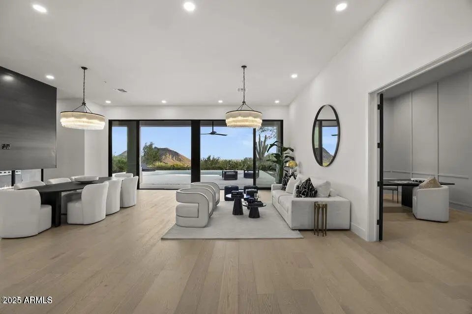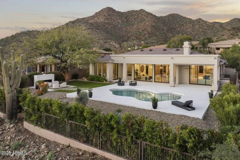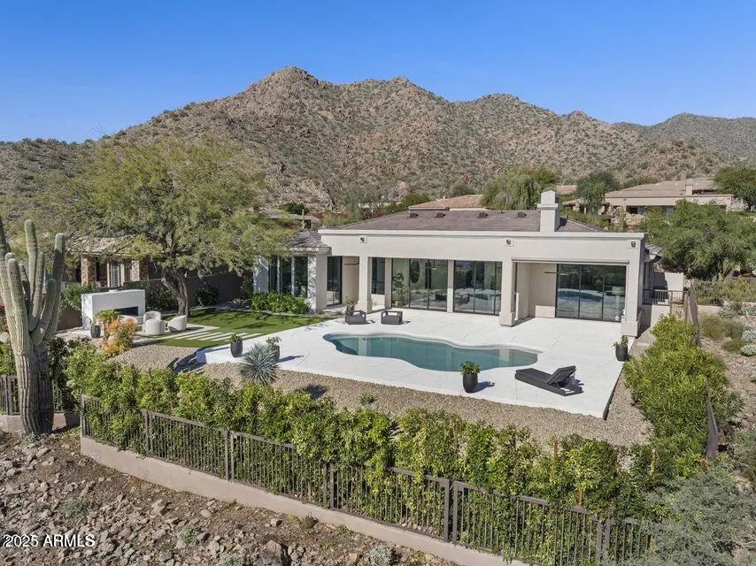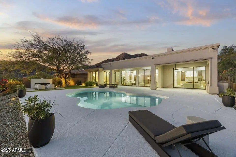 Full Remodel Designed by award-winning Candice Quinn of London Pierce Design, this reimagined single-story residence beautifully balances modern luxury with timeless craftsmanship. Wide-plank white oak floors, custom millwork, and a striking floating fireplace create an inviting atmosphere that feels both refined and welcoming. Seamless indoor-outdoor living invites you to relax and recharge, with expansive multi-slide glass doors framing breathtaking city lights and mountain views. Resort-style amenities, including a Pebble Tec pool, built-in BBQ, and a second fireplace set the stage for effortless entertaining and memorable moments. At the heart of the home, the chef's kitchen inspires creativity with SOLLiD cabinetry, Calacatta quartz, Wolf, Sub-Zero, hidden scullery butler's pantry that keeps gatherings smooth and stress-free. A serene primary suite and a spacious laundry room add comfort, ease, and everyday convenience, making this home as livable as it is beautiful.