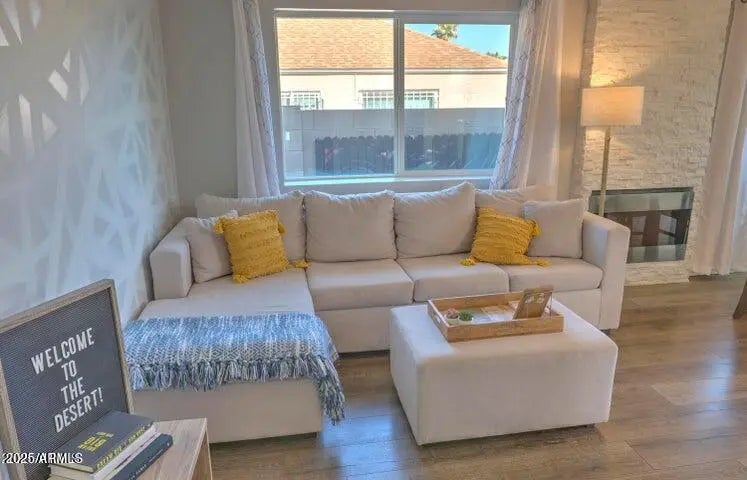 Beautifully remodeled contemporary meets historic home featuring 1,190 sqft in the main house with 3 bed, 2bath plus a 400sqft studio guest house complete with a full kitchen, 3/4 bath and spacious walk-in closet. The main home showcases a stunning brick fireplace, an open living room and a large, upgraded kitchen with newer cabinets, title backsplash and SS appliances. The primary suite offers a remodeled bathroom with vanities, countertops and stylish tile. The guest house featurs a full kitchen with upgraded cabinets, counters, tile, backsplash and appliances. Much of the main home, and the entire guest house, is constructed with Adobe, adding unique charm, character, and historic appeal. The property also includes separate outdoor storage.