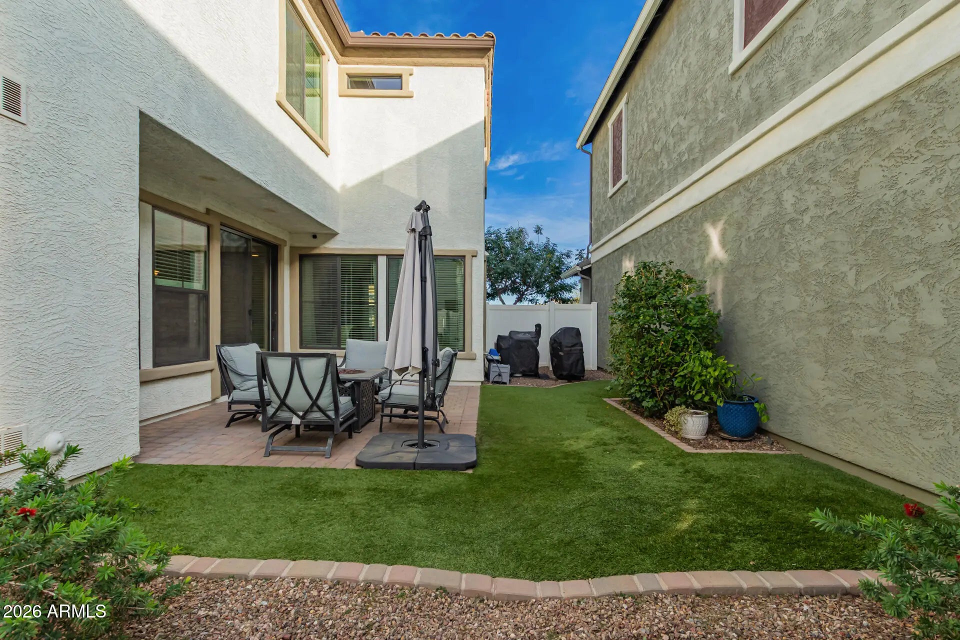 North/South Exposure, Gravel/Stone Front, Gravel/Stone Back, Synthetic Grass Frnt, Synthetic Grass Back