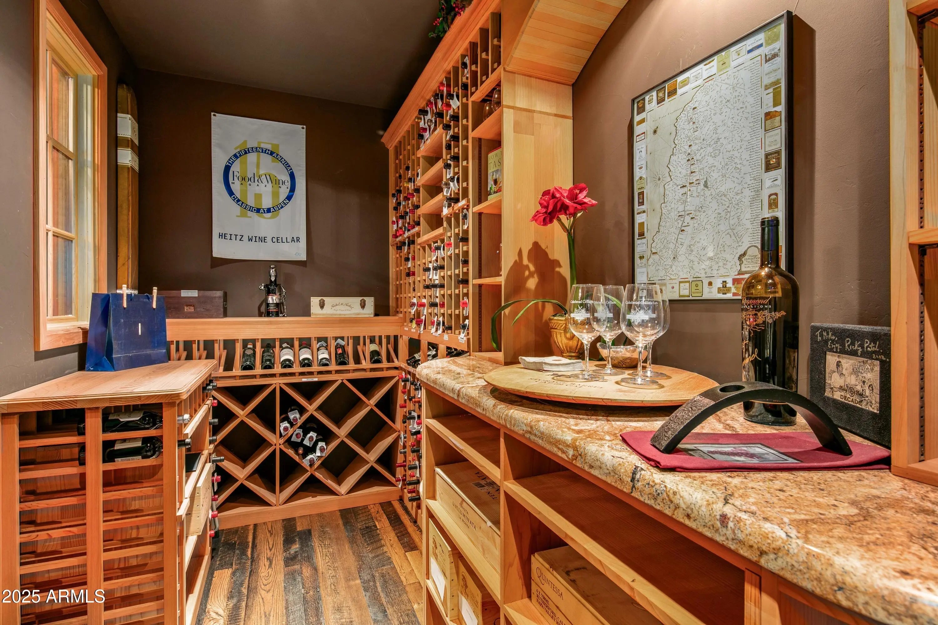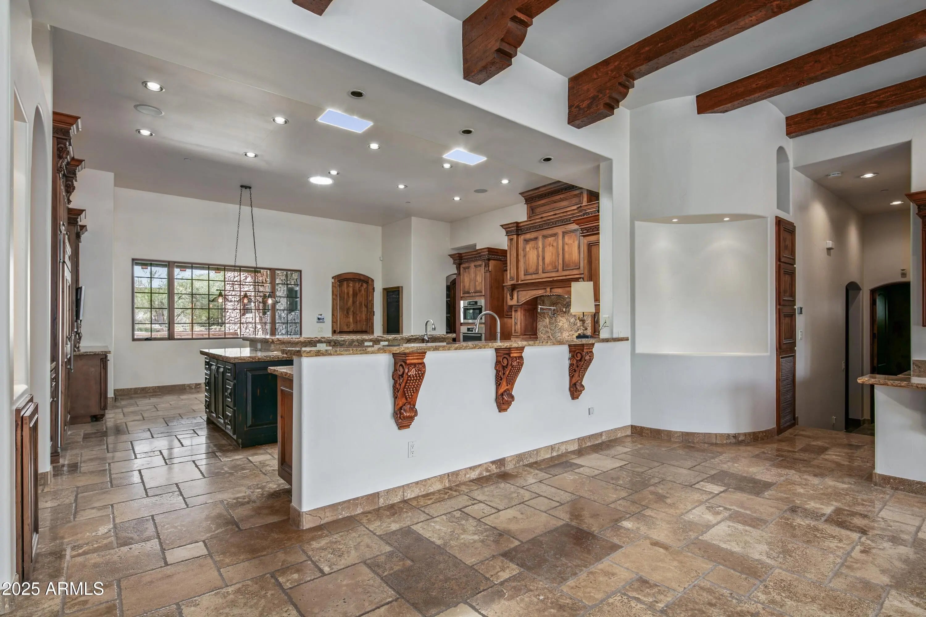 Golf Membership to Desert Mountain- Live like royalty in this majestic Mediterranean estate, ideally positioned within a sought-after, resort-style enclave of North Scottsdale's prestigious Desert Mountain. Designed to elevate everyday living, the home seamlessly blends refined architecture, thoughtful layout, and breathtaking desert surroundings. The resort-inspired outdoor living space is perfectly oriented north-south, allowing sunlight to grace the pool throughout the day. A striking front negative-edge pool with stacked stone wall and scupper water features anchors the setting, complemented by a generous spa, expansive patios for sunning, and intimate spaces for stargazing beside the Kiva fireplace. Covered living and dining areas, along with a built-in grill and ample counter space, create an entertainer's dreamall framed by captivating mountain and desert views. Arrival is equally impressive, with a paver driveway and spacious motor court leading to a prominent arched metal gate and private courtyard. A tranquil babbling brook water feature, lush vegetation, and inviting front patio immediately sets a tone of relaxation and refined desert living. The turreted entry and foyer showcase a stone-tiled dome ceiling, while a graceful corridor with arched stone detailing guides you into an open floor plan of timeless elegance. The expansive great room is both grand and inviting, featuring a statement stone fireplace, beamed ceilings, and walls of windows that draw the outdoors in. The chef's kitchen is exceptional, appointed with custom cabinetry adorned with hand-carved details, a dramatic 12' x 5' island, high-end appliances, casual dining space, and multiple bar seating areas ideal for gathering. An elegant oval formal dining room, illuminated by a chandelier and mountain views, provides a stunning backdrop for memorable occasions. The west wing offers remarkable versatility, with a flex room well-suited for wine tasting, theater, a second office, or den, complemented by a spacious, temperature-controlled wine room. A stylish guest powder room sits conveniently at the end of the corridor. An additional hallway from the great room leads to the impressive primary suite, where a fireplace and direct patio and pool access create a serene private retreat. The spa-like primary bath features dual vanities, a walk-in shower, soaking tub, and two expansive designer closets with custom built-ins. A richly appointed office with extensive custom cabinetry completes this wing, offering convenient access to both the powder room and flex space. The east side of the home delivers an ideal split floor plan, hosting two beautifully appointed guest ensuite bedrooms, one with direct patio access, ensuring comfort and privacy for guests and family alike. Architectural integrity shines throughout, with stone and stucco exterior finishes, tiled and flat rooflines, wood windows, and arched doorways. The interiors reflect the use of organic, luxurious materials including stone and wood plank flooring, granite and stone countertops, artisanal metal fixtures, and dramatic chandeliers. Located just minutes from Desert Mountain's front gate, the property offers effortless access to Scottsdale's premier shopping, dining, and the convenience of Phoenix Sky Harbor Airport. Desert Mountain membership unlocks an unparalleled lifestyle with access to seven world-class golf courses, seven luxury clubhouses, the renowned Sonoran Fitness Center & Spa, and The Ranch, featuring 24 miles of scenic hiking trails along the Tonto National Forest. An impressive desert estate where elegance, comfort, and lifestyle convergethis is refined Arizona living at its finest, to be enjoyed year-round.