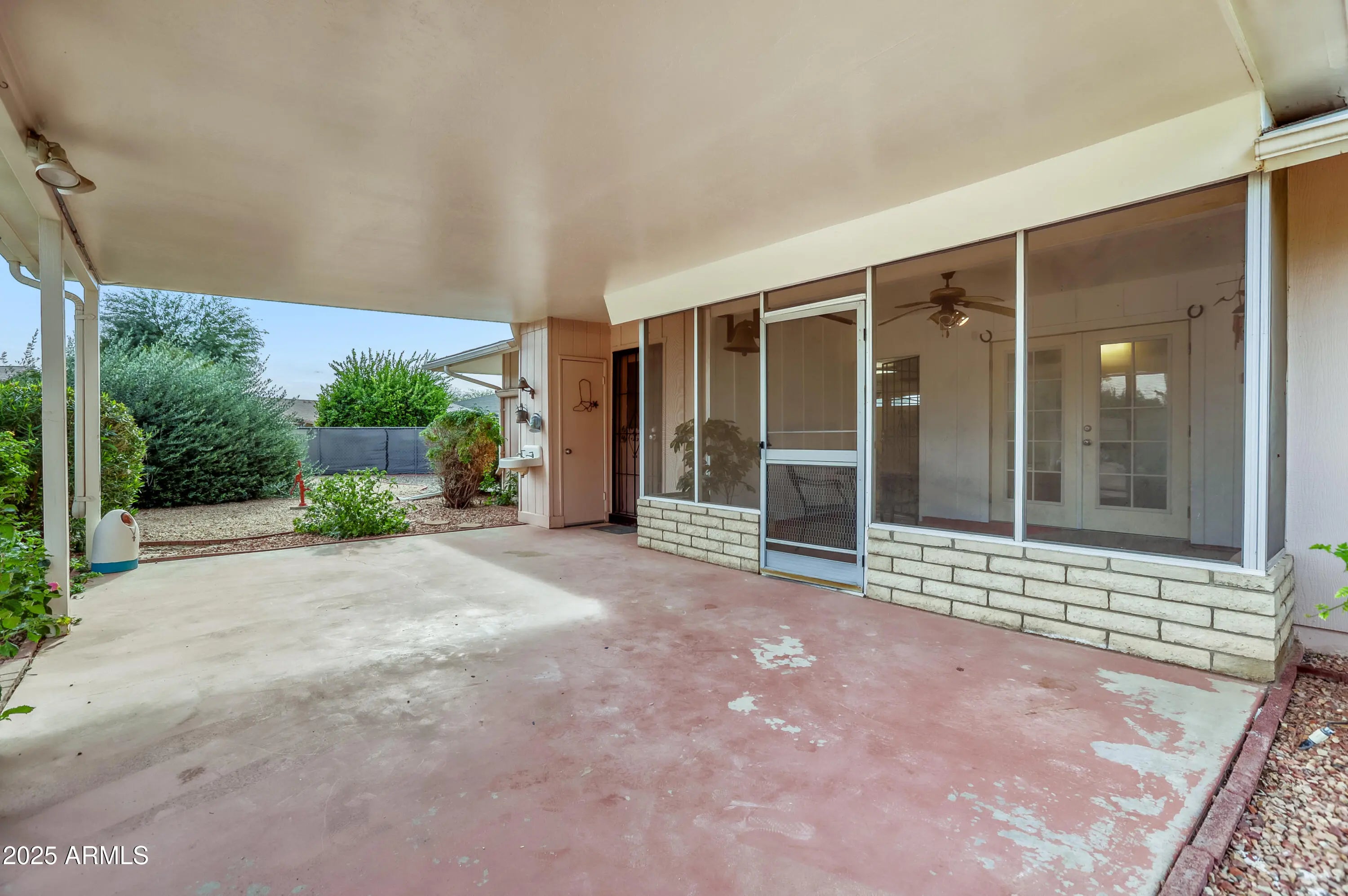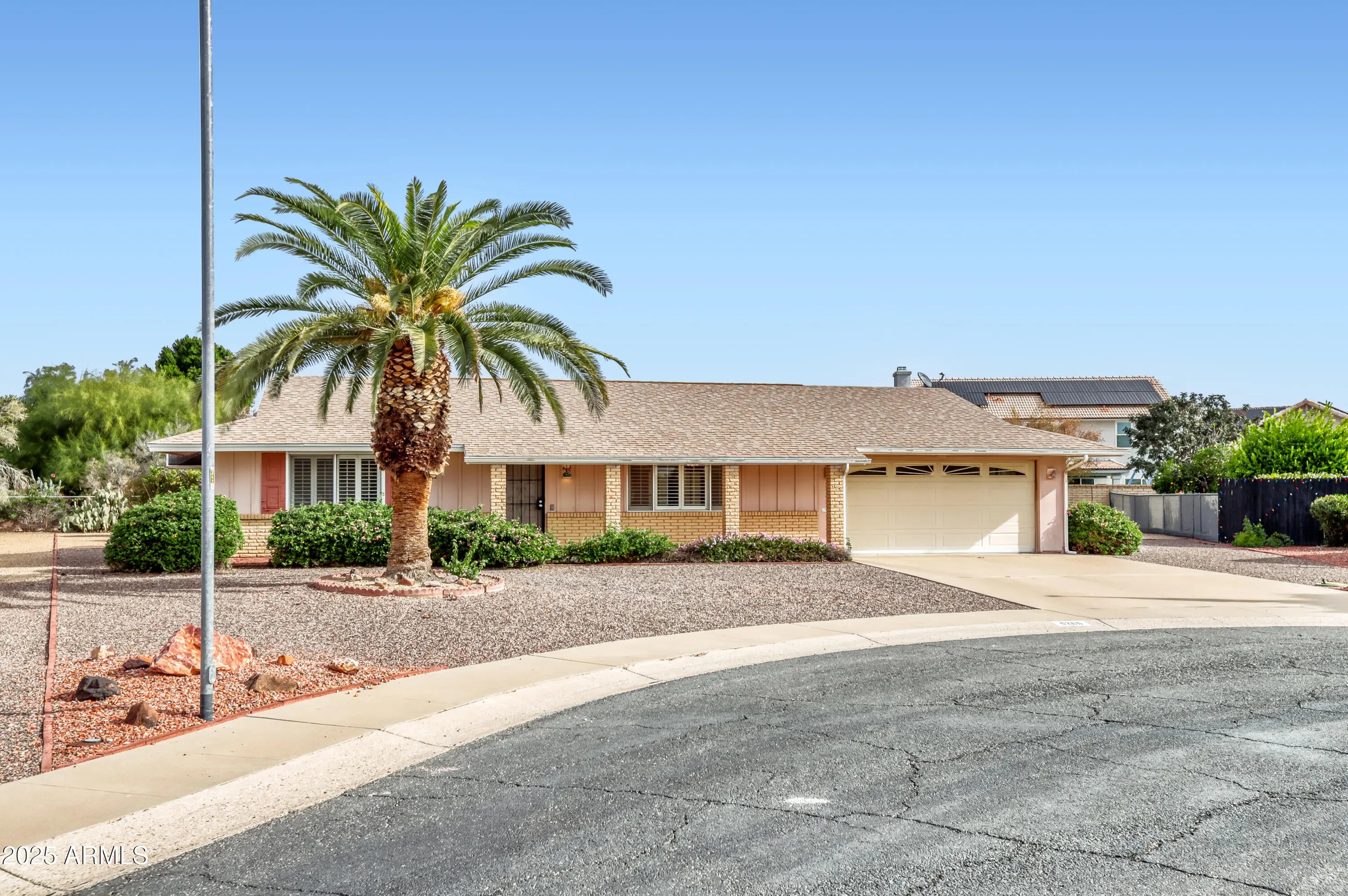 Welcome to this charming 2-bedroom, 2-bath home in Sun City, Arizona, ideally located on a quiet cul-de-sac and set on an exceptionally large lot—a rare combination in this highly desirable 55+ active adult community. This well-maintained residence offers privacy, comfort, and lifestyle, making it ideal for full-time living or a seasonal Arizona retreat. Inside, the home features a freshly painted interior and newer laminate wood flooring, creating a bright and inviting atmosphere throughout. A cozy enclosed patio provides the perfect space to enjoy your morning coffee or relax year-round. Step outside to an additional exterior patio, extending your living space and offering the ideal setting for entertaining, outdoor dining, or soaking up Arizona's sunshine. The expansive lot presents endless opportunities to design your own private outdoor oasis. Additional highlights include a two-car garage, providing ample parking and storage, and the peace of mind that comes with cul-de-sac living, offering reduced traffic and a quieter setting. Living in Sun City means enjoying an unmatched lifestyle with access to multiple recreation centers, championship golf courses, fitness facilities, swimming pools, walking trails, and a wide variety of clubs and social activities. Known for its welcoming atmosphere and active lifestyle, Sun City also offers convenient access to shopping, dining, and healthcare.
