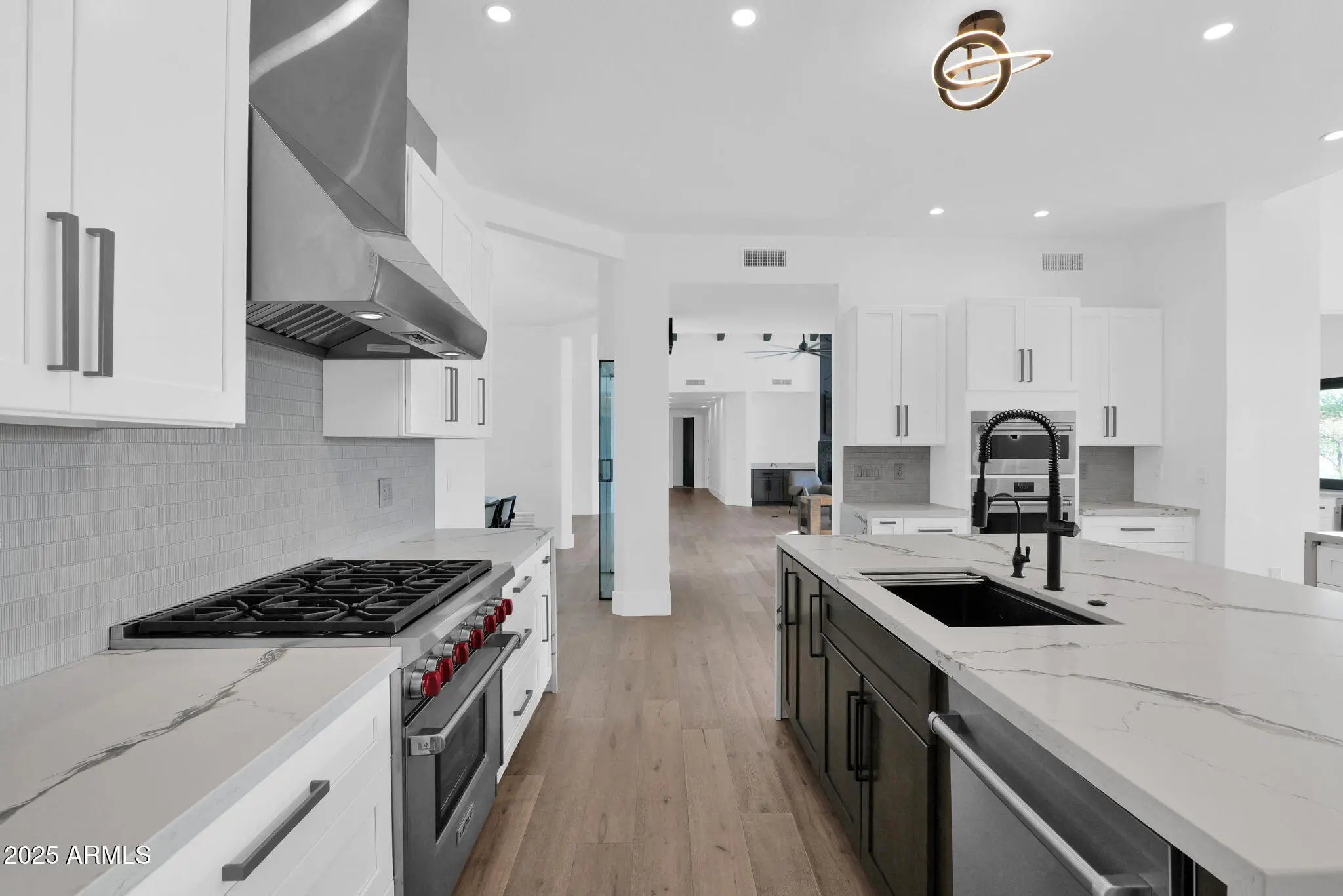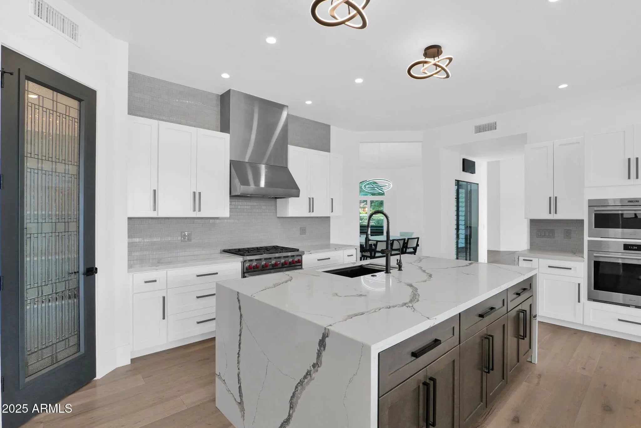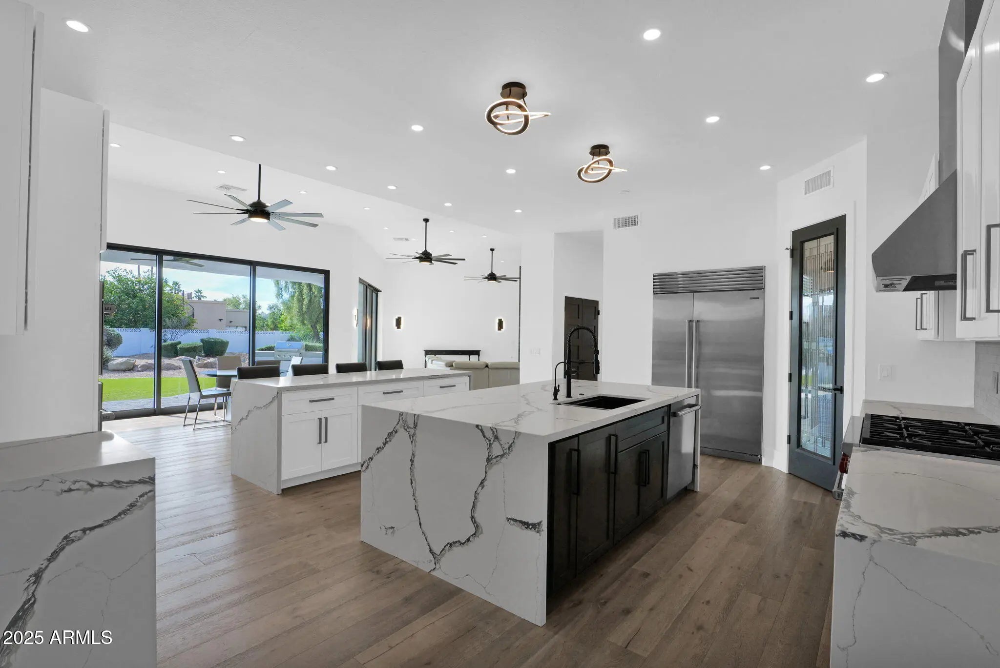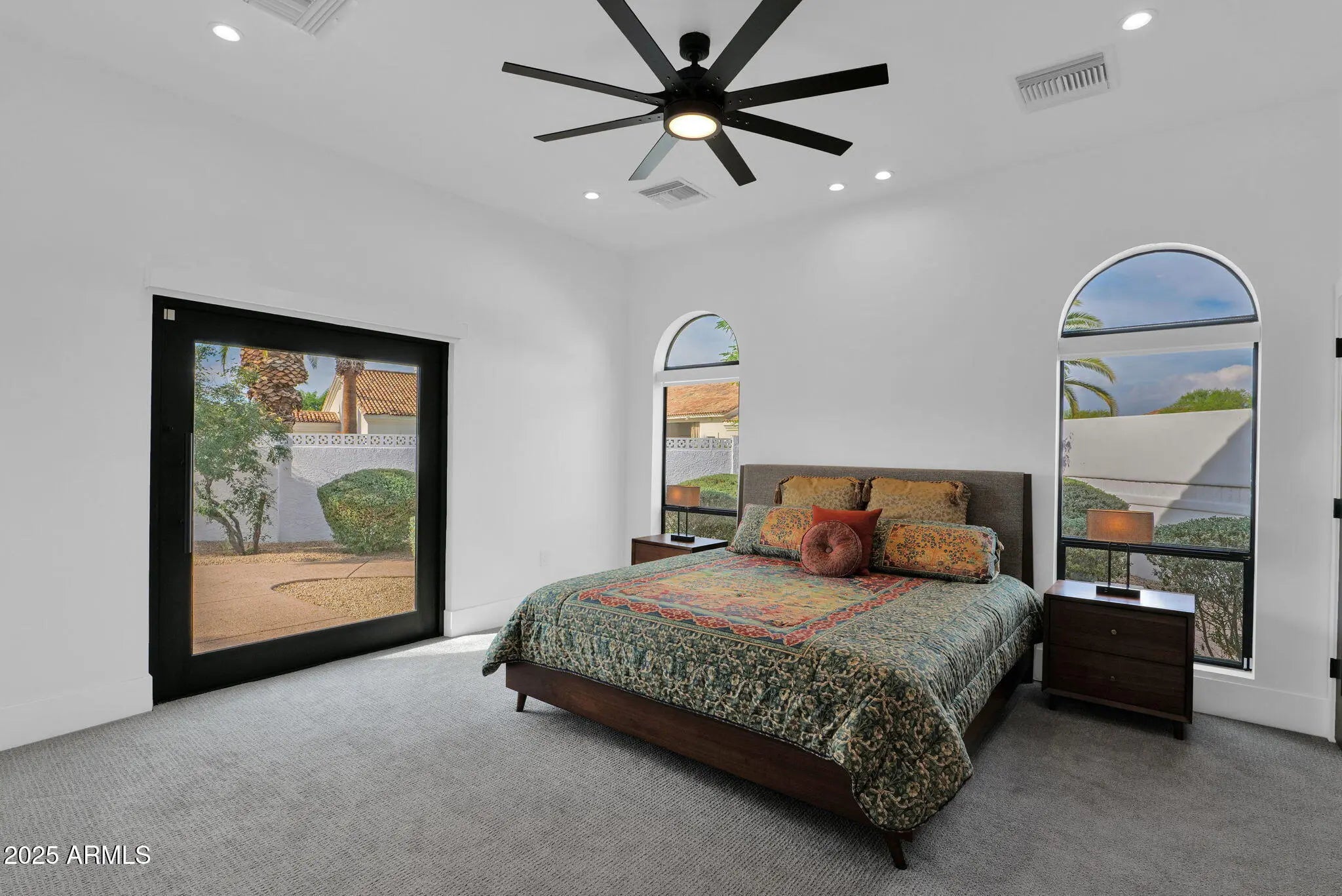 Experience elevated luxury living on nearly an acre with no HOA. This 5,822 sq ft Spanish contemporary masterpiece has been reimagined with timeless finishes, warmth, and modern livability. Real wood plank floors, vaulted beam ceilings, and commercial style windows and doors bring natural light and the outdoors in. The chef's kitchen flows into a custom wine wall and butler bar perfect for gatherings and entertaining. The primary suite features a hidden private exercise room, spa-style bath, and massive closets. Step outside to a south facing resort-inspired oasis with an expansive covered patio, sparkling pool & spa, water features, and inviting spaces to dine, lounge, and enjoy beautiful Arizona evenings. Newer roof, newer AC's meaning this is truly a move in ready home.
