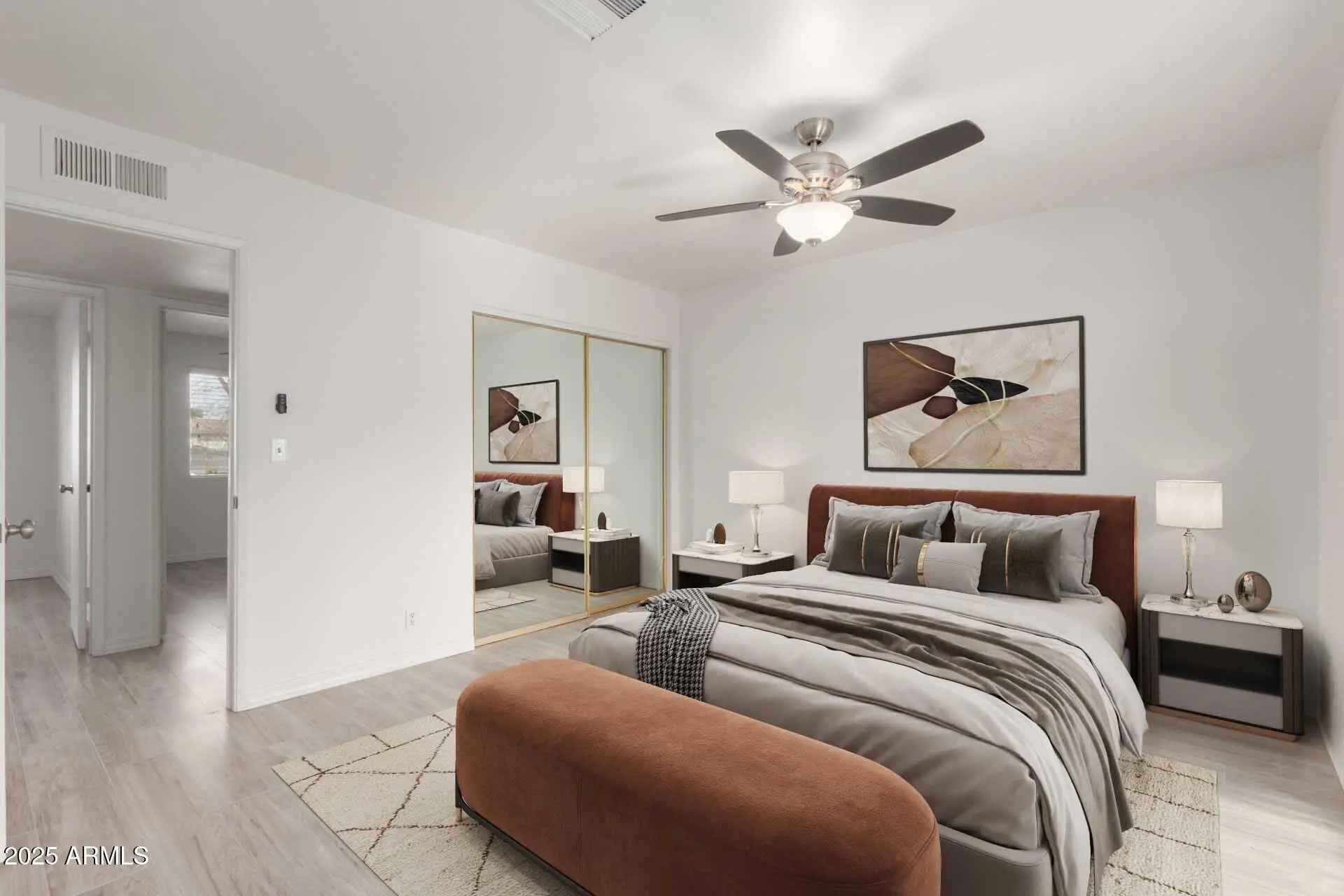 Discover all the charm of this adorable NO HOA 3 bed/2 bath/2 car garage home situated on a prime corner lot! Inside, you'll find comfortable and bright living areas with wood-look flooring, abundant natural light, and new neutral paint that compliments all your decor. Whip up your signature dishes in the pristine kitchen, equipped with pendant lighting, ample cabinetry and counter space, as well as essential appliances. The multi purpose bonus room off the primary bedroom can be used as an office, nursery, gym + more! Get a good night's rest in the main suite, complete with a bathroom & a closet with mirrored doors. Sip your morning coffee and enjoy weekend grills in the backyard, complete with a cozy covered patio and an easy-care landscape.