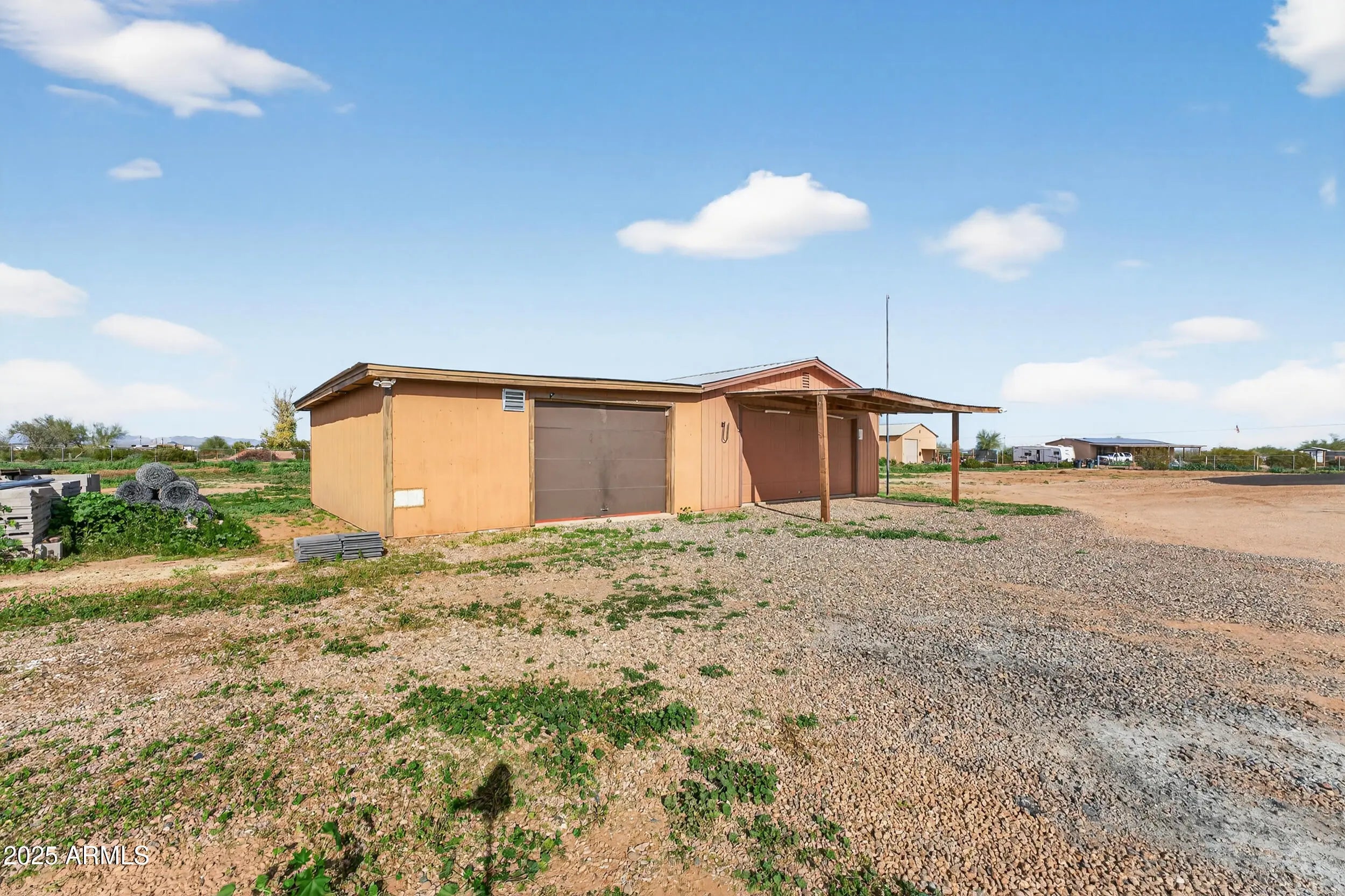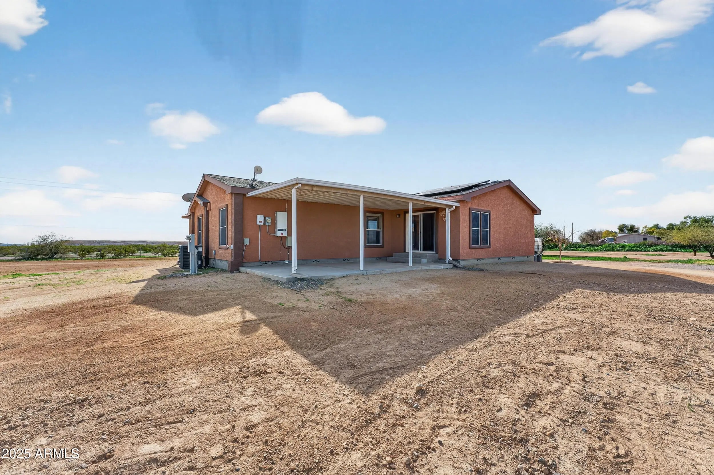 This home sits on nearly 4 acres, offering ample space for horses, toys, and endless possibilities. The 4-bedroom split floor plan provides generous living space throughout. Two garages totaling 576 sq ft offer room for up to four vehicles, or one can easily be used as a workshop or guest space and includes a mini-split A/C unit. An automatic gated entrance with opener adds privacy and convenience. The property features leased solar to help reduce electric bills. Enjoy a quiet, private setting with easy access back to town. No HOA. Large parcels like this are rare—don't miss this opportunity!