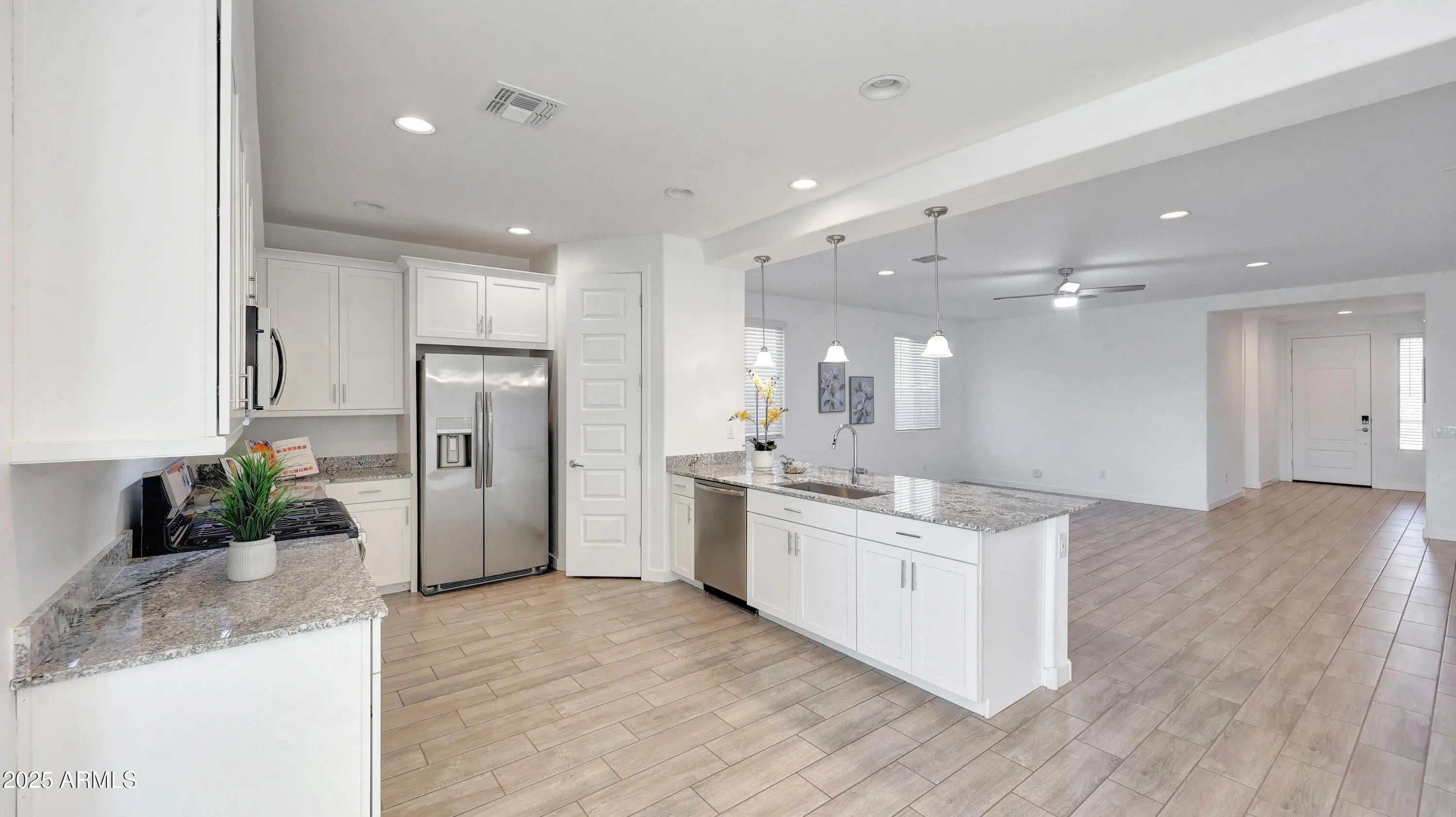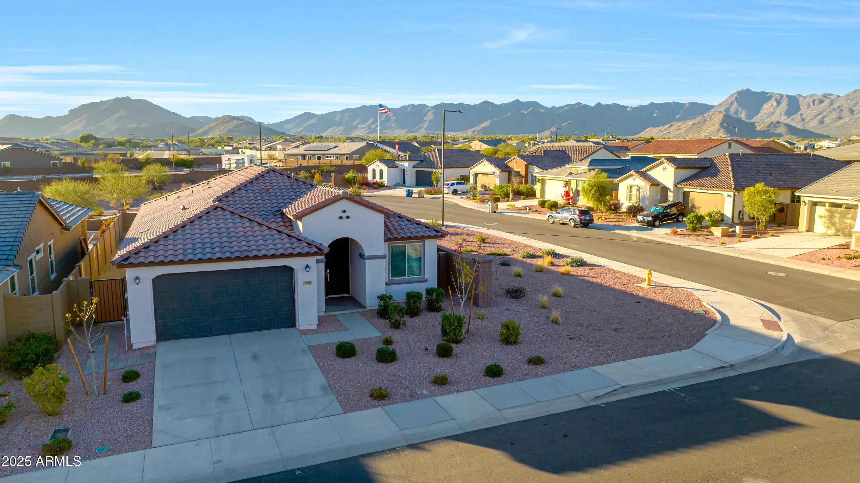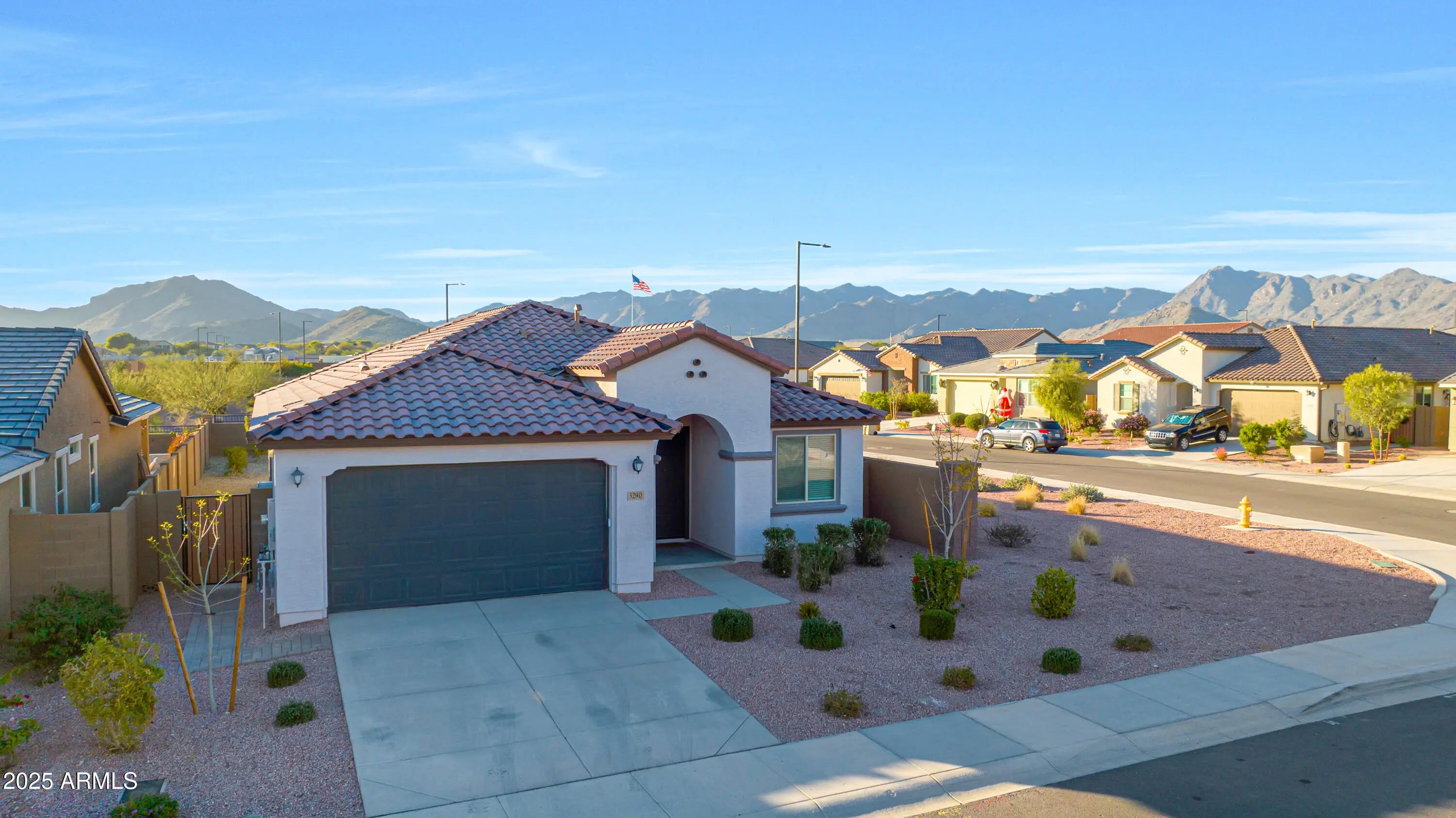 Gorgeous highly upgraded split floor plan in desirable Arroyo Seco North. 4 Bedrooms, 3 Baths plus 2 Car E-poxy Garage with Electric Vehicle Charging Station. Beautiful upgraded 42'' Kitchen Cabinets with Granite Countertops, all Stainless Steel Appliances including Gas Stove, Breakfast Bar, Pendant Lighting and large walk-in Pantry. Spacious Great Room with Speakers pre-wire and Ceiling Fans throughout the home. Master Suite with split his / hers Vanity, private Toilet Room and double size walk-in Shower. Cozy Dinette with walk-out to a private / covered Patio with Desert Landscaping with Citrus Trees and Mountain Views at Cul-De-Sac. Conveniently located, close to Verrado High School, Shopping, Restaurants, Freeways and much more.*Perfect Home* Professionally Cleaned*Ready for new owner