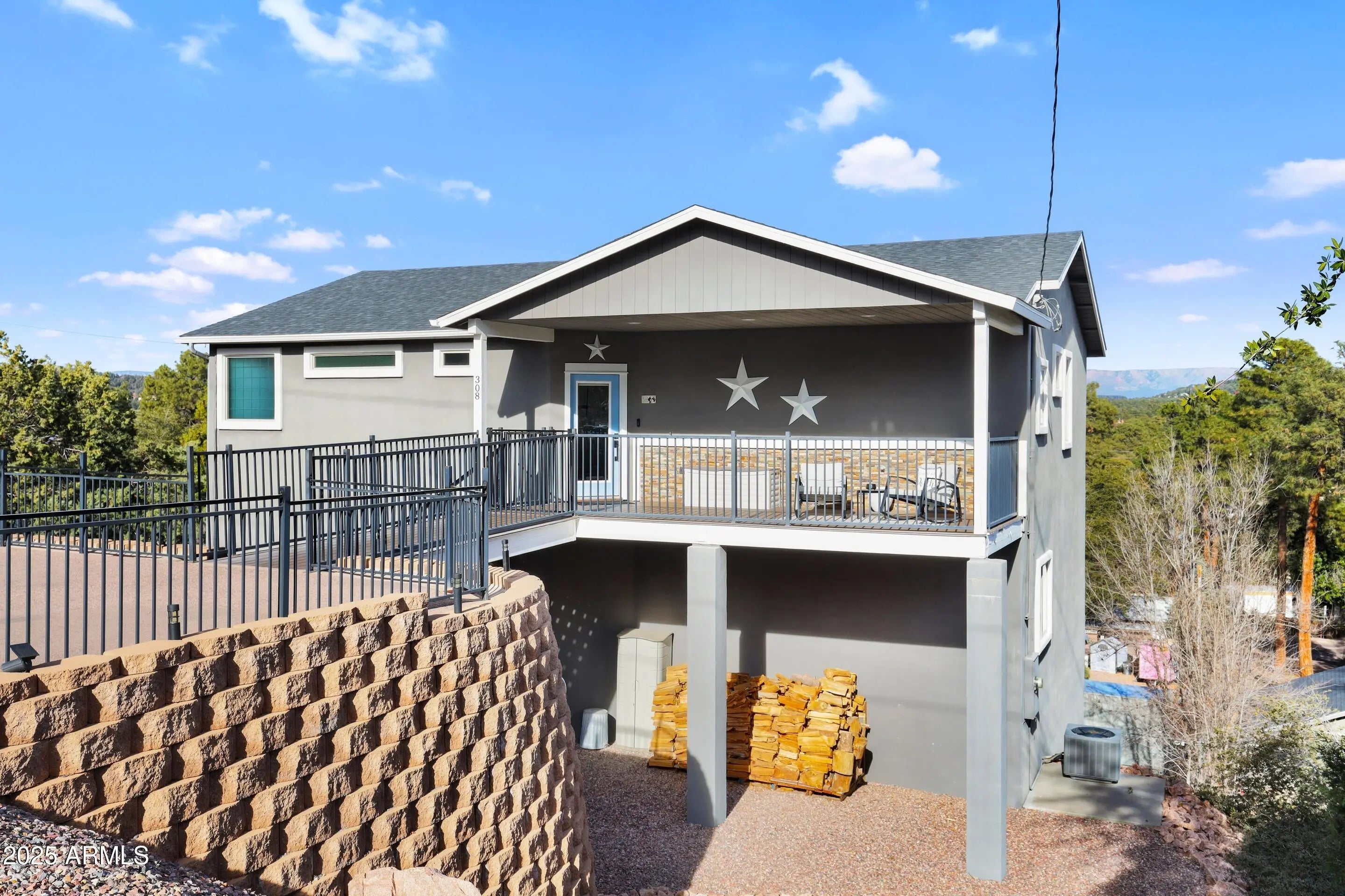 Enjoy stunning 180 degree views of the Mogollon Rim, the town of Payson and more from this well maintained 2938 square foot home with three levels of living space. Designed to capture the views, this home offers large covered decks on multiple levels for outdoor living and entertaining. The main level features the kitchen, a spacious great room with natural light, guest bathroom, and a large primary bedroom with ensuite bath. Newer flooring on the main living level and stairway adds a fresh feel. Step out onto the covered deck to enjoy sweeping panoramic views. The lower level includes three bedrooms, each connected to a bathroom, plus a generous family room with access to another covered deck with incredible Mogollon Rim and Payson views. Below the home is a very large unfinished basement that provides excellent space for a workshop and or storage. A newer roof, exceptional cleanliness, and pride of ownership throughout make this home truly move in ready. Centrally located in Payson, this property offers convenient access to Payson High School and Rim Country Middle School while still delivering some of the most impressive views in town.