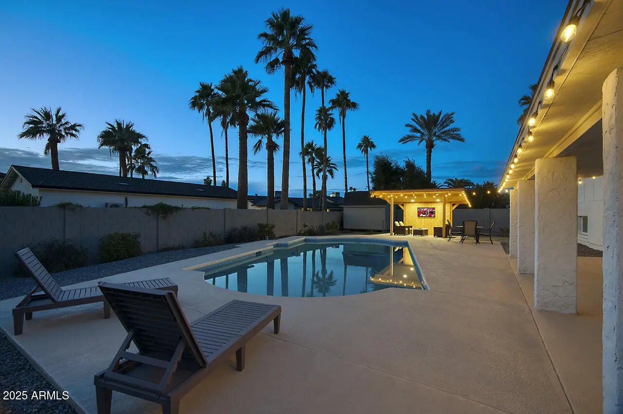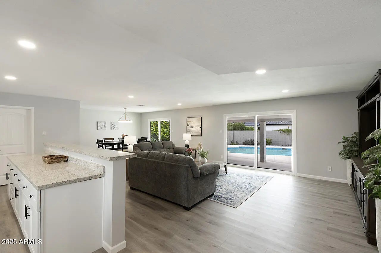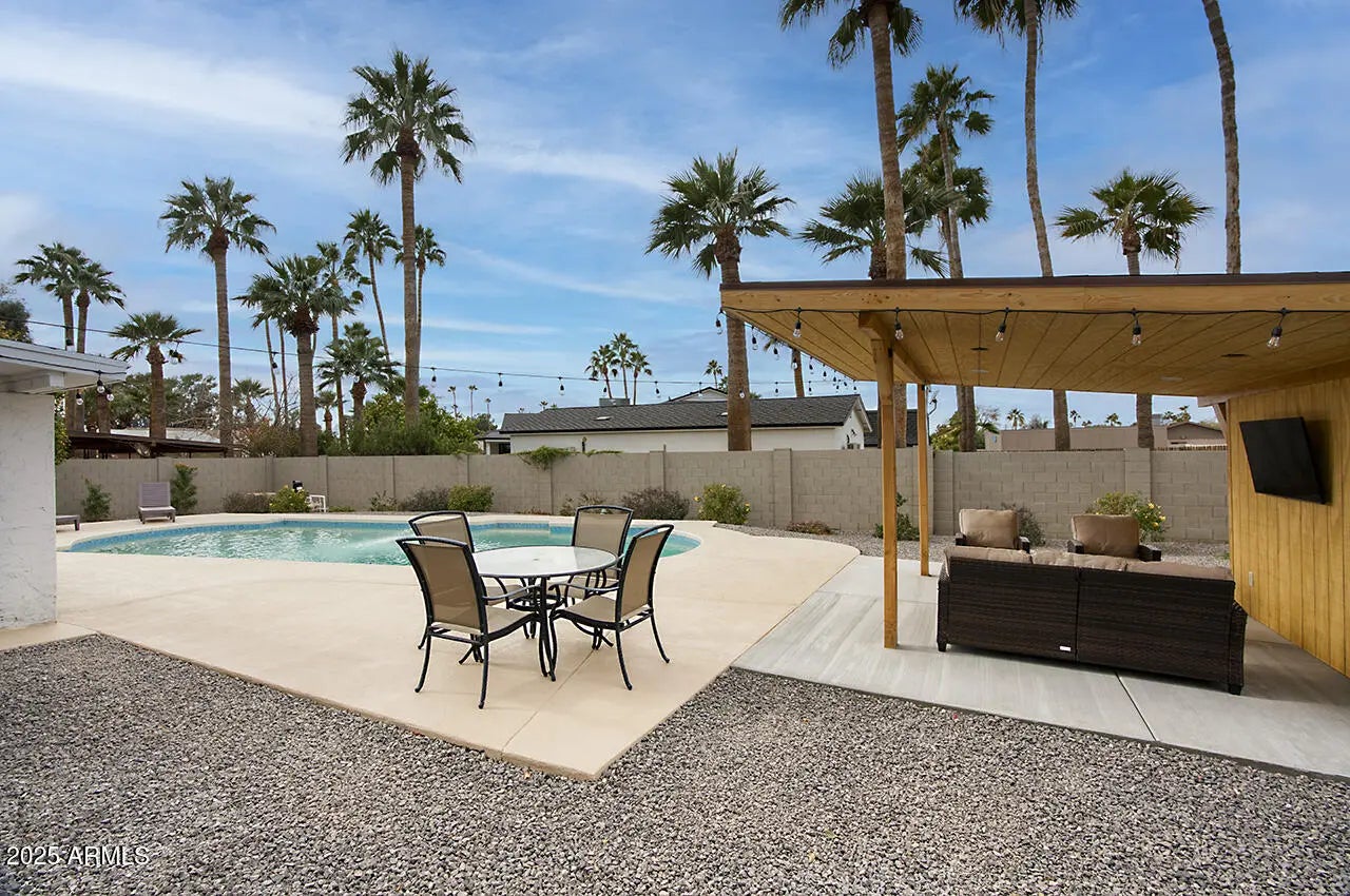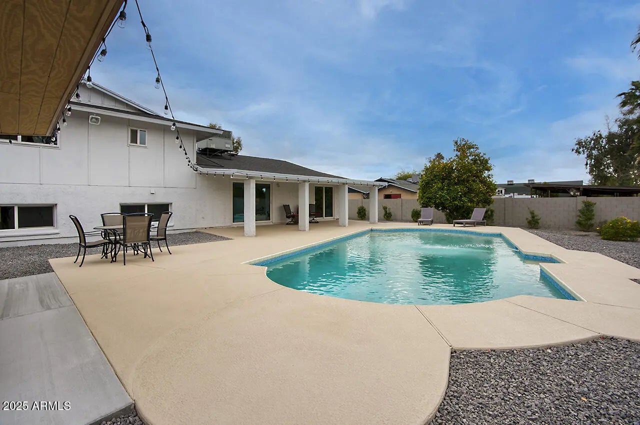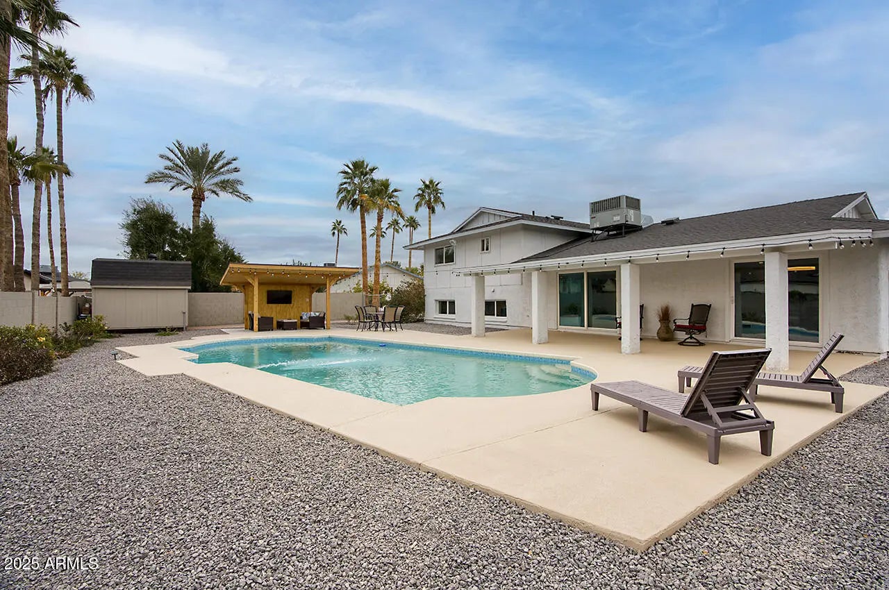 WELCOME TO YOUR DREAM HOME, a stunningly remodeled sanctuary that's truly move-in ready! This residence boasts contemporary styling with exceptional quality and meticulous attention to detail throughout, creating an inviting atmosphere from the moment you step inside. As you enter, you're greeted by an expansive open floor plan that seamlessly connects the gourmet kitchen and the spacious great room. The kitchen dazzles with beautiful white shaker cabinets—crafted entirely from solid wood—equipped with soft-close doors that speak to the quality of workmanship. Gorgeous granite countertops provide both functionality and elegance, while upgraded GE slate appliances add a modern touch. Venturing to the upper level, you'll discover a spacious Master Suite, designed as a peaceful retreat. The luxurious master bath features dual sinks and a spectacular shower experience, complete with rainfall and handheld optionsperfect for unwinding after a long day. Two additional well-appointed bedrooms and a stylish main bath offer ample space for family or guests. The lower level presents a unique opportunity for privacy, featuring a separate bedroom and bath, ideal for extended family or guests. Adding to the charm is a retro game room equipped with a wet bar, perfect for entertaining or casual family gatherings, along with two extra closets to ensure plenty of storage. Step outside, and you'll find a beautiful backyard oasis. Dive into the sparkling pool, relax under the gazebo, or rinse off in the convenient outdoor shower. The expansive patio and ample deck space invite you to host summer BBQs and gatherings with friends, all surrounded by thriving flowering plants and a mature lemon tree that adds a touch of nature's bounty. Situated on a generous .32 acre lot in a prime Kierland/Scottsdale Quarter location, this home offers both space and convenience. Don't miss your chance to experience this remarkable property!