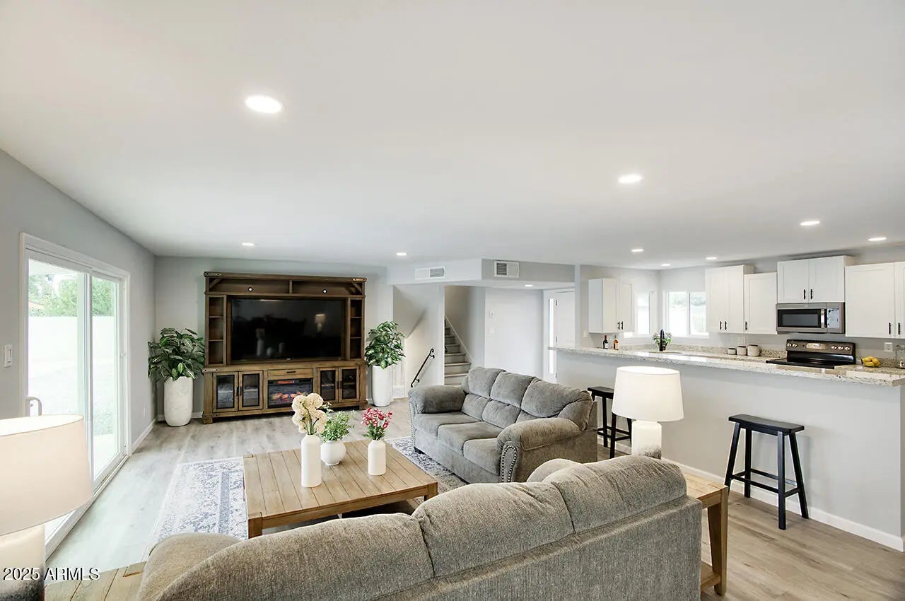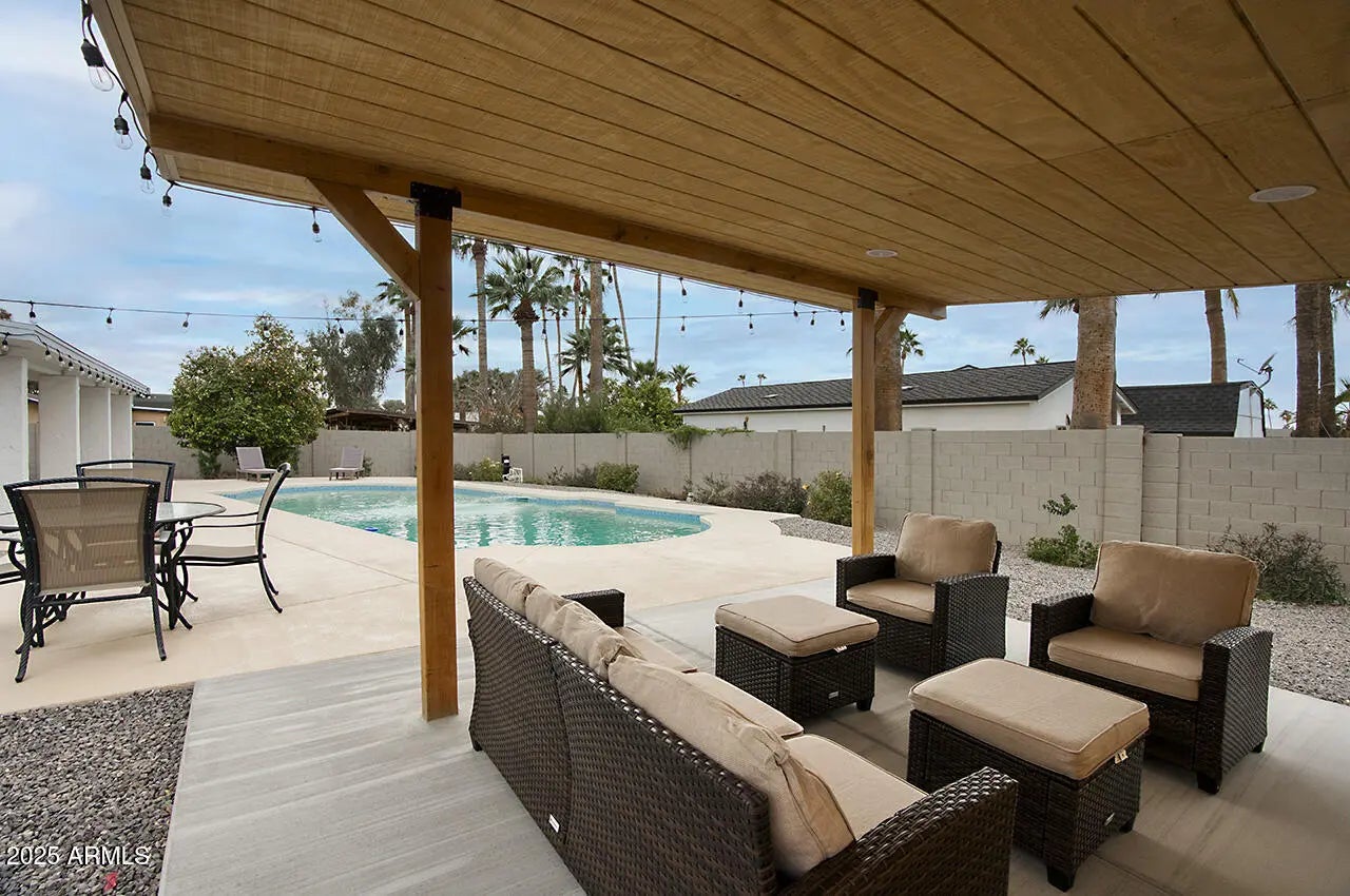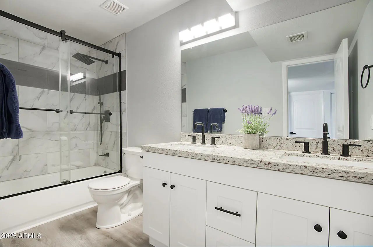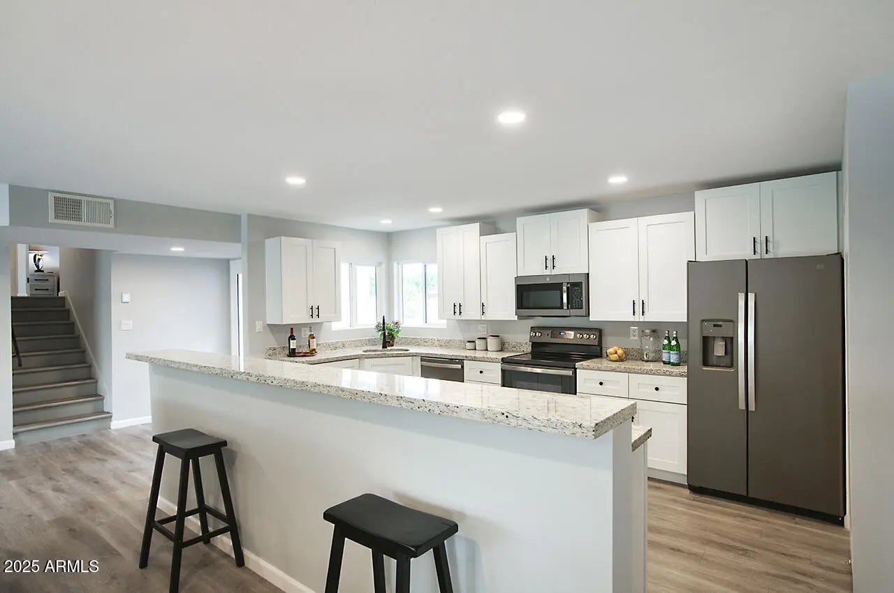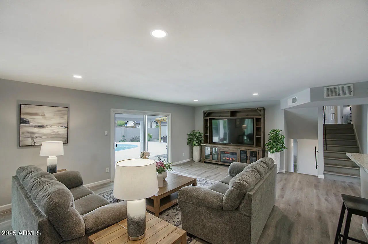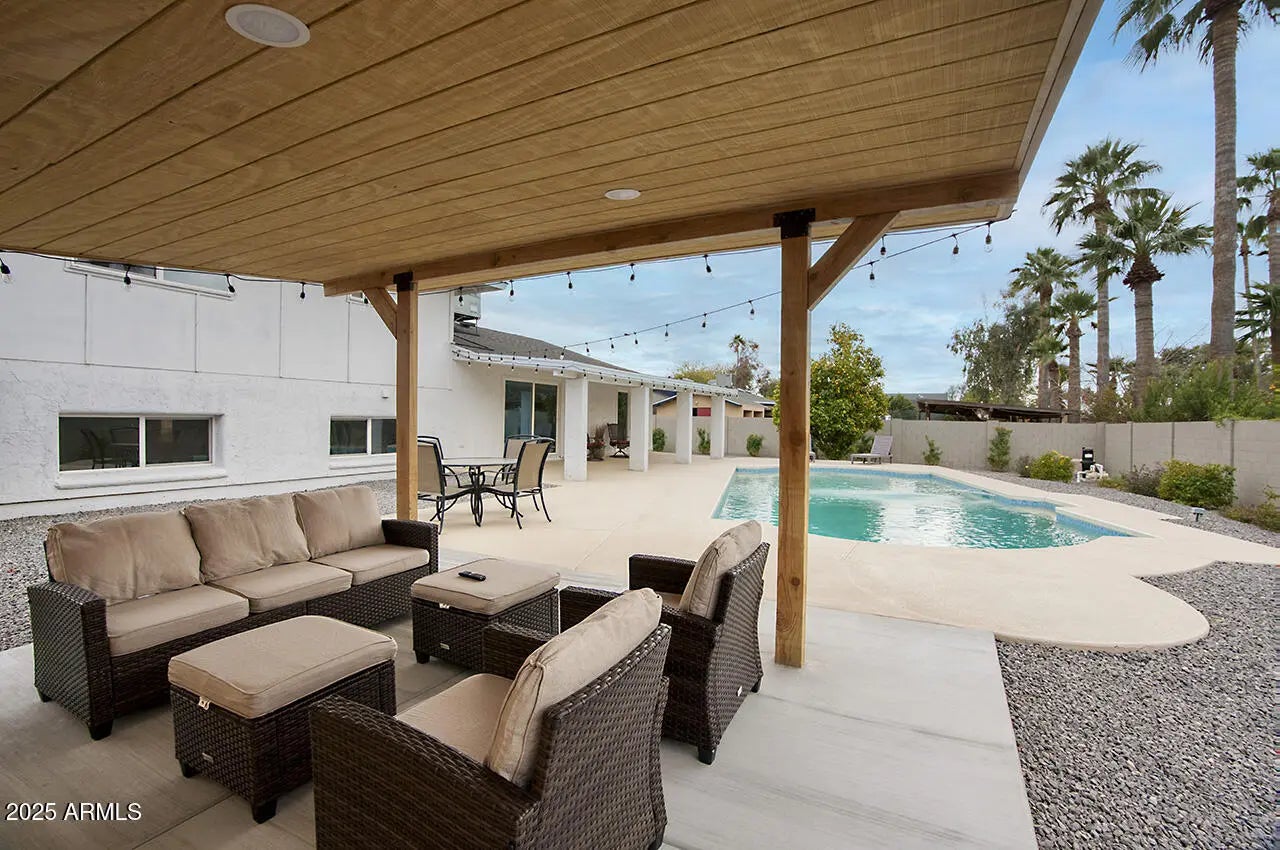 WELCOME TO YOUR DREAM HOME, a stunningly remodeled sanctuary that's truly move-in ready! This residence boasts contemporary styling with exceptional quality and meticulous attention to detail throughout, creating an inviting atmosphere from the moment you step inside. As you enter, you're greeted by an expansive open floor plan that seamlessly connects the gourmet kitchen and the spacious great room. The kitchen dazzles with beautiful white shaker cabinets—crafted entirely from solid wood—equipped with soft-close doors that speak to the quality of workmanship. Gorgeous granite countertops provide both functionality and elegance, while upgraded GE slate appliances add a modern touch. Venturing to the upper level, you'll discover a spacious Master Suite, designed as a peaceful retreat. The luxurious master bath features dual sinks and a spectacular shower experience, complete with rainfall and handheld optionsperfect for unwinding after a long day. Two additional well-appointed bedrooms and a stylish main bath offer ample space for family or guests. The lower level presents a unique opportunity for privacy, featuring a separate bedroom and bath, ideal for extended family or guests. Adding to the charm is a retro game room equipped with a wet bar, perfect for entertaining or casual family gatherings, along with two extra closets to ensure plenty of storage. Step outside, and you'll find a beautiful backyard oasis. Dive into the sparkling pool, relax under the gazebo, or rinse off in the convenient outdoor shower. The expansive patio and ample deck space invite you to host summer BBQs and gatherings with friends, all surrounded by thriving flowering plants and a mature lemon tree that adds a touch of nature's bounty. Situated on a generous .32 acre lot in a prime Kierland/Scottsdale Quarter location, this home offers both space and convenience. Don't miss your chance to experience this remarkable property!