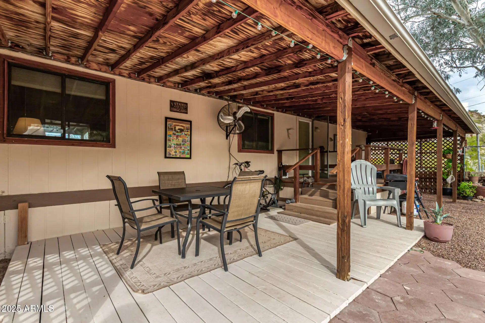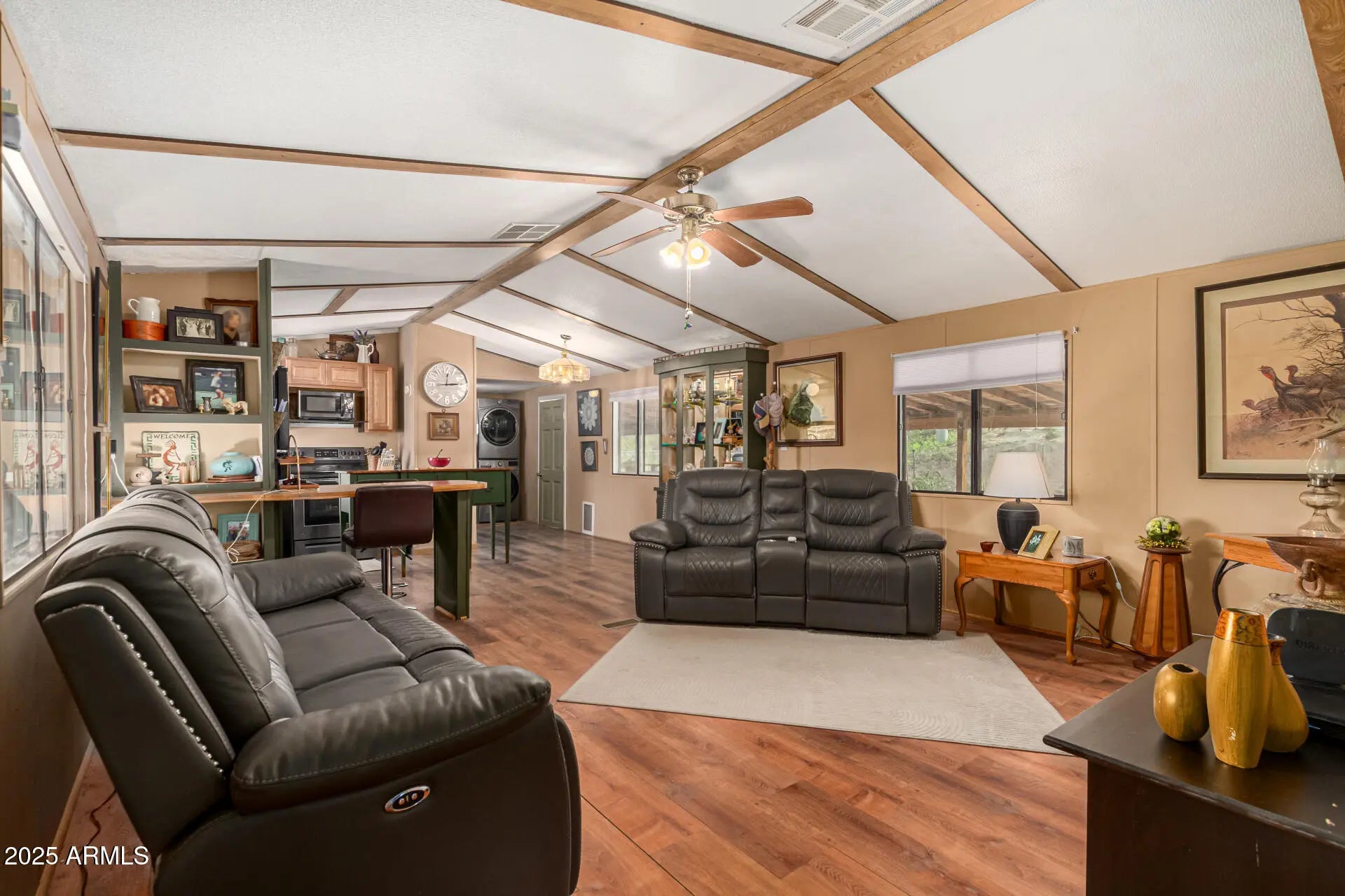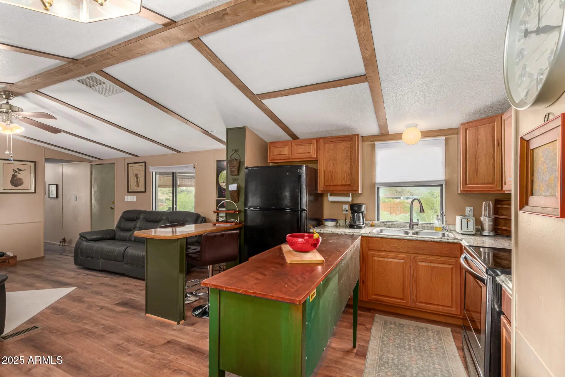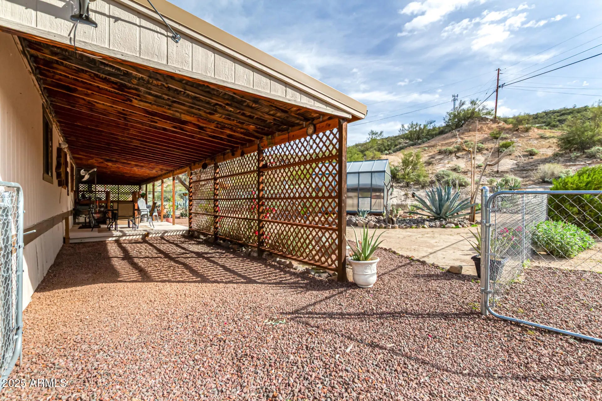 Welcome home to this oversized 1.2-acre horse property that's full of warmth and possibilities! This 3-bedroom home offers an enclosed patio that invites you in, while the interior shines with wood-look floors, vaulted ceilings and a cozy living room perfect for everyday comfort. The kitchen is ready for for home cooked meals -matching appliances, wood cabinetry, ample counter space, and a convenient breakfast bar. Retreat to the main bedroom featuring a private bathroom and restful vibes. Outside, relax under the covered patio or explore the spacious backyard complete with a Sproutwell walk-in polycarbonate greenhouse, a handy shed, desert landscaping, and plenty of room to bring your creative ideas to life.