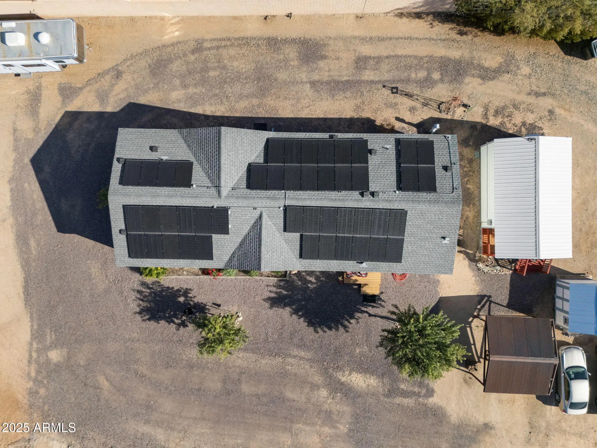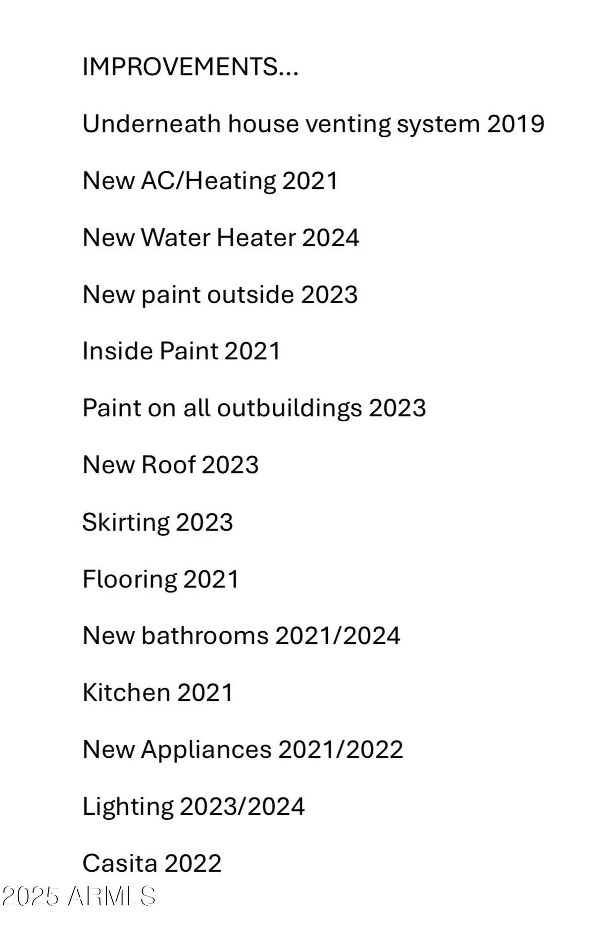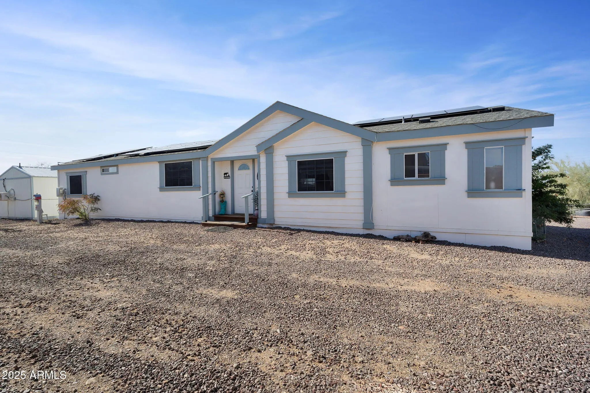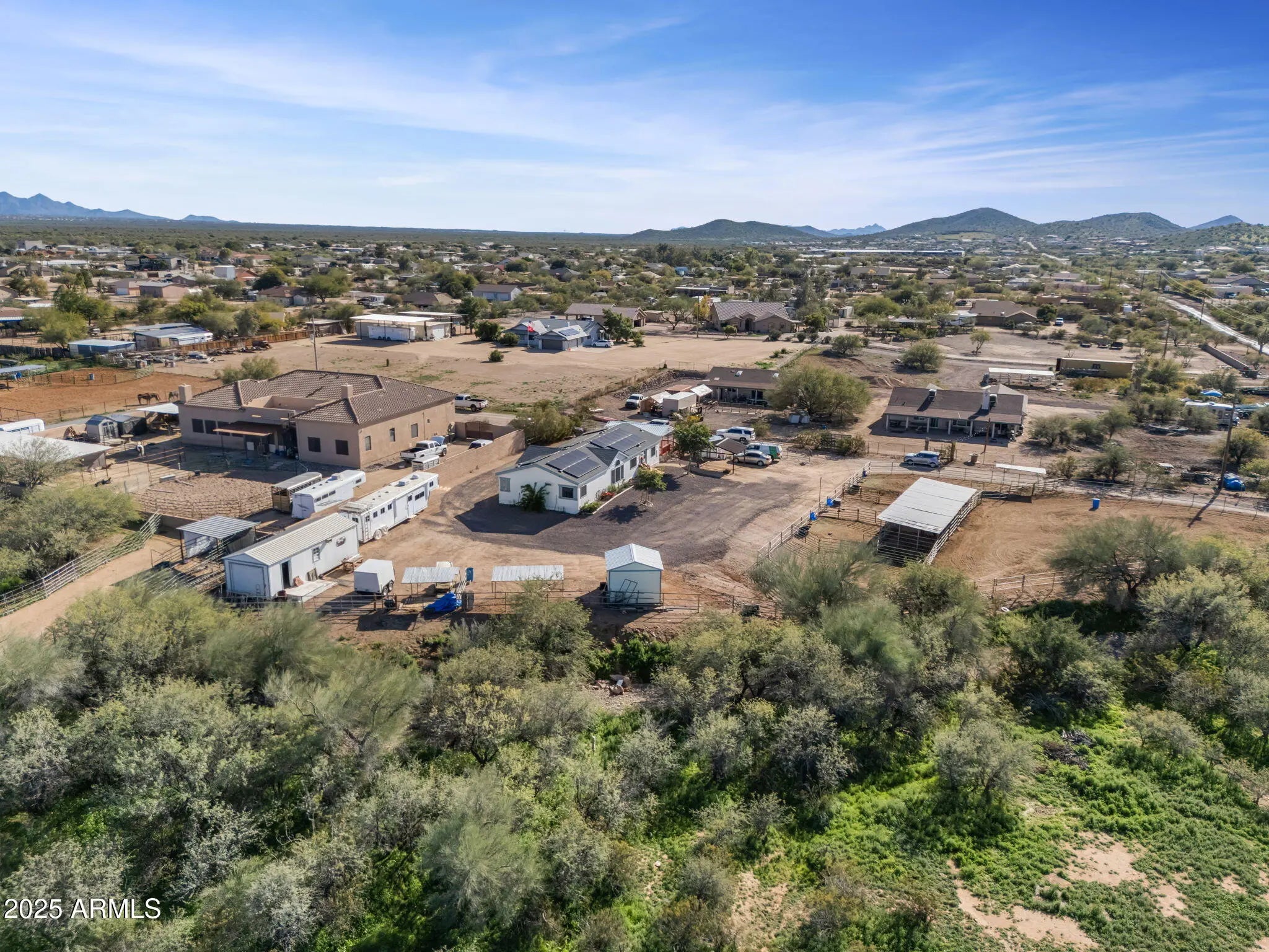 This charming, newly updated 3-bedroom plus bonus room, 2-bath manufactured home sits on a spacious 2.5-acre lot, offering plenty of opportunity for expansion and has the perfect blend of comfort, functionality, and country living. Inside, you'll find stylish finishes and a bright, open floor plan. The spacious kitchen features modern updates and flows seamlessly into the living and dining areas—great for everyday living or entertaining. Modern finishes, a bright open layout, and recent upgrades make this home move-in ready. The separate 1-bedroom, 1-bath (336sqft) guest casita provides great flexibility—it's ideal for out-of-town visitors or could serve as an income-producing rental. Designed with horse lovers in mind, this property offers three oversized covered stalls with huge turnouts and a small arena, all of which could easily be reconfigured to suit any horse need or scenario. Also included is a tack room and spacious shop set on sleds for easy repositioning. A freshly graveled pull-through drive ensures smooth trailer access and easy in-and-out convenience. And a huge bonus.... This property is located about a half a mile away from 3,130 acres of state trust land for riding, hiking and biking. Just one 1 mile off of Carefree Highway on a frequently maintained and oiled road this property is 50 min from Wickenburg, 20 min from dynamite arena and 30 min from West World. With the conveniences of shopping, restaurants, and schools nearby you can still enjoy the wide-open spaces, mountain views, and all the practical amenities you need for horses, hobbies, or home-based workthis property is a rare find with endless possibilities. Shop, tack room, and garden shed all convey. Horse panels not afixed do not convey. IMPROVEMENTS... Underneath house venting system 2019 New AC/Heating 2021 New Water Heater 2024 New paint outside 2023 Inside Paint 2021 Paint on all outbuildings 2023 New Roof 2023 Skirting 2023 Flooring 2021 New bathrooms 2021/2024 Kitchen 2021 New Appliances 2021/2022 Lighting 2023/2024 Casita 2022
