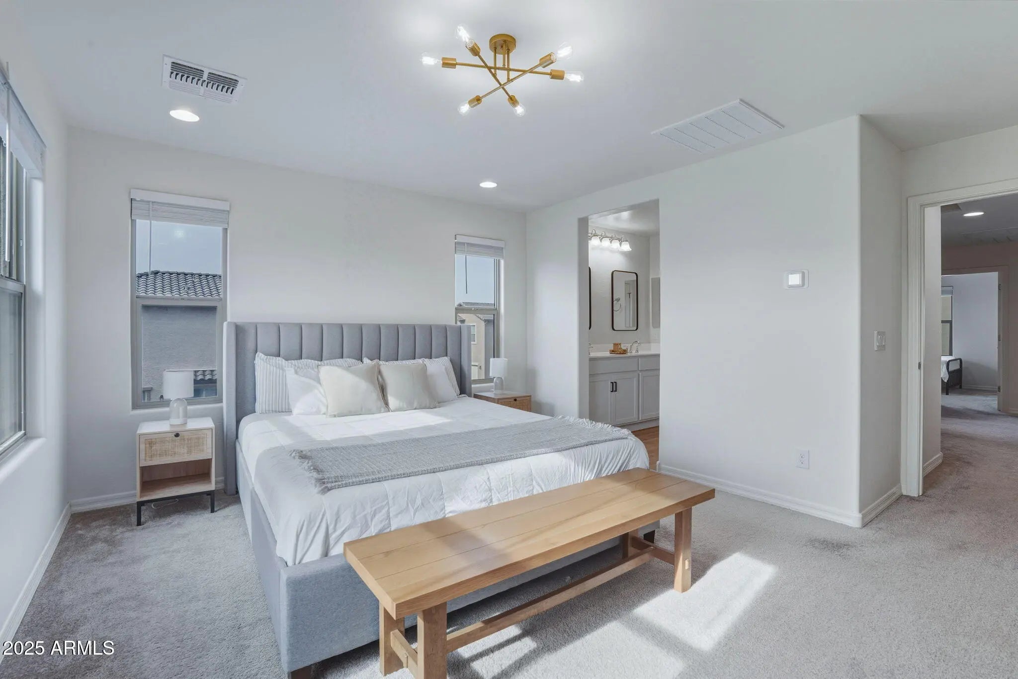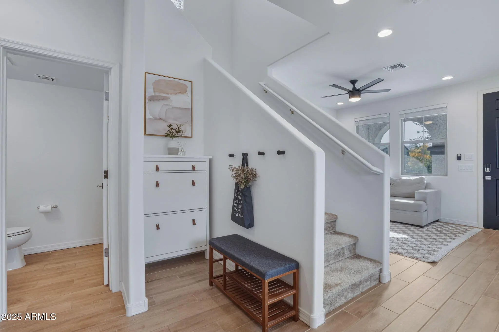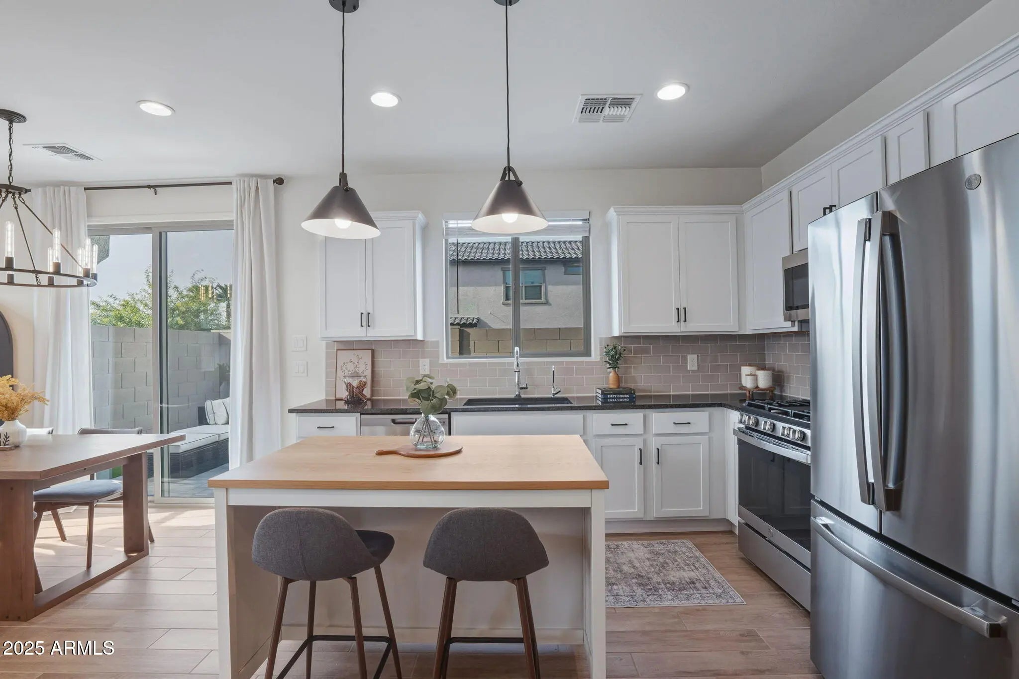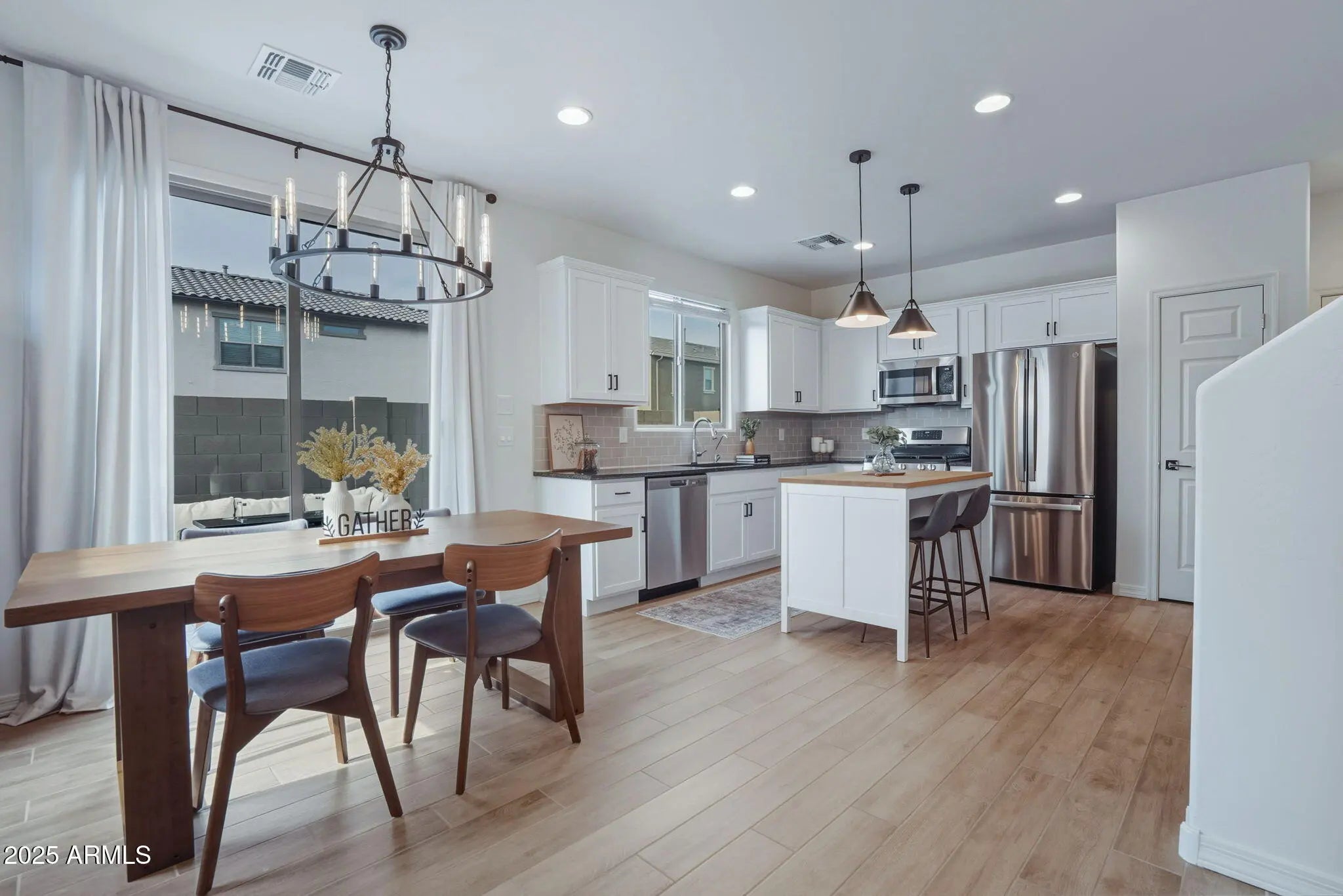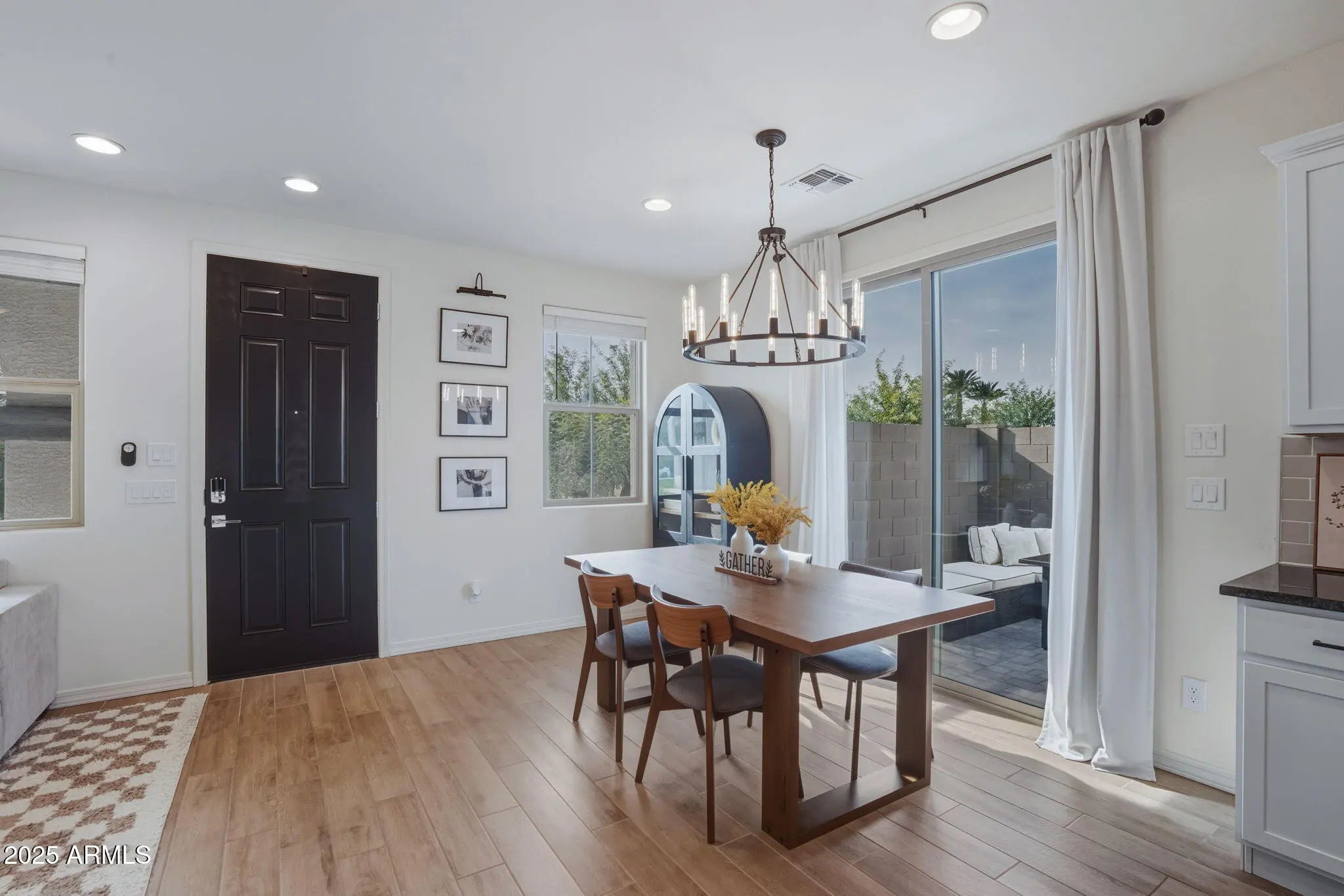 Discover this model-perfect modern home built in 2022, a stunning 3-bedroom, 2.5 bathroom single-family home for sale in East Valley AZ, spanning 1,463 sq ft with designer touches and premium upgrades throughout. Ideal for buyers searching for nearly new construction homes in Mesa, with contemporary style and low-maintenance living in the East Valley. Step inside to beautiful wood plank tile flooring in main areas and cozy carpet in bedrooms, complemented by modern fixtures and high-end finishes. The gourmet kitchen boasts stainless steel appliances, elegant tile backsplash, crisp white cabinets with hardware, ample storage, and a stylish kitchen island with seating that conveys, perfect for everyday meals, prep space, and entertaining in your upgraded 3 bedroom home near Loop 202 and US 60. The highly desirable lot features no house directly in front, offering unobstructed park views in East Valley AZ for added privacy, natural light, and an open, peaceful feel. Enjoy effortless outdoor living with a super clean, low-maintenance backyard featuring artificial turf and paversideal for relaxing or hosting in Arizona's beautiful weather. Additional upgrades include an epoxy-coated garage floor with built-in storage racks and a soft water system for ultimate convenience. This move-in ready modern home in East Valley is truly turnkey and showcases impeccable designer details in every room. Prime location with easy access to Loop 202 and US 60 freeways, putting shopping, dining, entertainment, and top East Valley amenities just minutes away in Mesa, Gilbert, or Chandler. The welcoming community offers a resort-style pool, multiple parks, and family-friendly spaces with community amenities. Don't miss this exceptional nearly new 3 bedroom home for sale in East Valley Arizona! Perfect for those searching for upgraded single family homes near freeways with direct park views, kitchen island, stainless steel appliances, artificial turf backyard, and community pool.