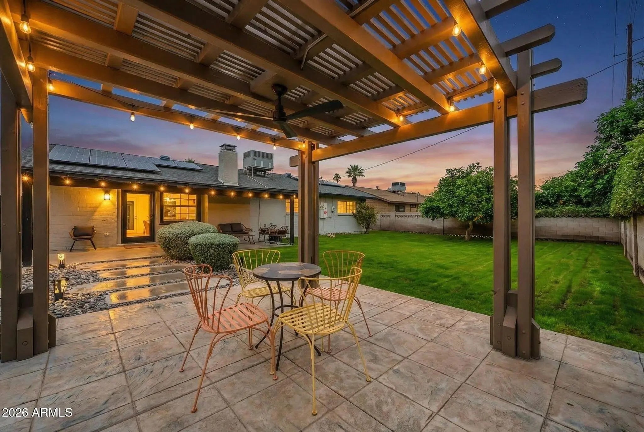 Have you been dreaming of a home that blends character, comfort, and an unbeatable Scottsdale location? Welcome to this beautifully remodeled, move-in-ready home in the desirable Scottsdale Estates neighborhood—complete with fully owned solar and NO HOA. From the moment you arrive, you'll notice the home's inviting curb appeal, highlighted by eclectic brick accents and a brand-new exterior gate. Step inside to a freshly painted interior that feels warm, welcoming, and thoughtfully updated throughout. This 3-bedroom, 2-bath residence offers generous living and entertaining space with a smart, functional layout designed for everyday living and hosting alike. The full galley kitchen shines with new granite countertops, tile flooring throughout the kitchen and laundry room, ample cabinetry, and seamless flow into the dining and living areas. The living space is rich with character, featuring gleaming hardwood floors, a charming brick fireplace, and updated light fixtures that elevate the home's timeless appeal. The spacious primary suite is a true retreat, offering both a wall closet and a large walk-in closet, providing exceptional storage and organization. Two additional bedrooms are well-sized, while both bathrooms have been tastefully transformed with stone and granite finishes, creating relaxing, spa-like spaces. Step outside to your own private backyard oasislush, green, and ideal for Arizona living. Enjoy a covered patio, newly built gazebo, fresh citrus trees, and plenty of space to relax in the shade or entertain under the stars. The location truly sets this home apart. Situated just minutes from the heart of Old Town Scottsdale, you're surrounded by some of the Valley's best shopping, award-winning restaurants, art galleries, nightlife, and vibrant bar scenemaking everyday living feel like a staycation. With quick access to the Loop 101 Freeway, commuting anywhere in the Valley is fast and convenient. Outdoor enthusiasts will love the close proximity to the Indian Bend Greenbelt, offering miles of scenic walking and biking paths, parks, and lakes that wind throughout Scottsdale. You're also moments from everything South Scottsdale has to offer, including Talking Stick Resort & Casino, Topgolf Scottsdale, Salt River Fields, and the endless entertainment options surrounding the Salt River and resort corridor. This is Scottsdale living at its bestwhere modern comfort, eco-conscious features, and an unbeatable location come together just minutes from it all. FYI, Solar lease will be paid off at closing.