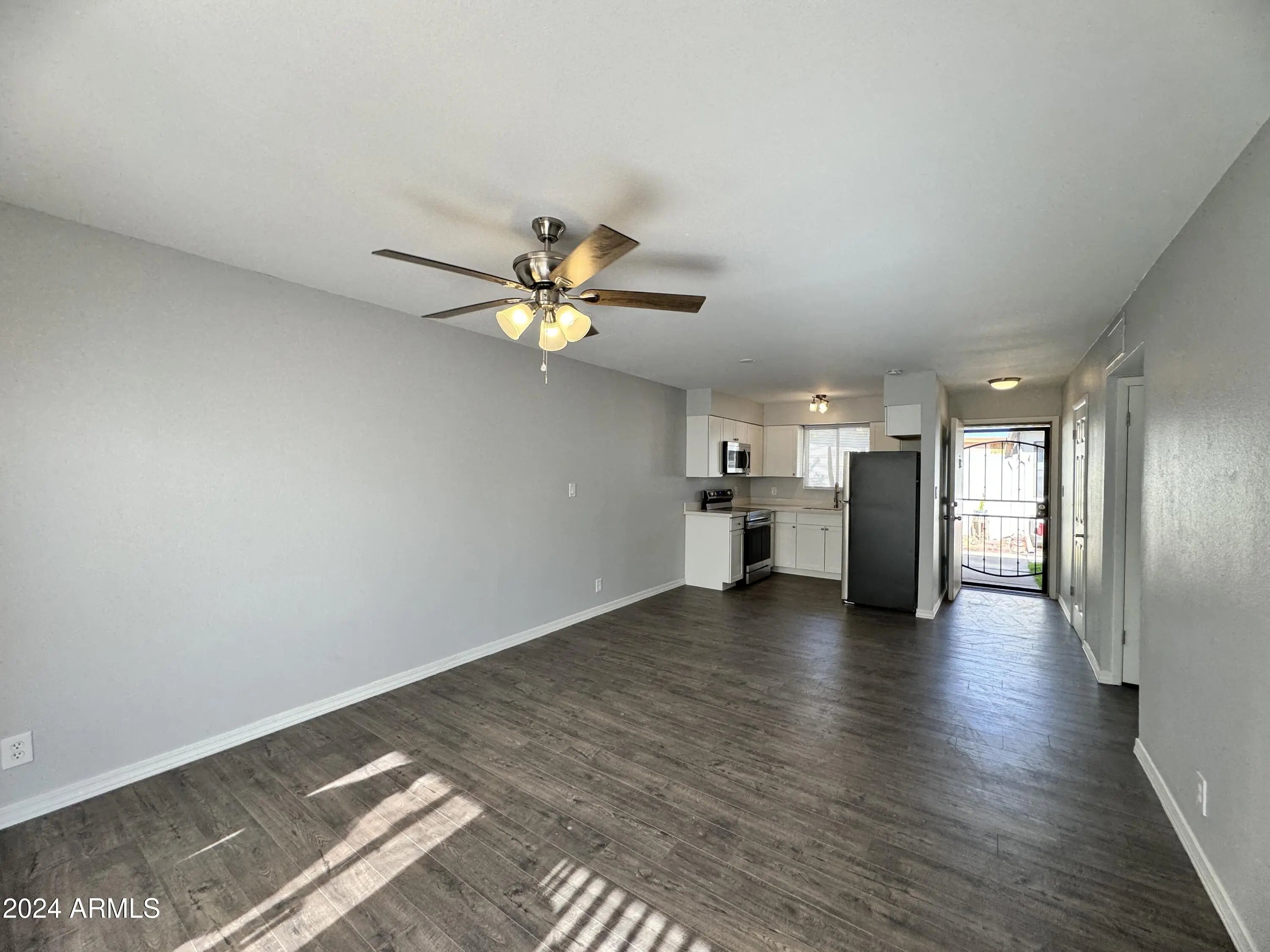 Single level 2 bedroom 1 bathroom condo offering 728 square feet of updated living space. Interior features tile flooring throughout with no carpet, fresh finishes, and a functional open layout. The kitchen includes stainless steel appliances and a refrigerator. Bedrooms offer comfortable separation and natural light. Private patio provides outdoor space for daily use. Community amenities include a pool and on site laundry center. Water sewer and trash are included. Convenient Scottsdale location near downtown shopping dining parks and major road access.