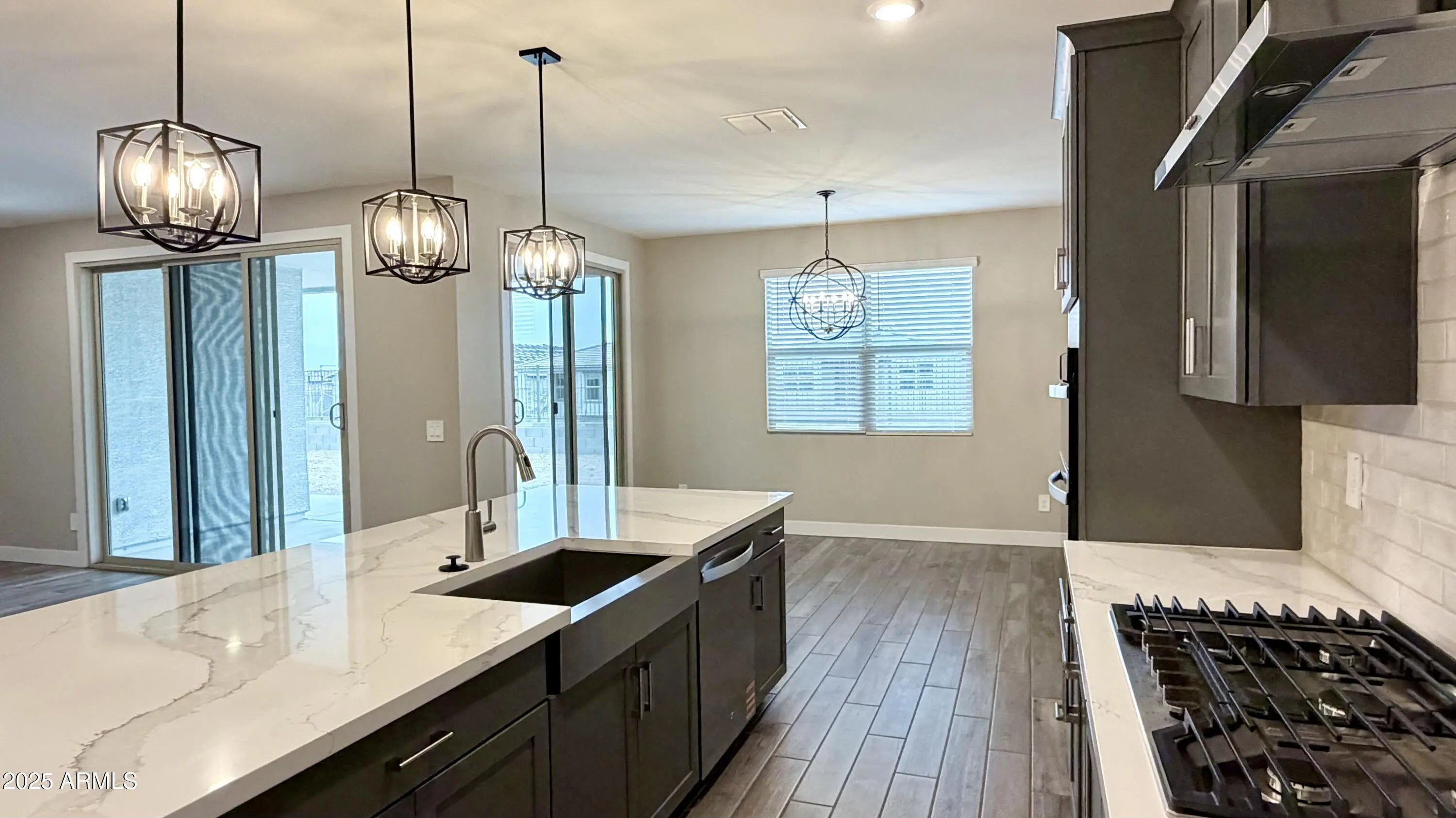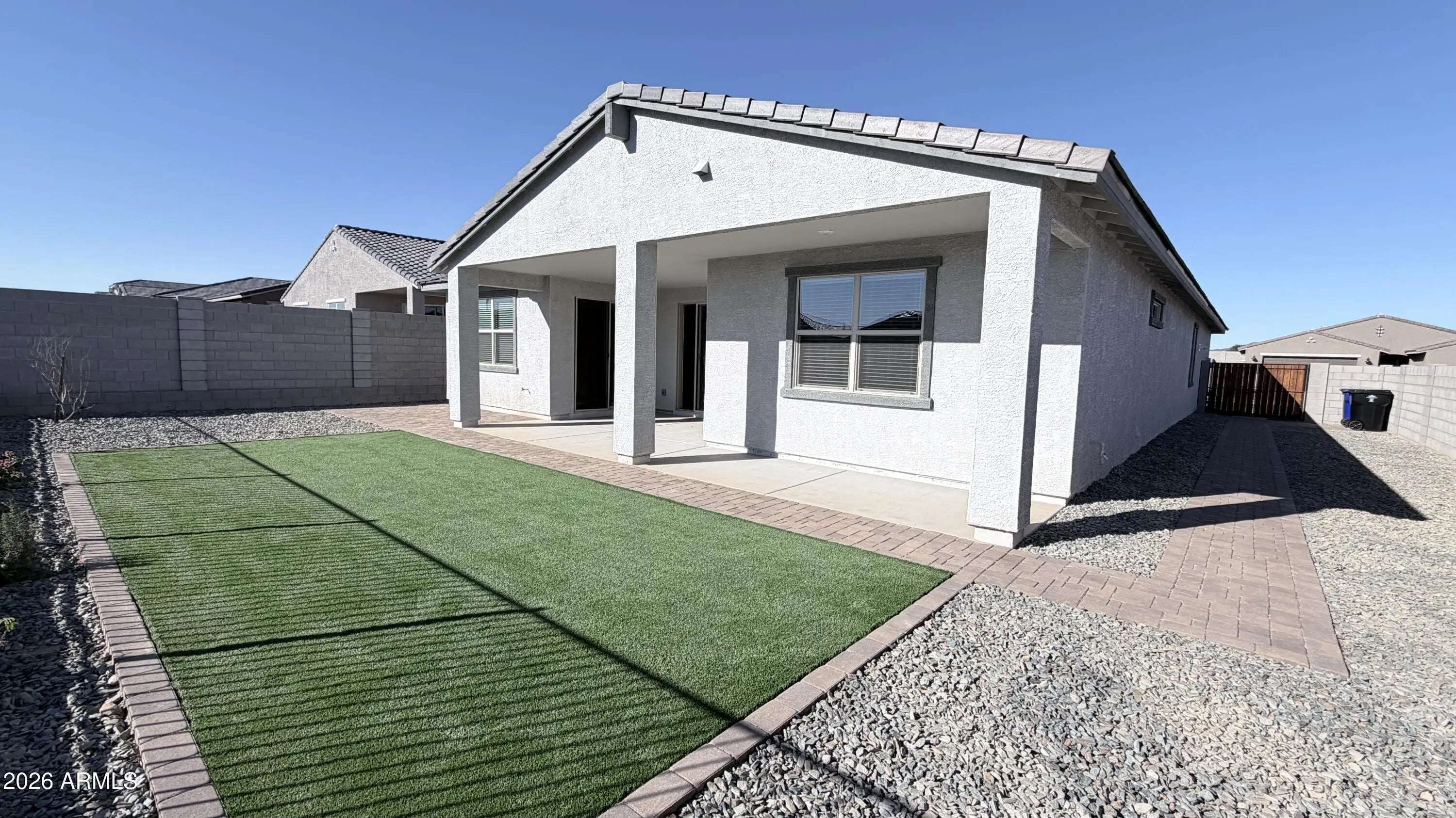 Beautiful Brand-new home featuring 5 bedrooms, each with a walk-in closet and ceiling fan & 3 full bathrooms. No back neighbor for added privacy. Spacious 3-car garage. Gourmet kitchen with premium cabinetry, quartz countertops, and tile backsplash. Interior upgrades include spa-style shower, wood-look tile flooring in main living areas, and upgraded carpet in all bedrooms. Appliances included: washer, dryer, refrigerator, and tankless water heater. Energy-efficient construction designed to reduce utility costs. Community offers exclusive swimming pool, club house and resort-style amenities. Convenient location near shopping, dining, and entertainment. (Backyard landscaping with artificial grass to be installed within 10 days. ceiling fans, and utility sink will be installed within one week.) Easy access to Loop 303 and conveniently located near TSMC, the area's largest semiconductor employer.