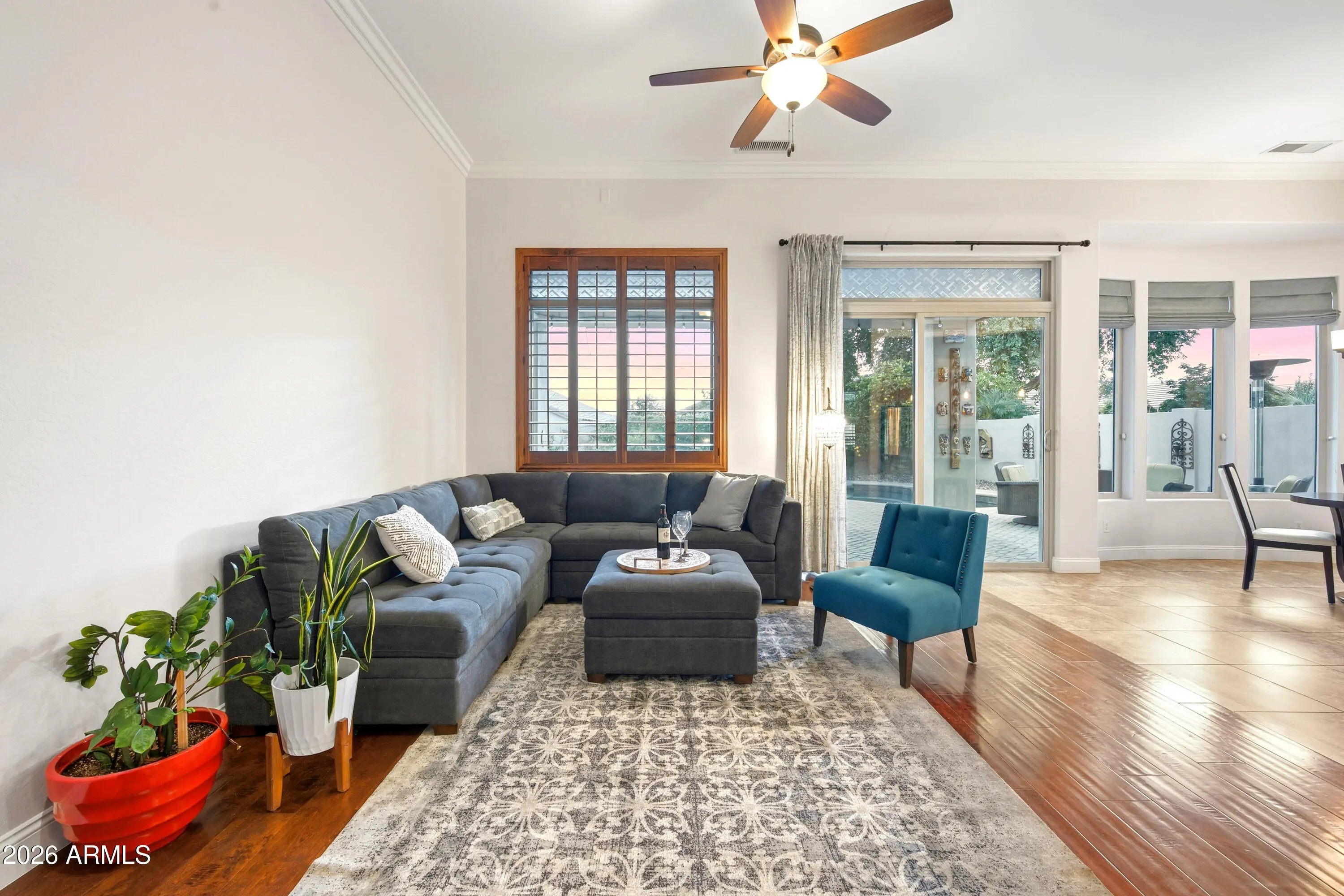 Recently repositioned to reflect current market opportunity, this STUNNING, meticulously maintained and extensively improved Elliott home features a huge FIRST FLOOR OWNER'S SUITE with private entry to the oasis-style backyard. Extensively upgraded with over $100,000 in major system improvements, offering true move-in confidence: Pre-paid Sunrun Solar, Two 16-SEER Trane A/C Units, High-Efficiency ''Energy Shield'' Argon Windows, Exterior Paint, Roof Underlayment, Energy-Efficient Garage Doors, Garage Mini-Split A/C, Thermador Gas Cook Top, Spa Pump & Heater, Pool Pump & Filter Unit and more... Prime Desert Ridge location close to Desert Ridge Marketplace, City North, Loop 101 & 51, Mayo Clinic, Wild Fire Golf Course, parks, hiking, dining, shopping, and top-rated schools Additional features: 3-4 bedrooms, 2x6 construction, custom shutters, baseboards & crown molding, fiber-optic internet, RV gate, and pet door. Engineered hardwood floors and porcelain throughout. The kitchen is a true highlight, offering 42" maple cabinetry, granite countertops, custom coffee/wine cabinet, KitchenAid stainless appliances and Thermador 36" natural gas cooktop. Elegant formal living and dining room complement a spacious Multi-purpose room with gas fireplace, with play pool, separate in-ground spa, citrus trees, lush landscaping, storage sheds, and covered patio.