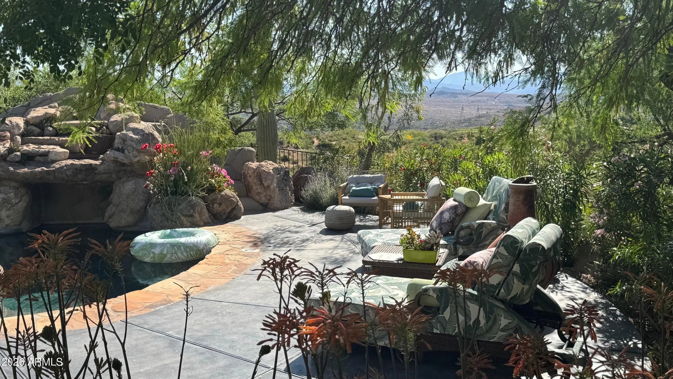 Custom pretty pueblo ideally seated on 3.5 acres for total privacy with multiple private patios and spectacular vistas/views of Four Peaks, Weaver's Needle with Tonto National Forest surrounding. Three en-suite bedrooms, dedicated office with new wood flooring, new HVAC's, new appliances and new custom interior and exterior lighting. Botanical secret gardens curated for the enjoyment of all in residence enchant year round. The pool patios are totally private with covered dining multi lounge areas that capture the Sonoran skies at their most beautiful. Remodeled primary suite and guest suite with hand painted tile in both. This offering includes 2 parcels.